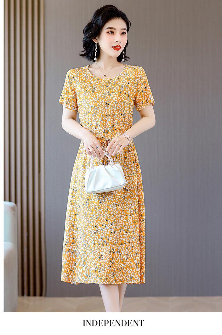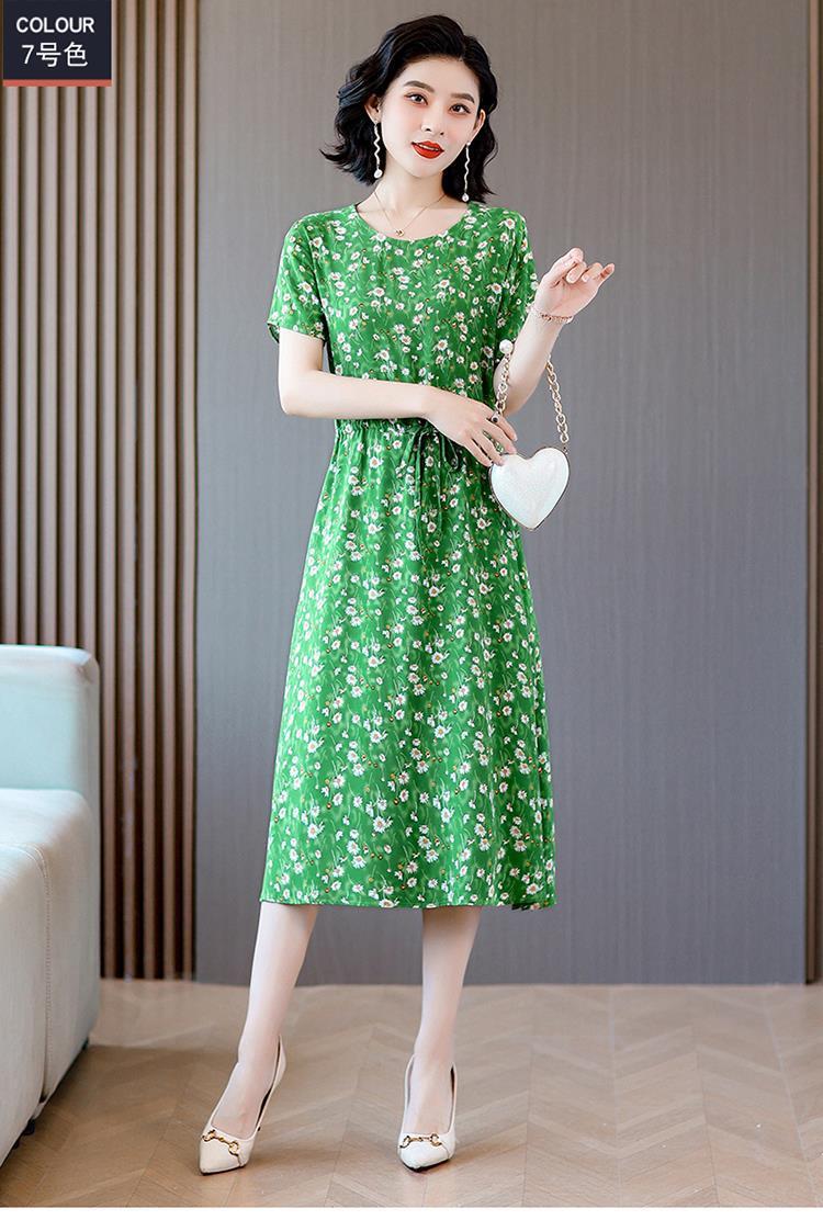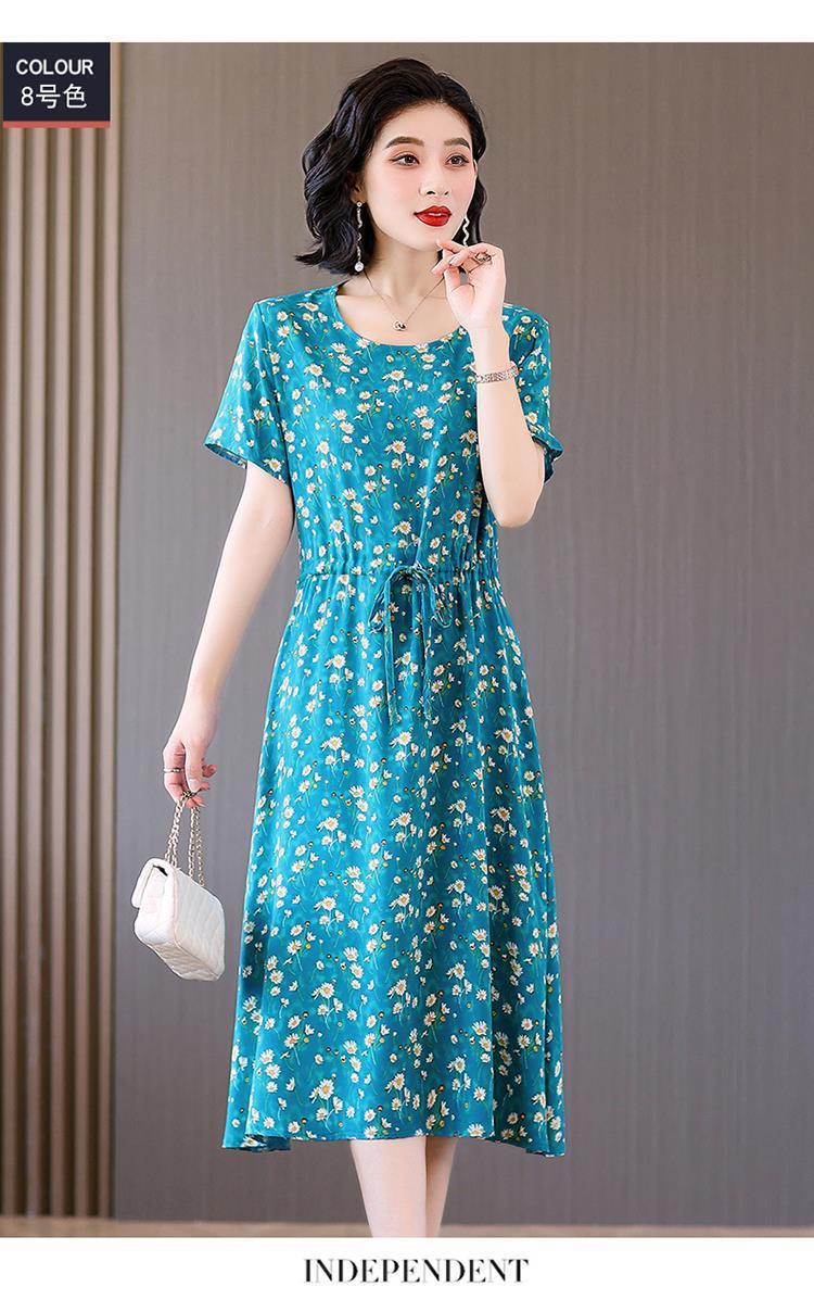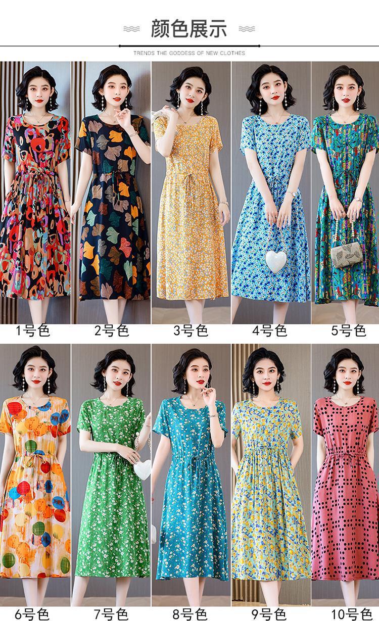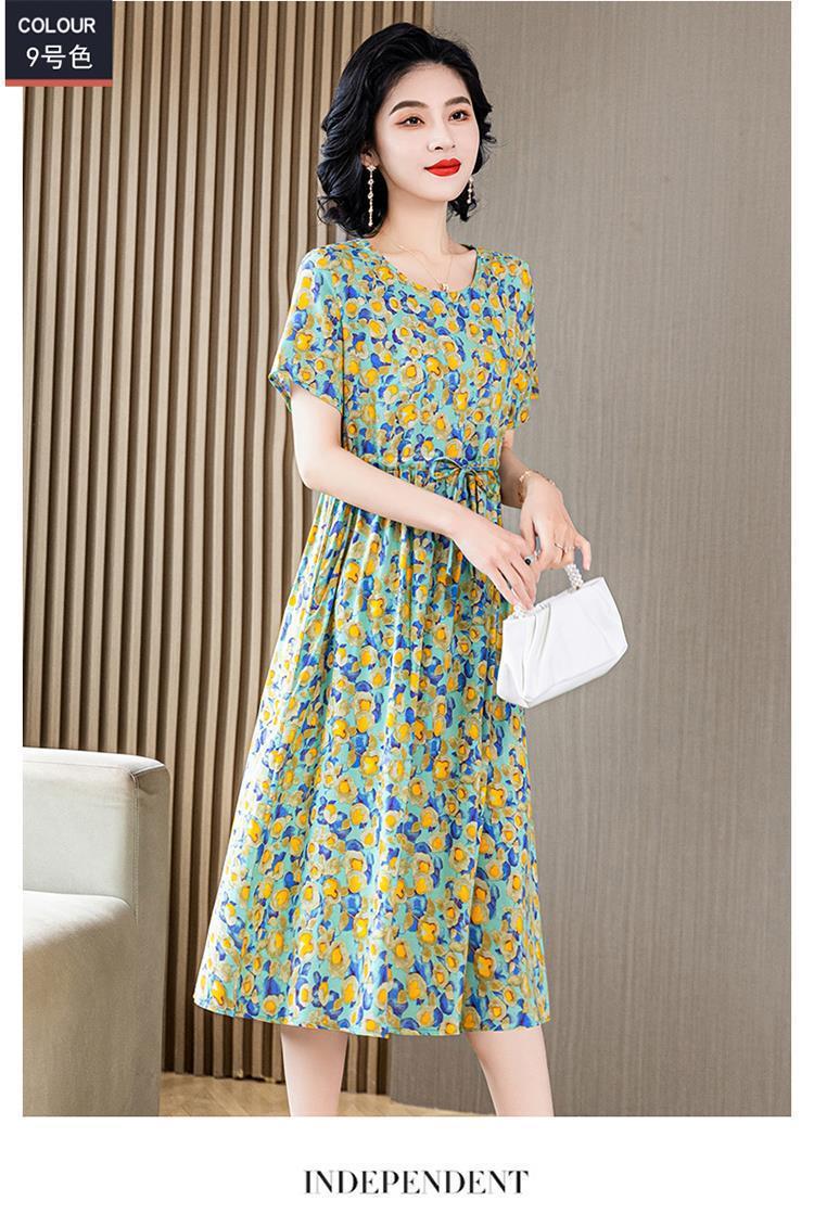 HS-01新款气质洋气年轻款棉绸连衣裙女夏季碎花妈妈显瘦人造棉裙子外穿