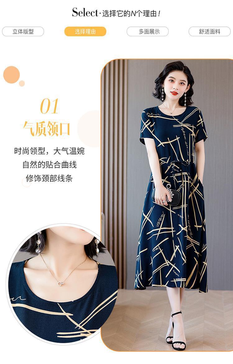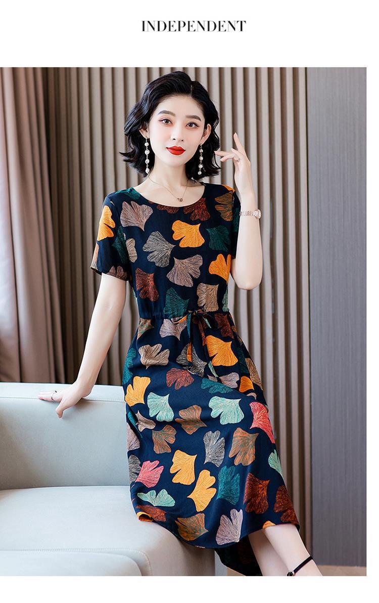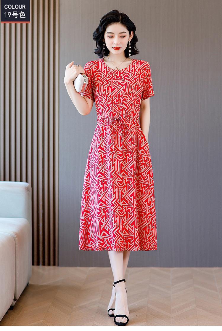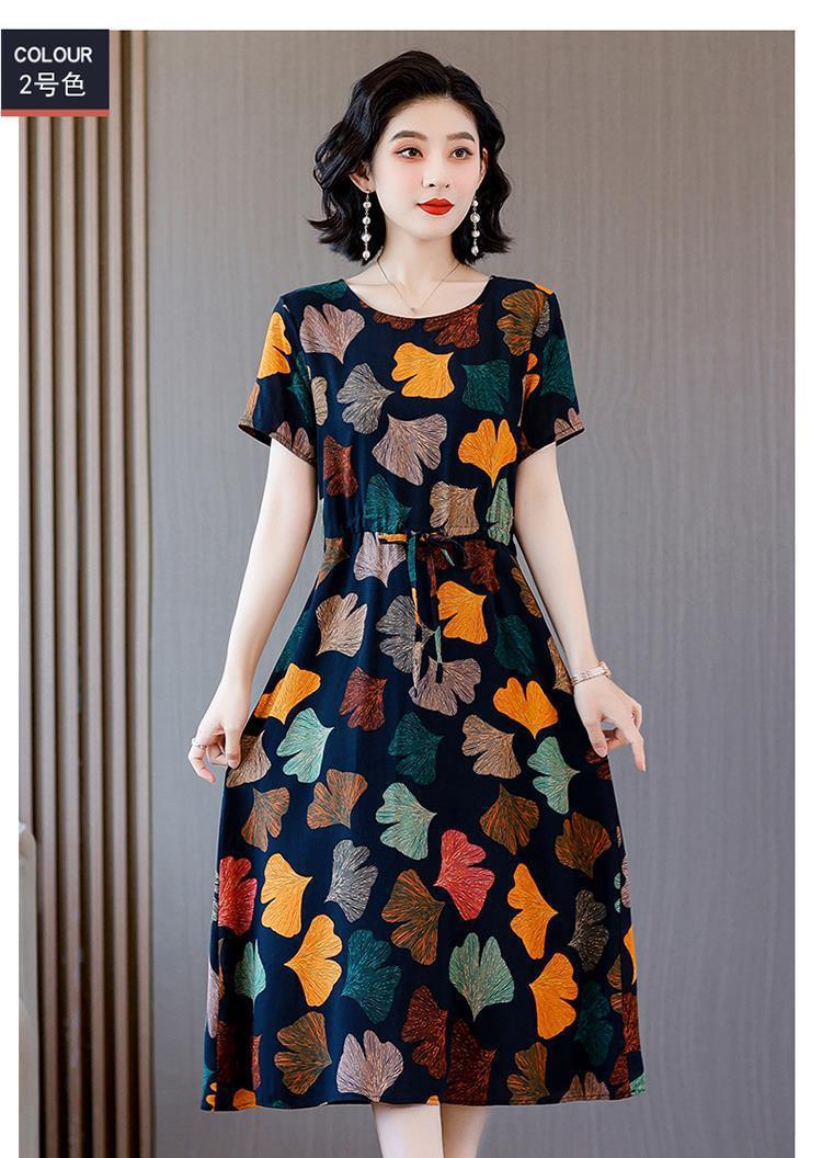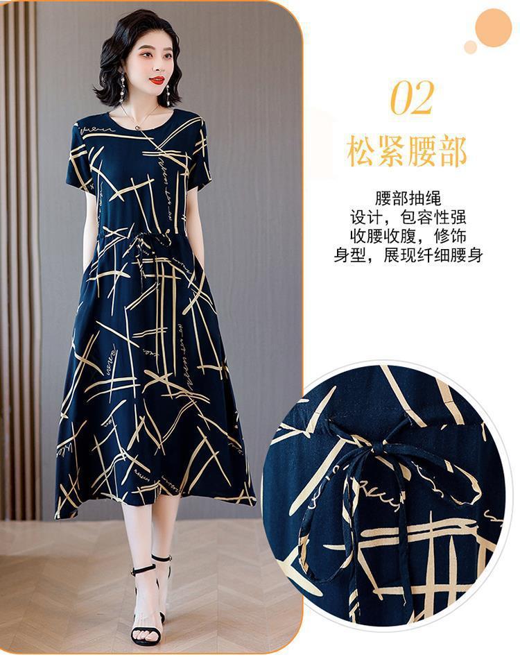HS-01新款气质洋气年轻款棉绸连衣裙女夏季碎花妈妈显瘦人造棉裙子外穿