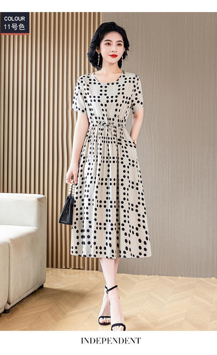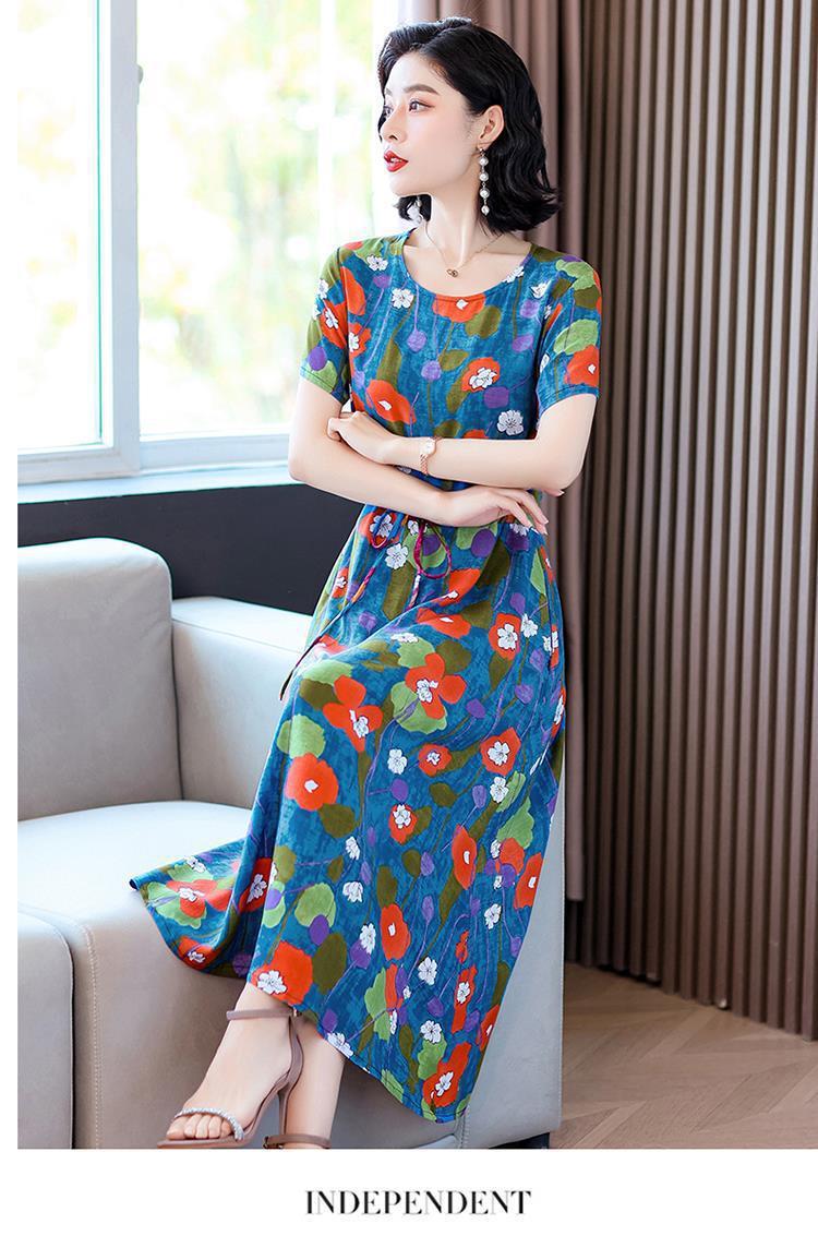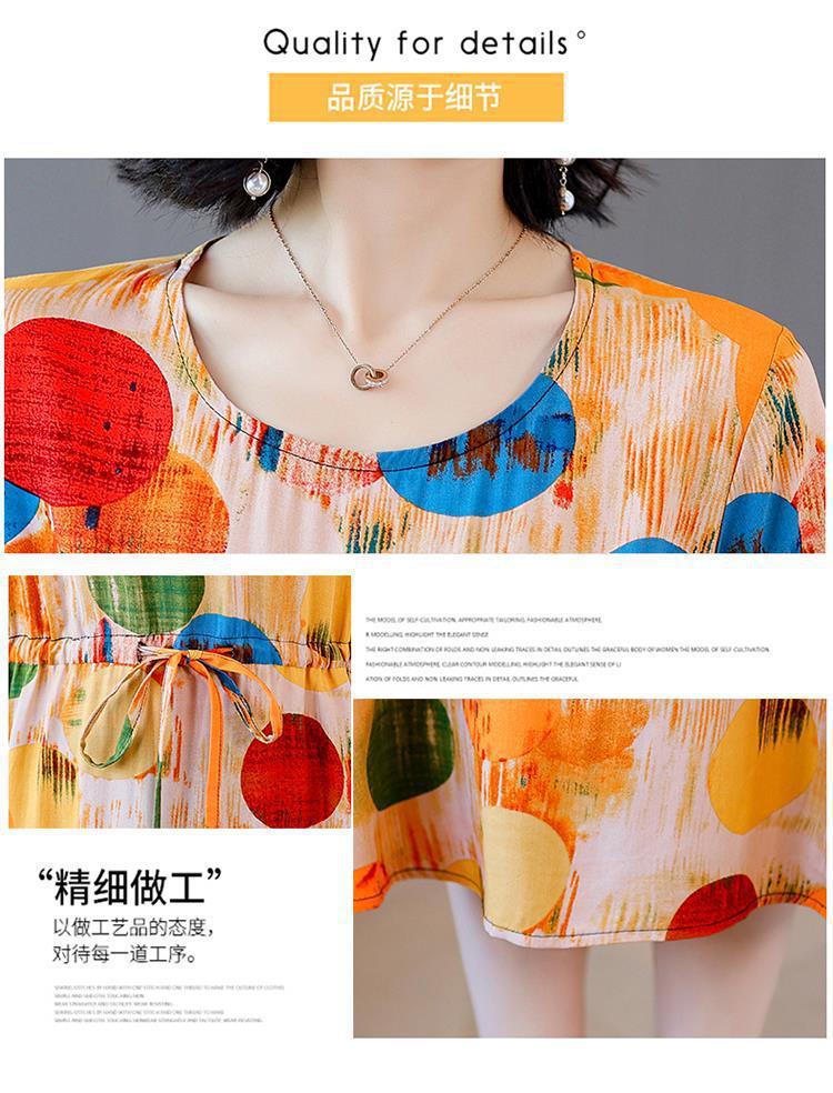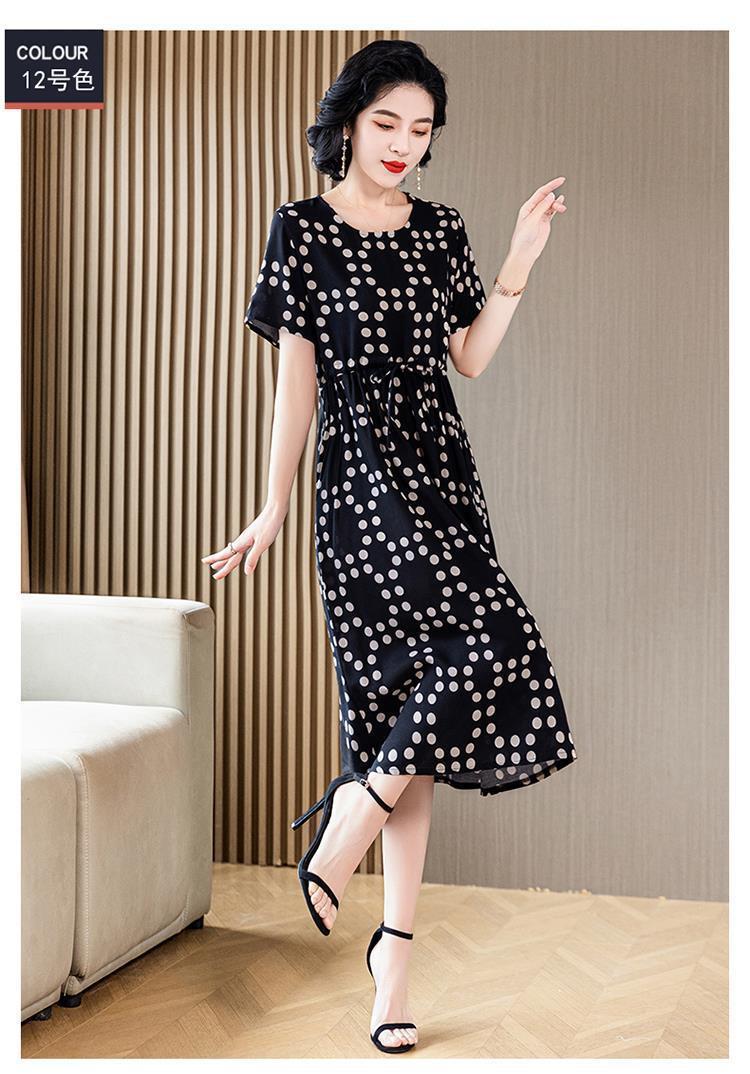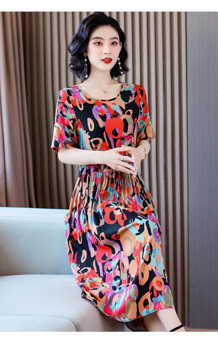 HS-01新款气质洋气年轻款棉绸连衣裙女夏季碎花妈妈显瘦人造棉裙子外穿
