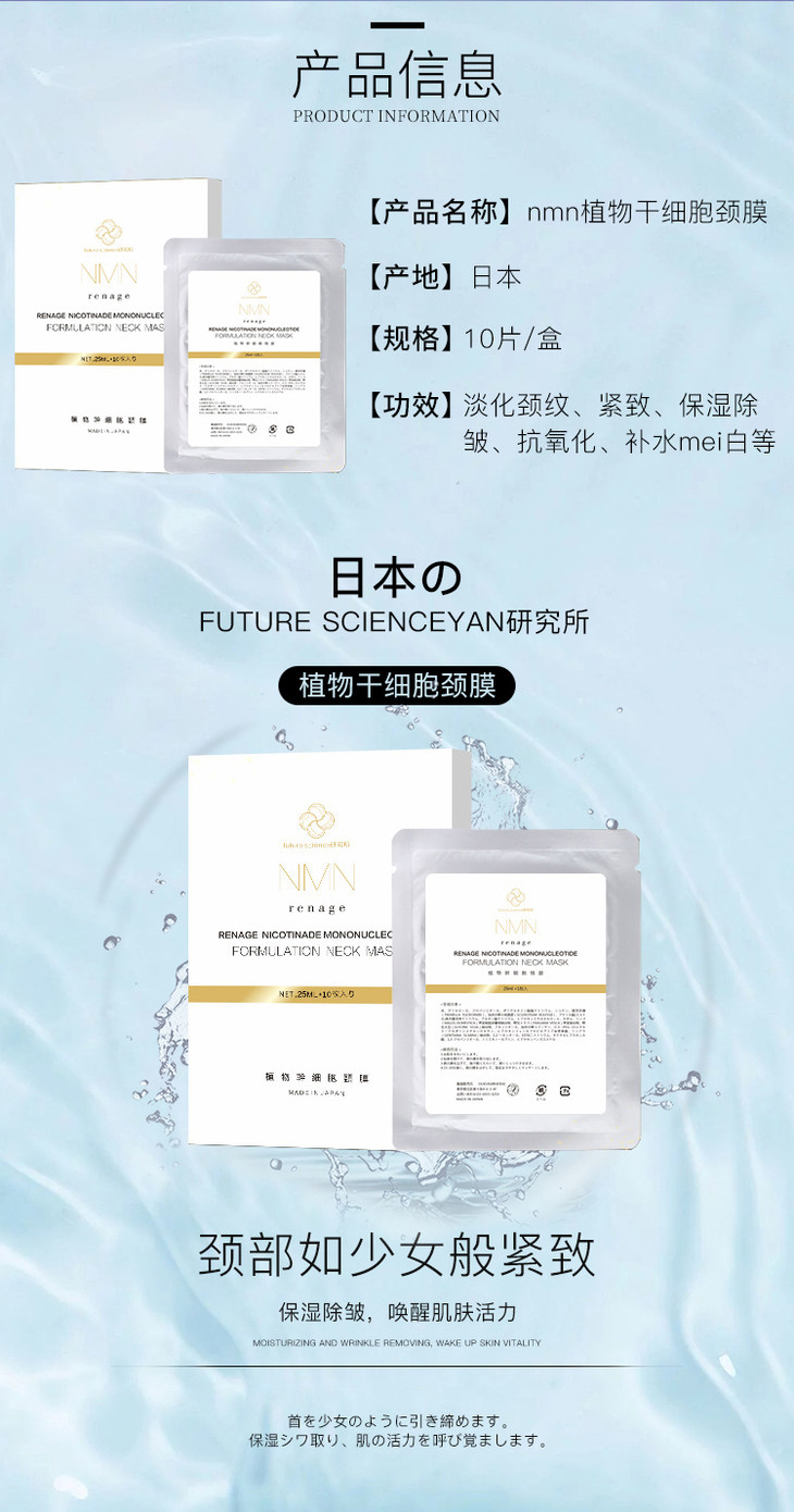日本nmn植物干细胞颈膜5片 补水保湿嫩白淡化颈部细纹提拉紧致