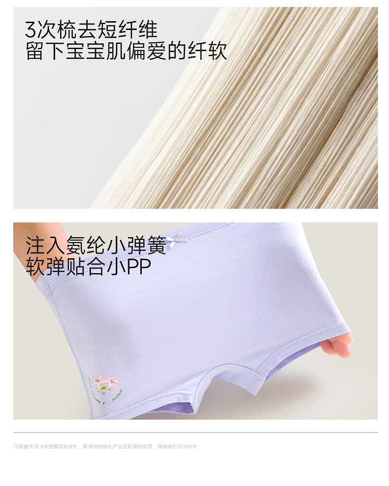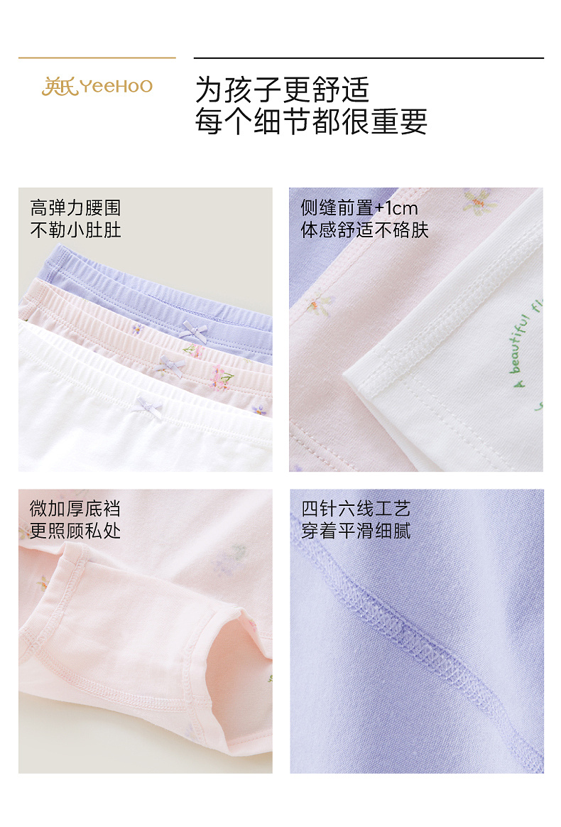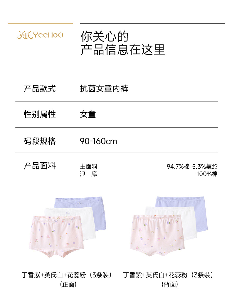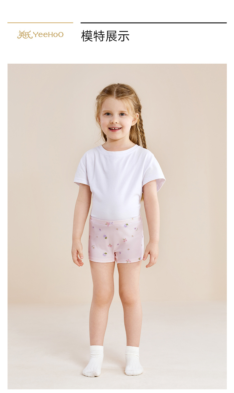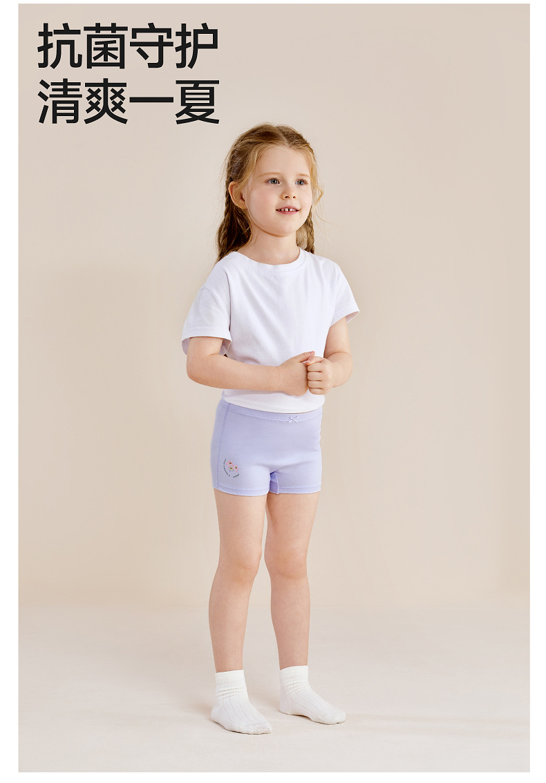 英氏儿童内裤女童四季款平角内裤10A抗菌四角裤3件装柔软舒适