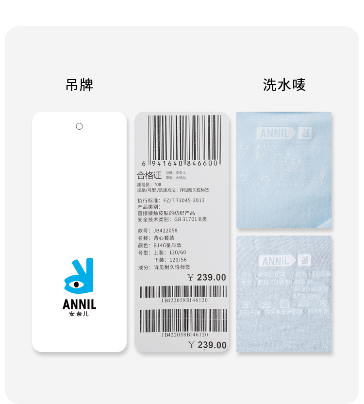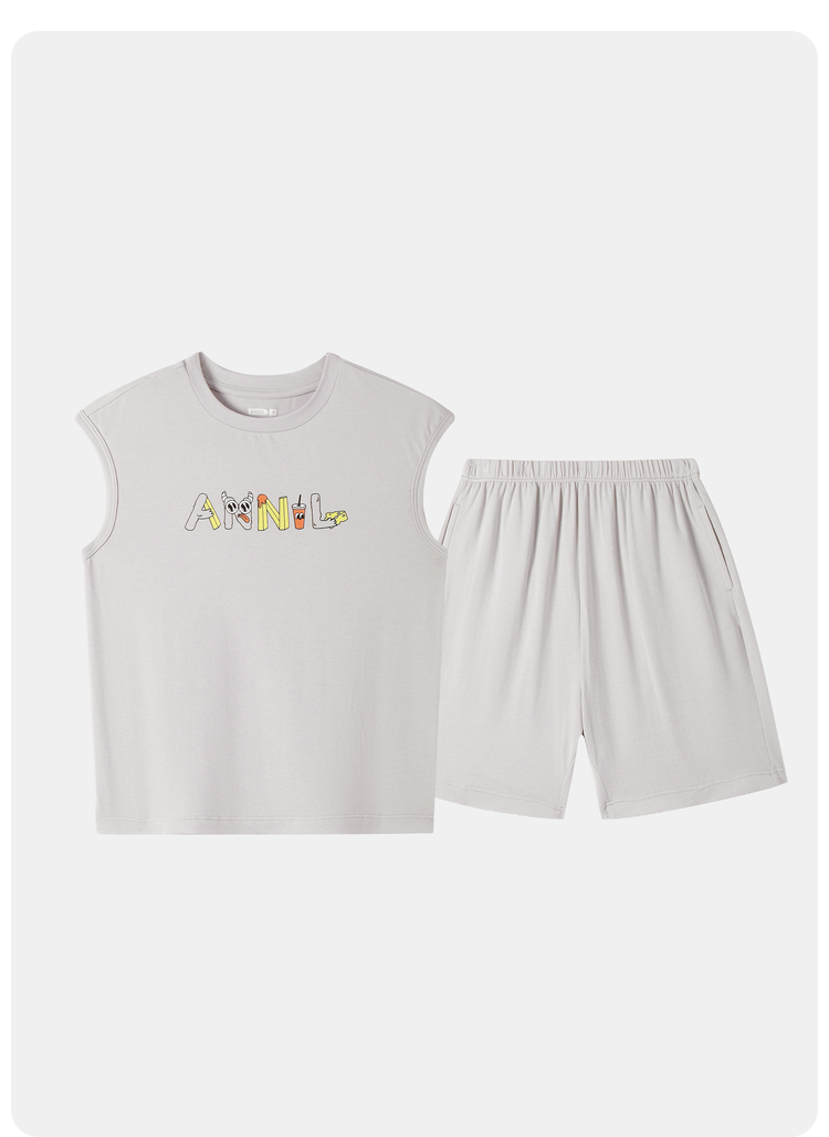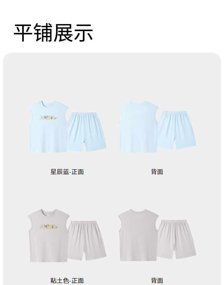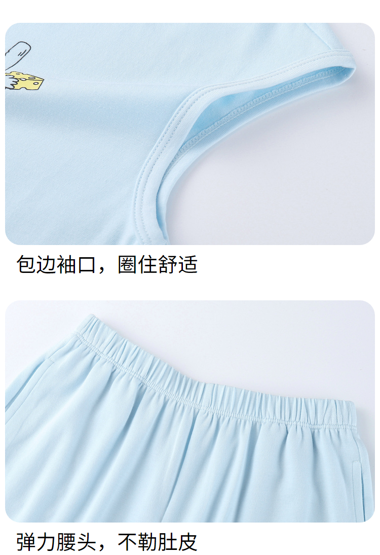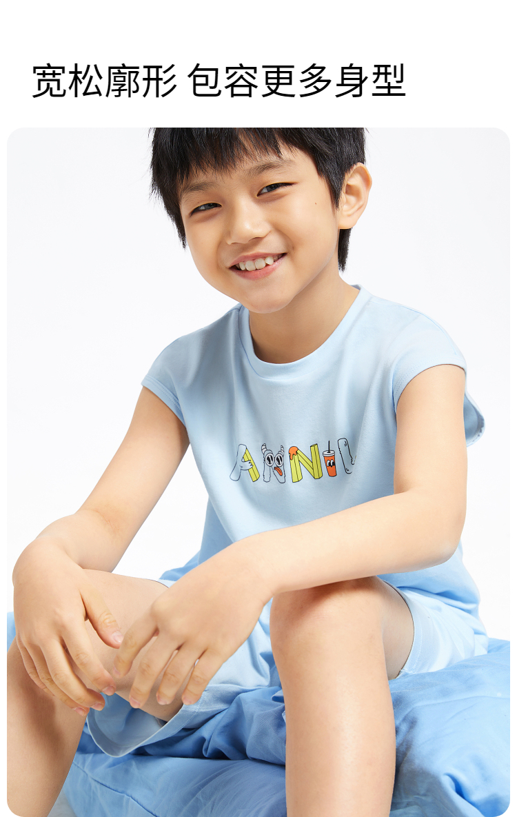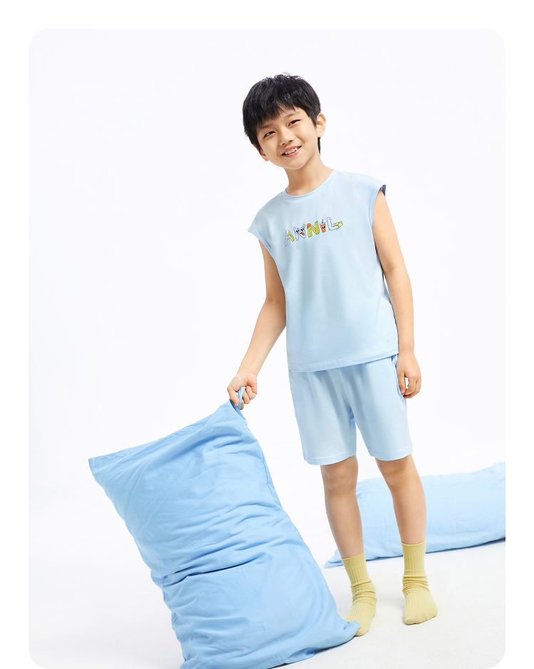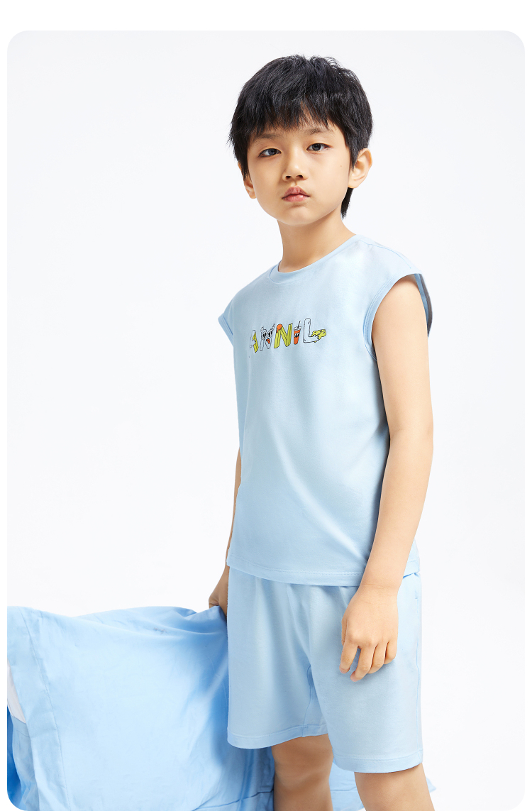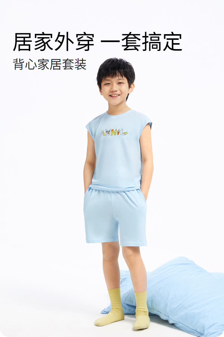 男童背心短裤家居服套装新款夏吸湿透气宽松弹力安奈儿童装JB422058