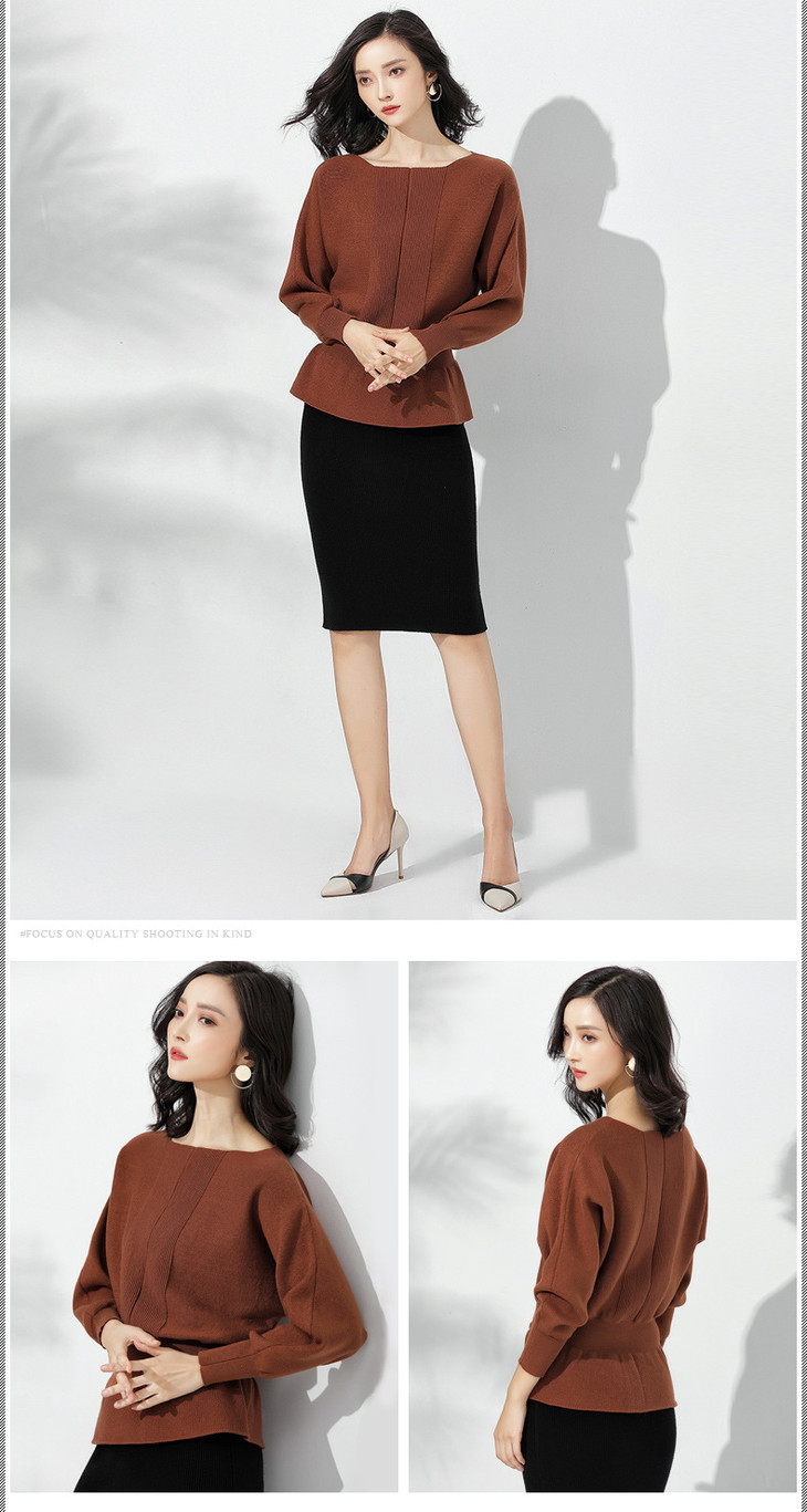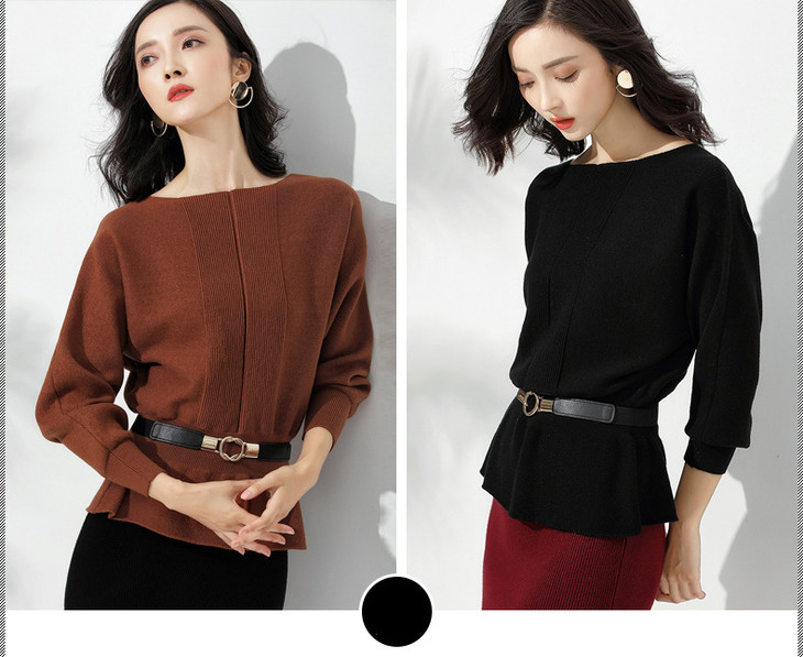 宽松显瘦,一字领针织蝙蝠袖打底毛衣SR-A18T3041