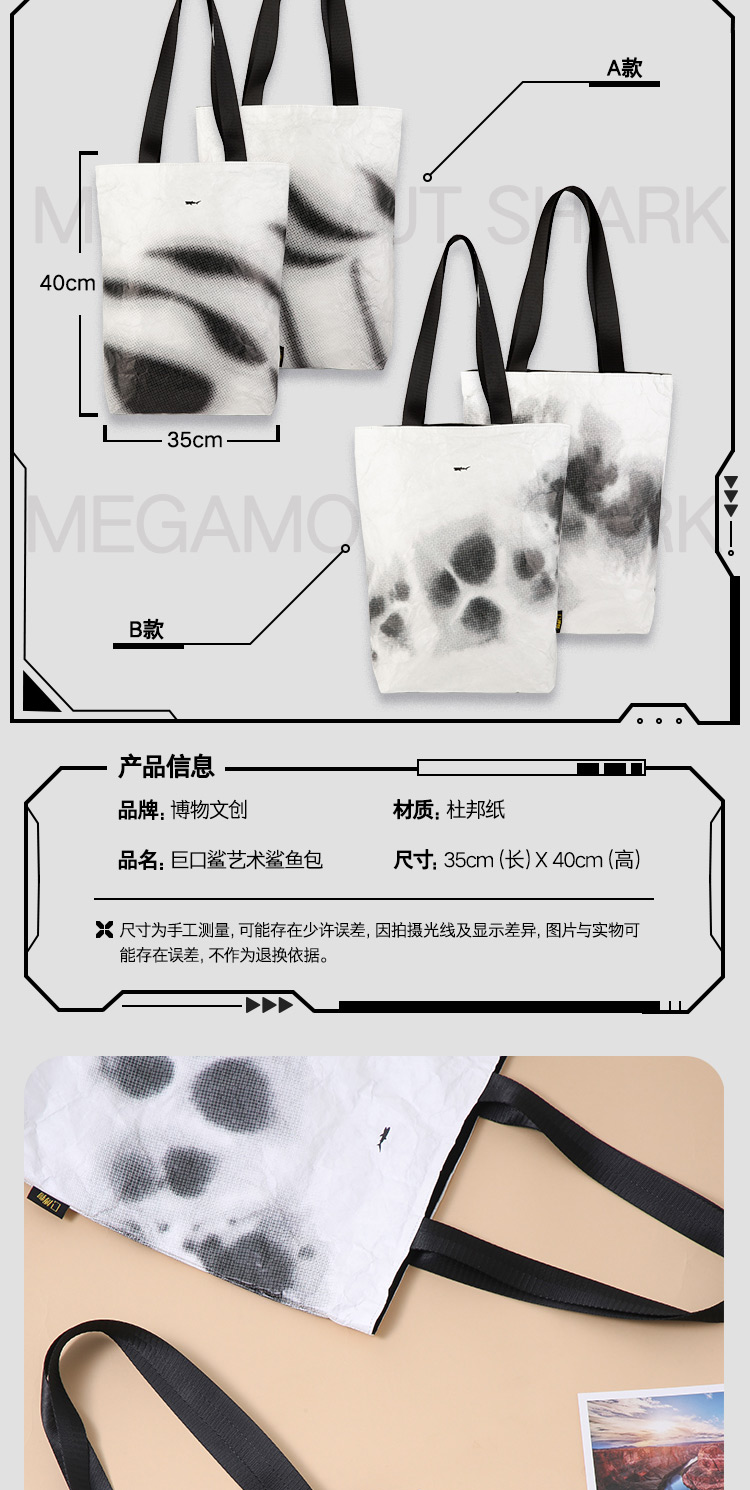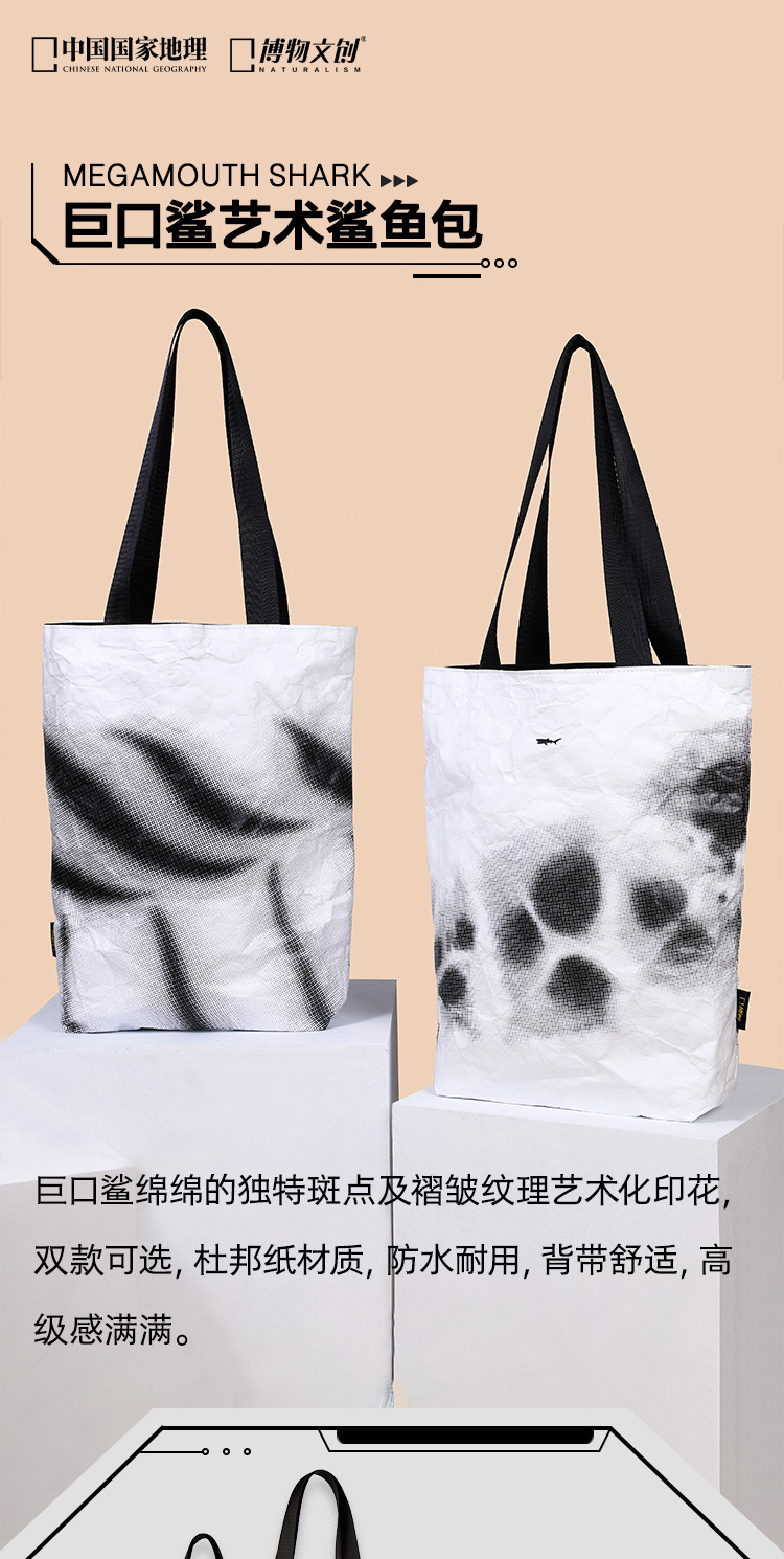 博物文创巨口鲨杜邦纸包托特包简约复古文艺图书馆学生平板购物