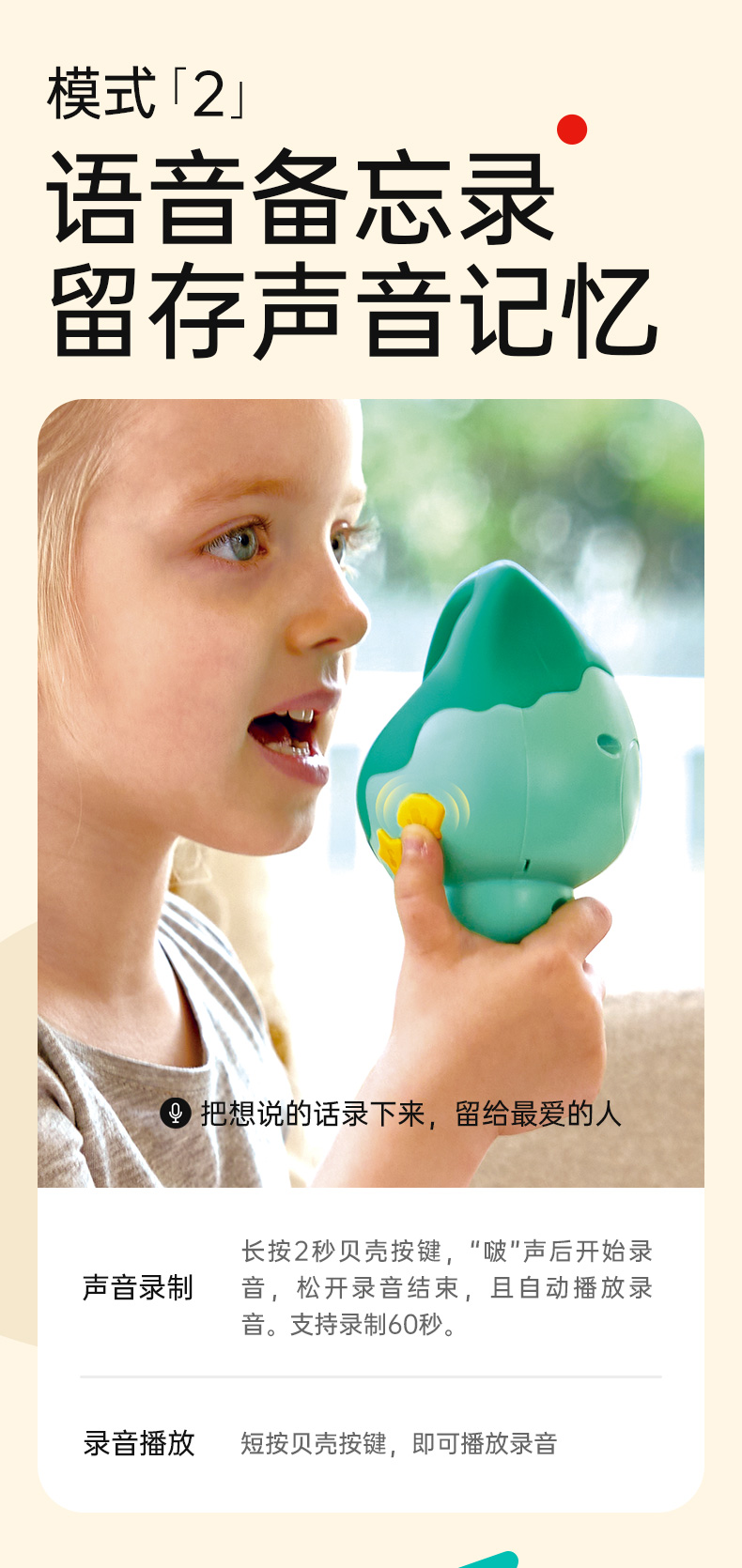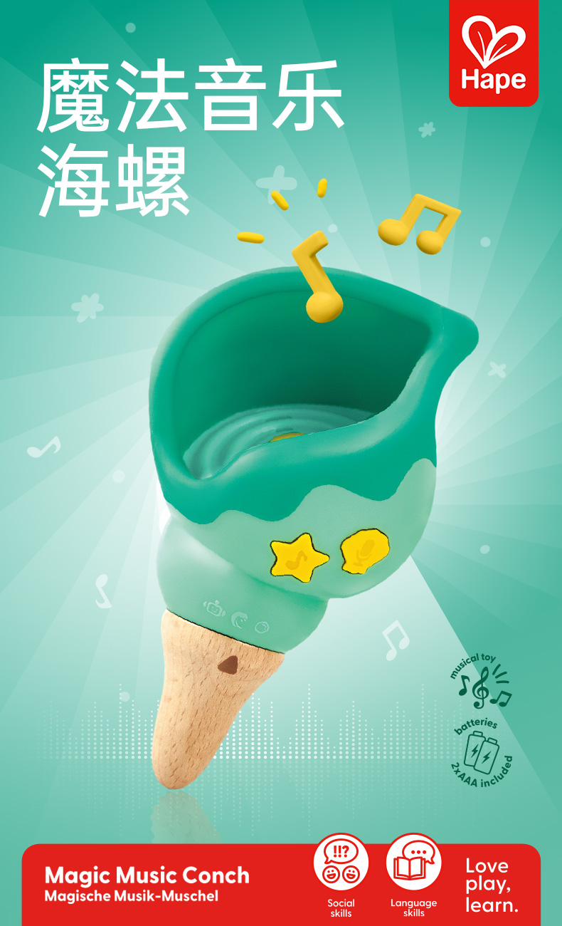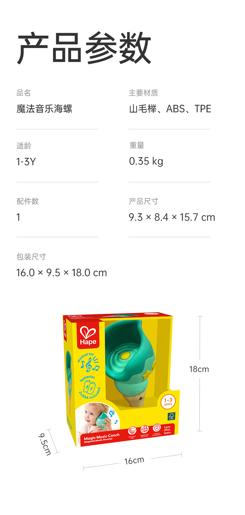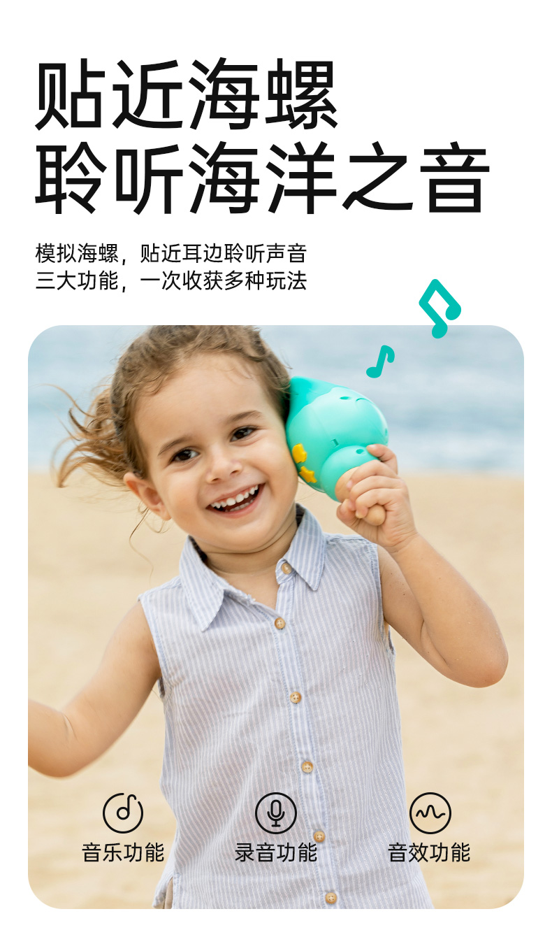 Hape儿童音乐玩具 海螺播放器录音听海宝宝安抚 男孩女孩礼物 海螺留音机 E0637