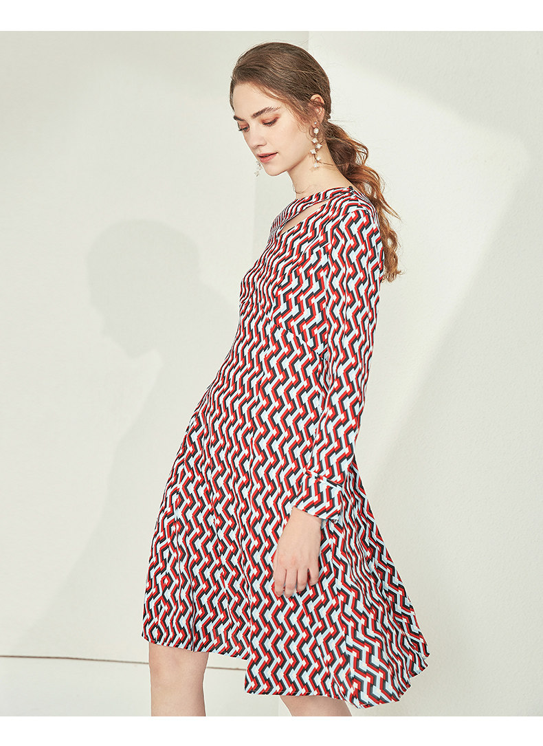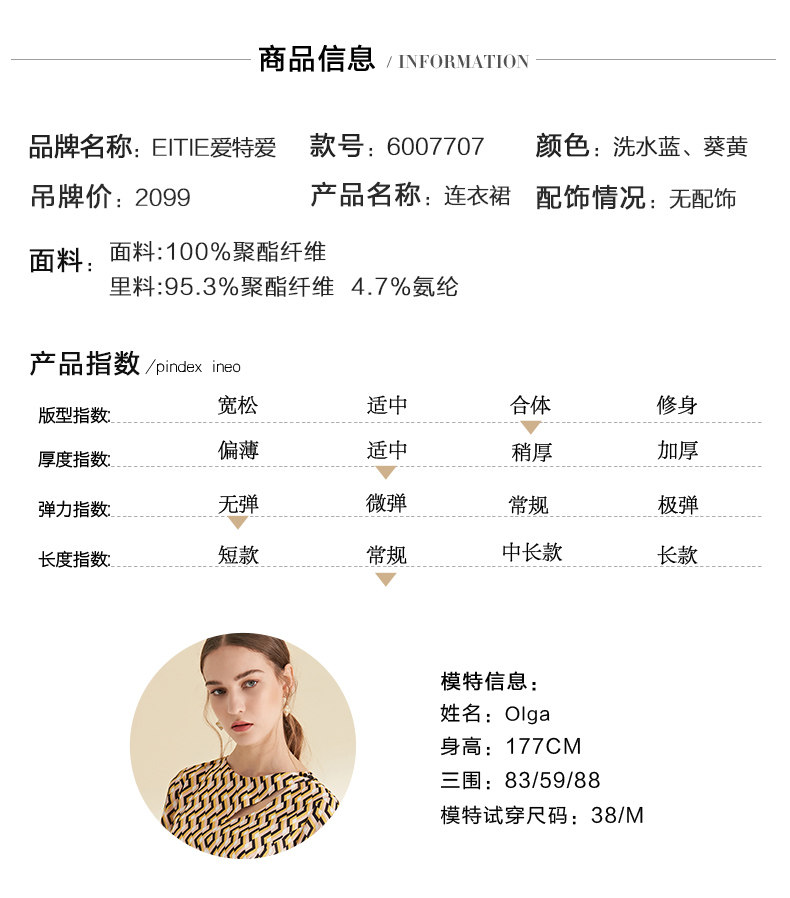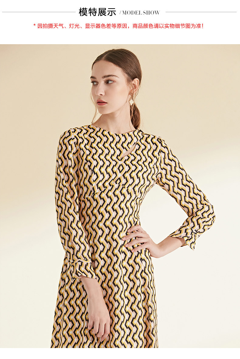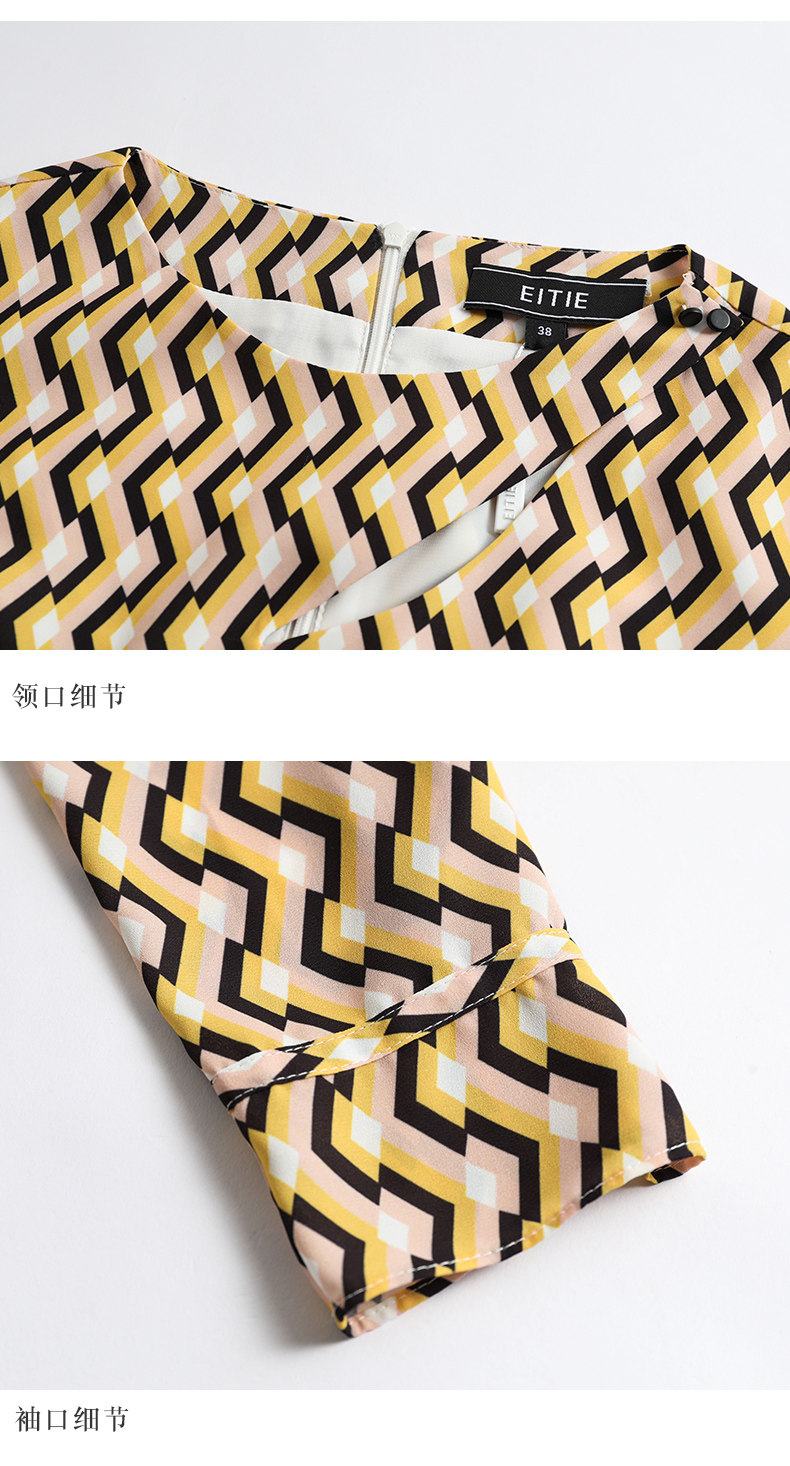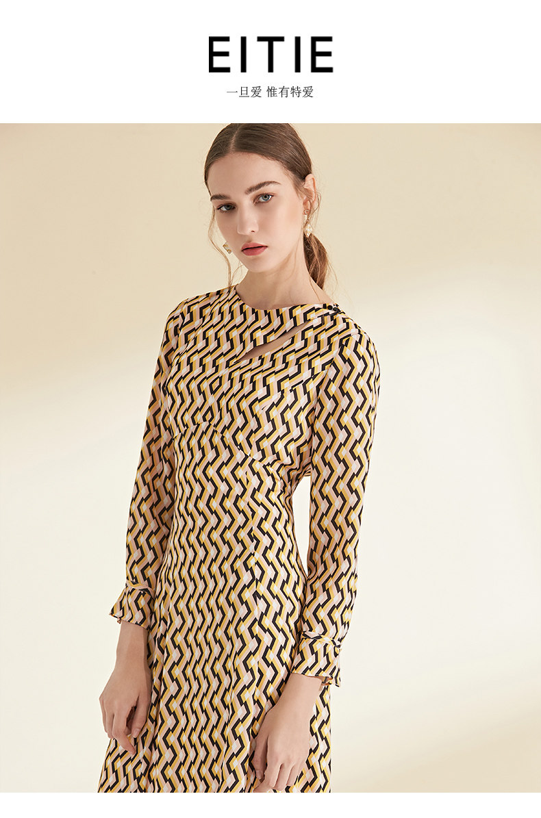 EITIE爱特爱女装初拼色长袖收腰显瘦优雅印花连衣裙6007707
