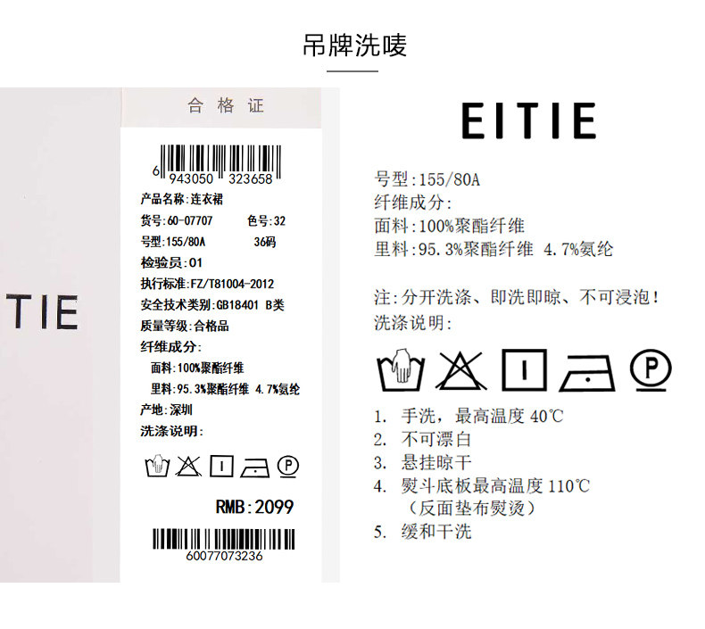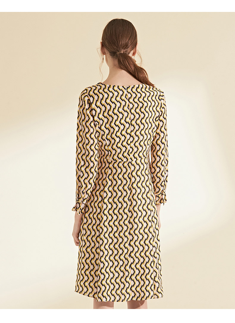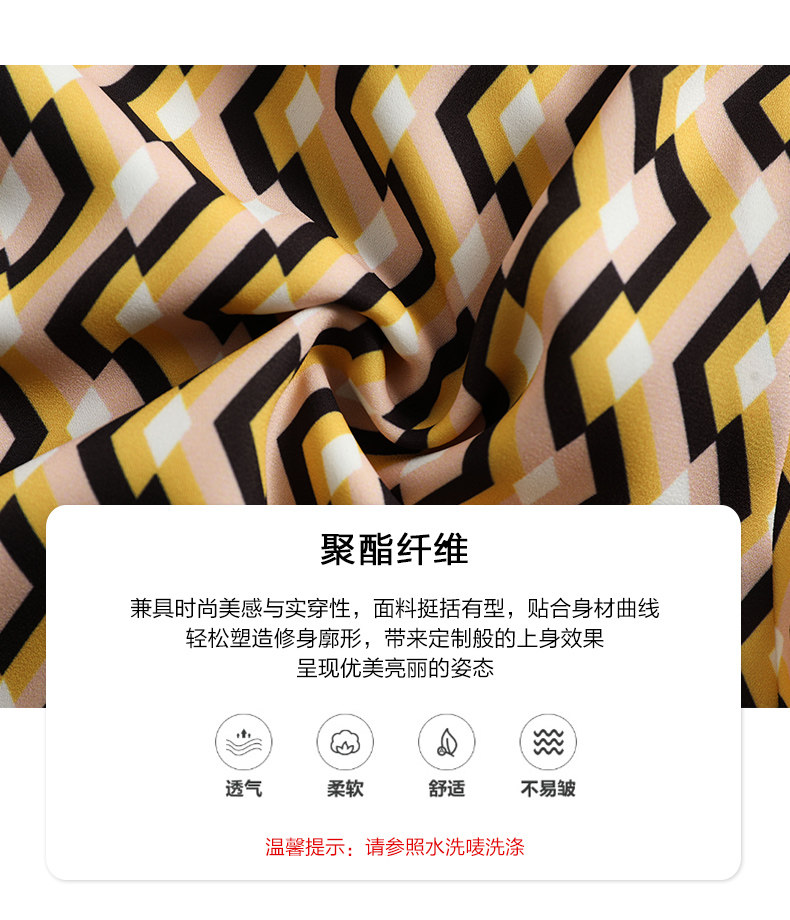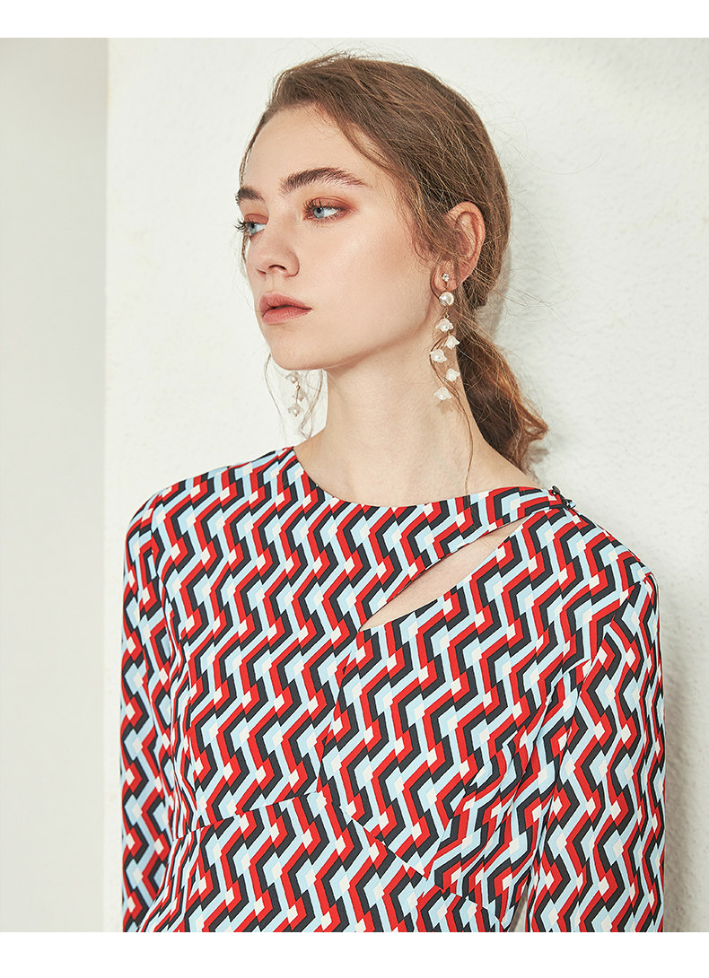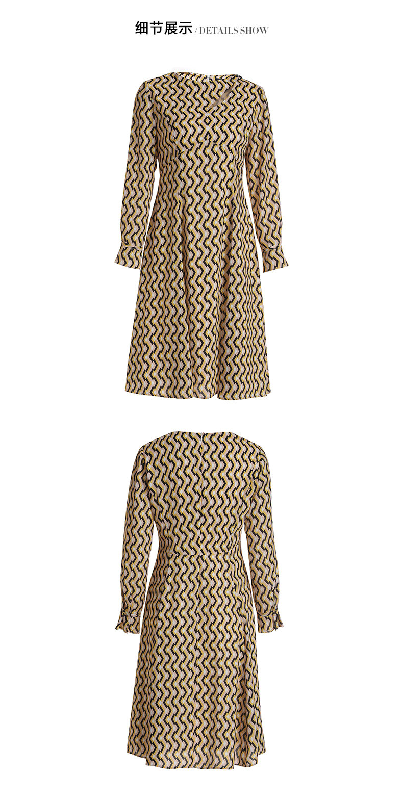 EITIE爱特爱女装初拼色长袖收腰显瘦优雅印花连衣裙6007707