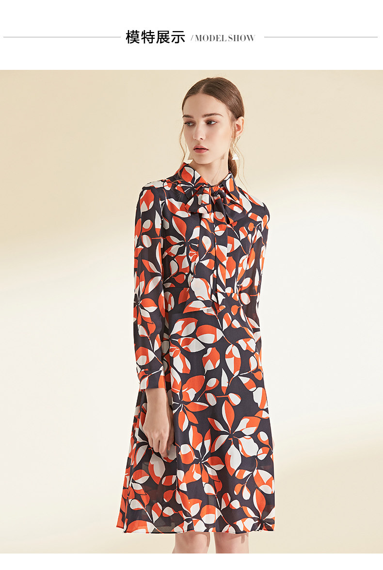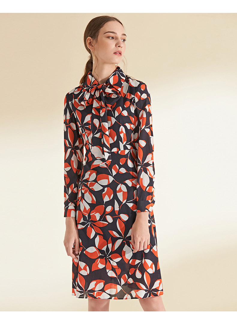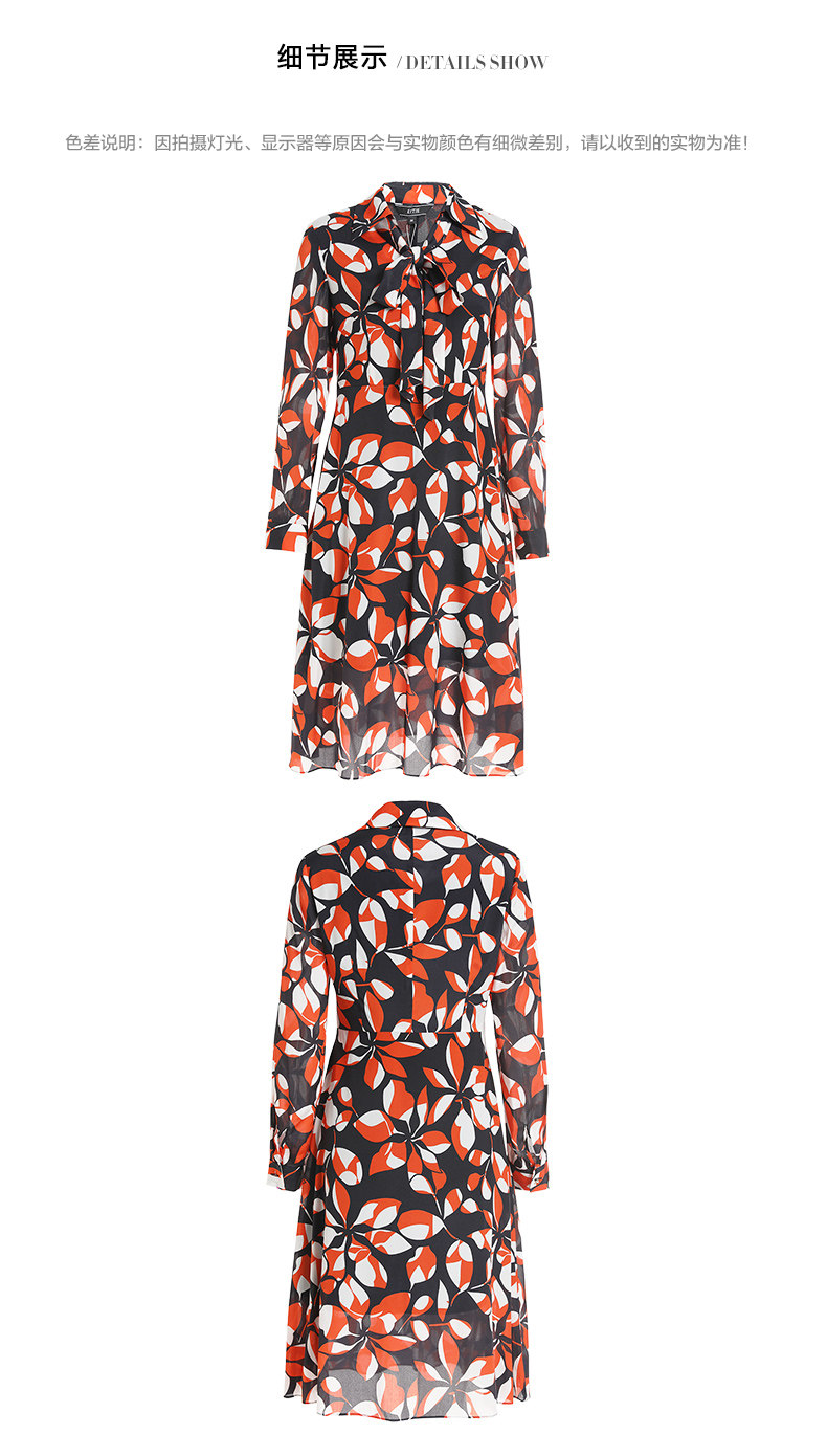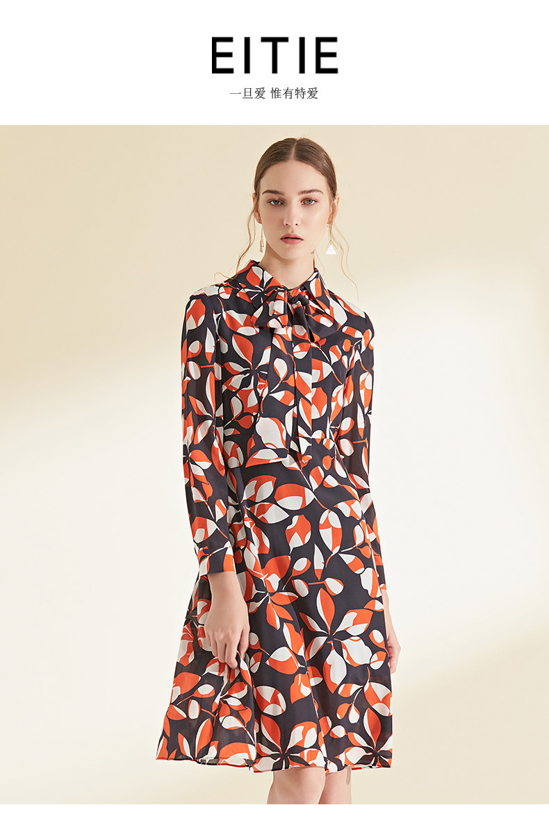 EITIE爱特爱女装初秋季新款长袖系带收腰显瘦时尚印花连衣裙6007705
