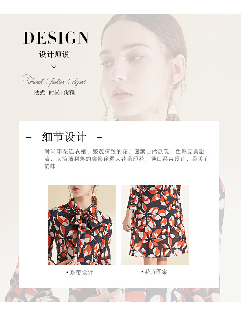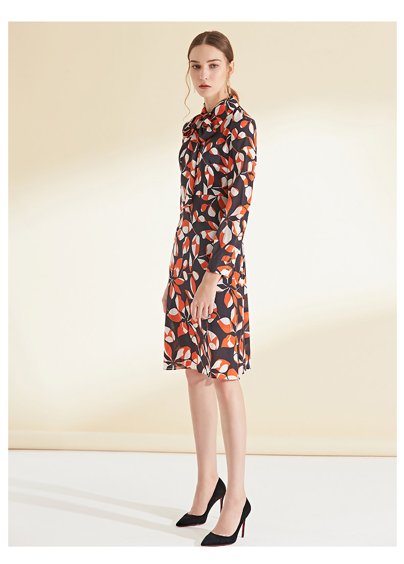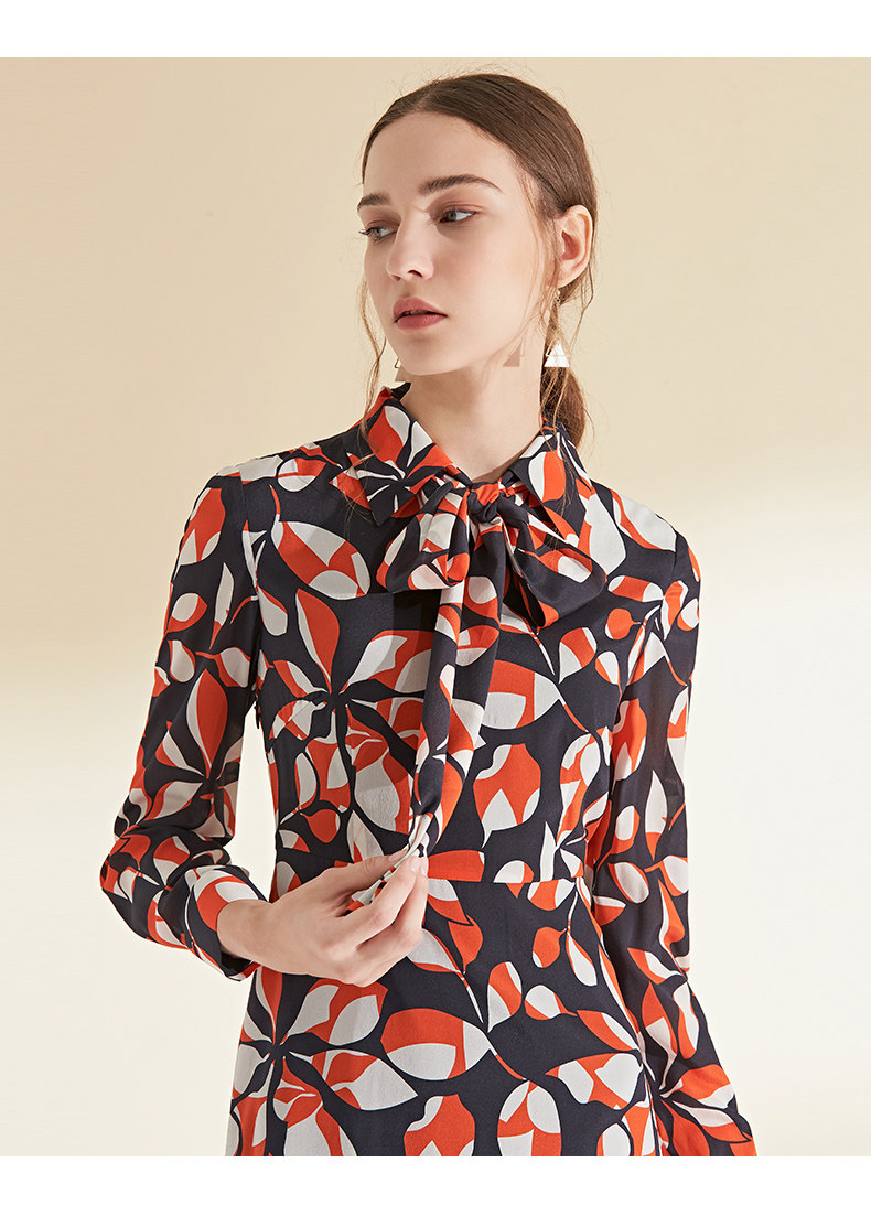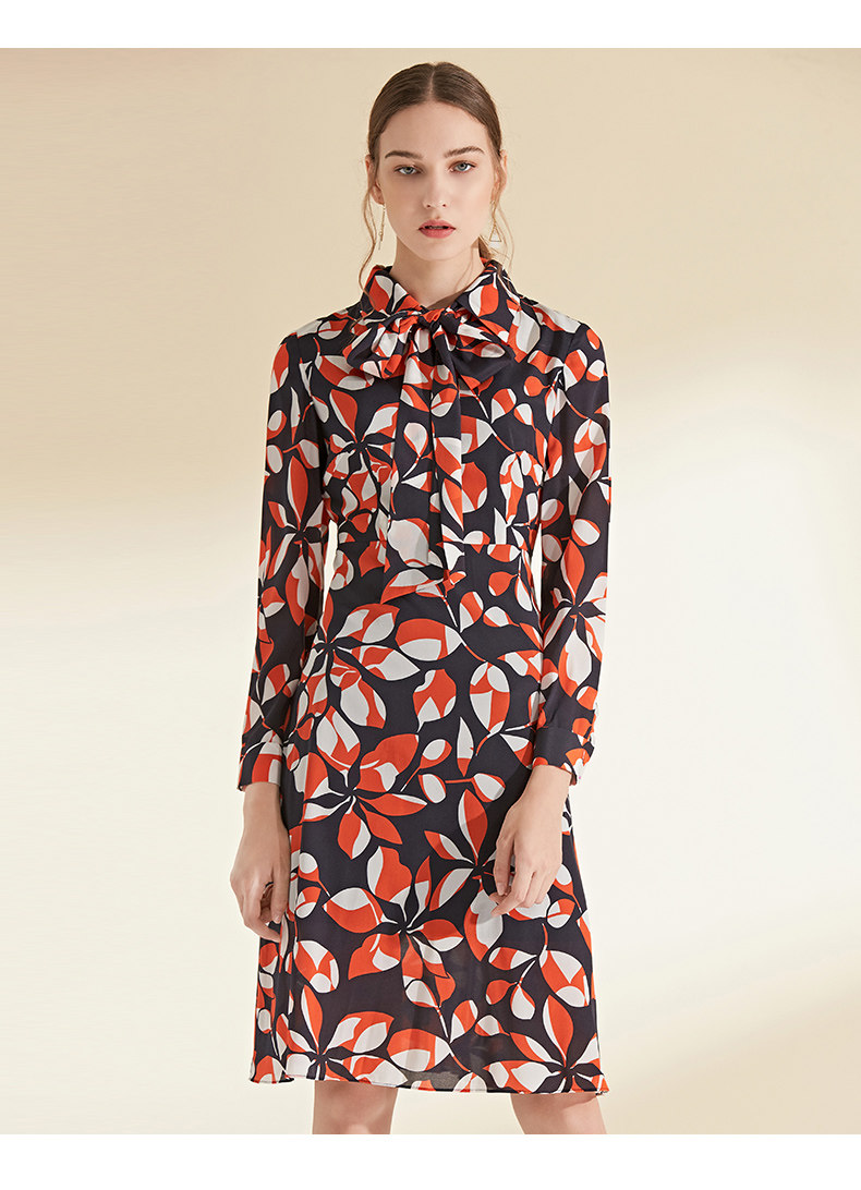 EITIE爱特爱女装初秋季新款长袖系带收腰显瘦时尚印花连衣裙6007705