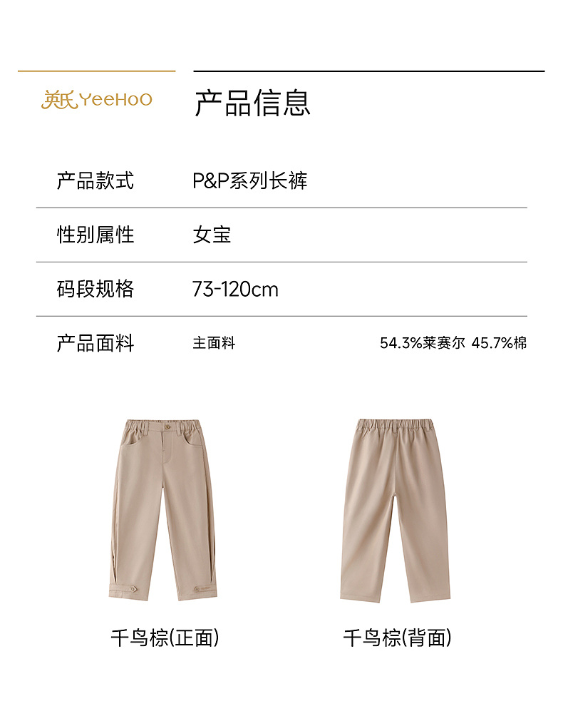 【高定系列】英氏儿童裤子女童春夏棕色长裤百搭新款宝宝休闲裤装