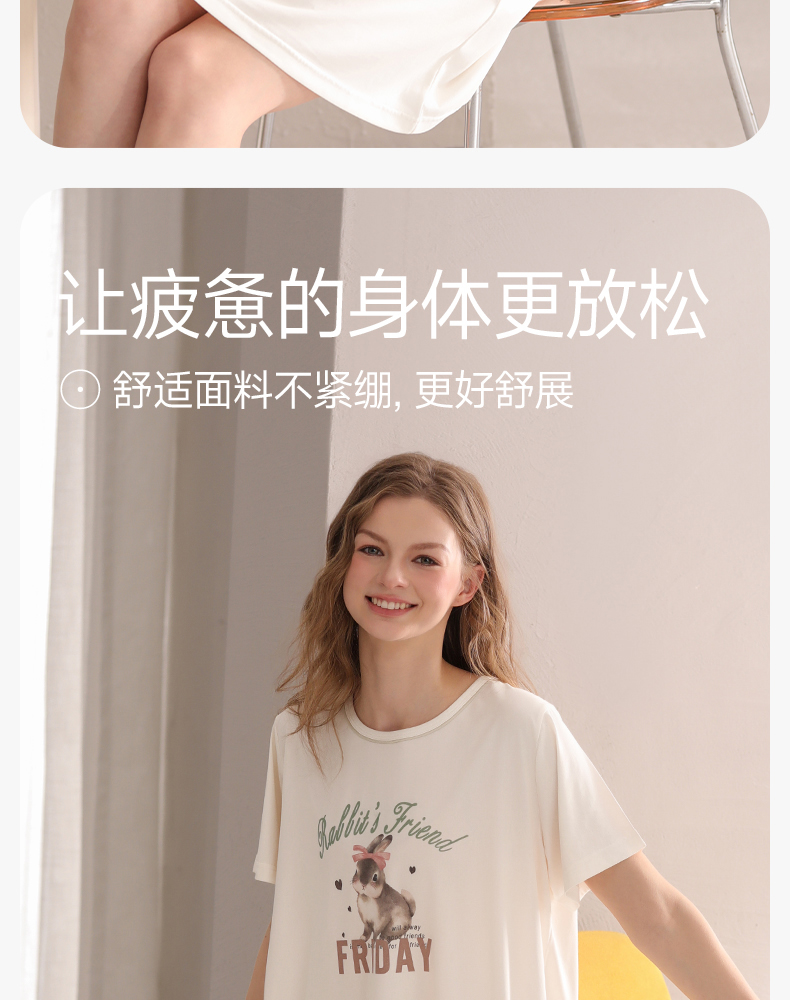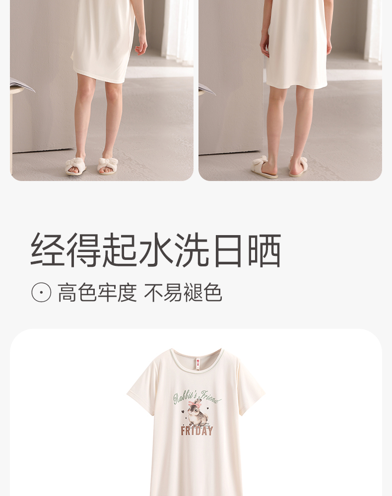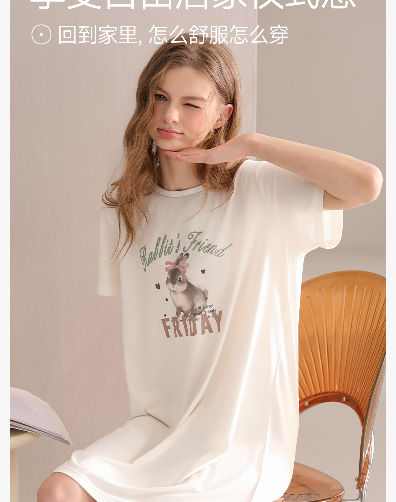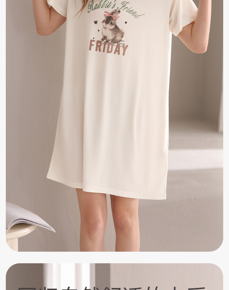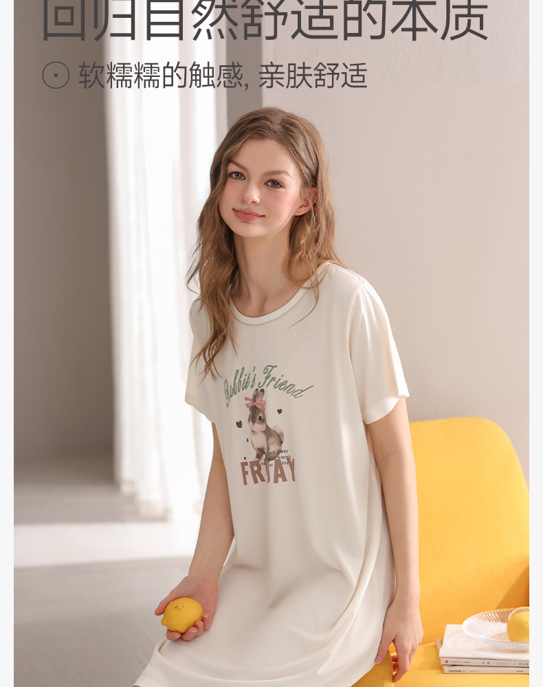 芬腾女士睡裙夏季薄款短袖睡衣中裙甜美少女可爱休闲家居服连衣裙