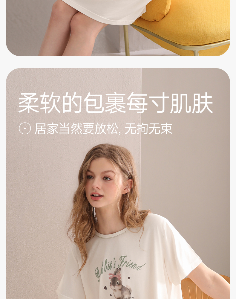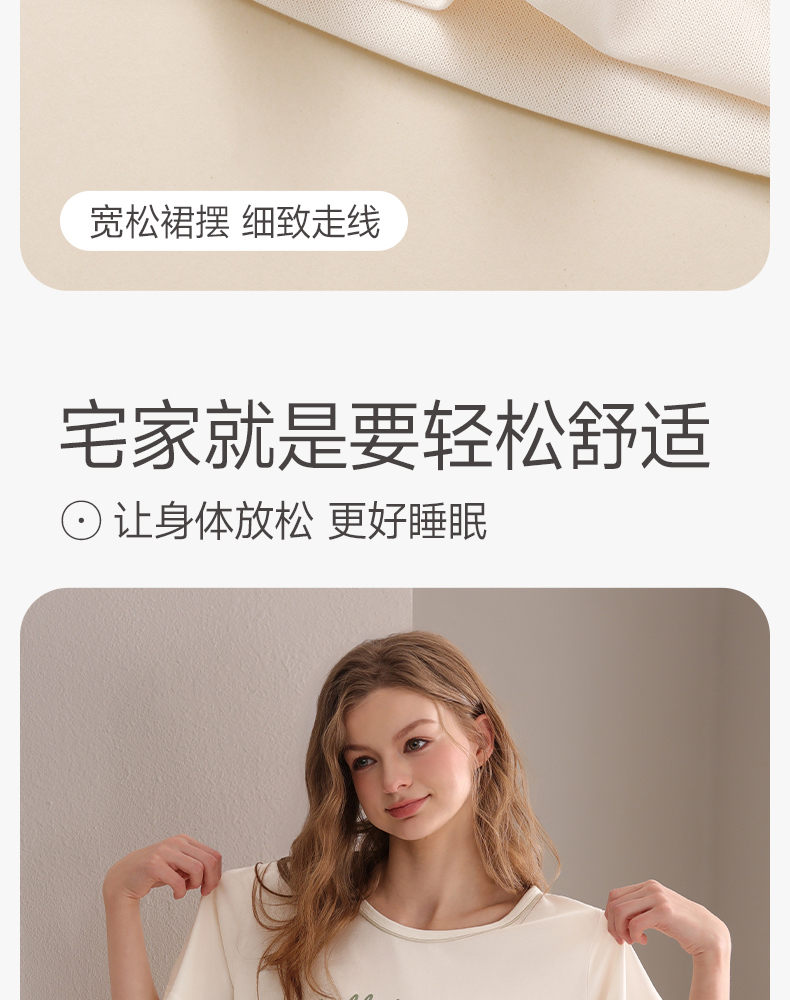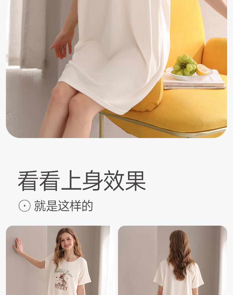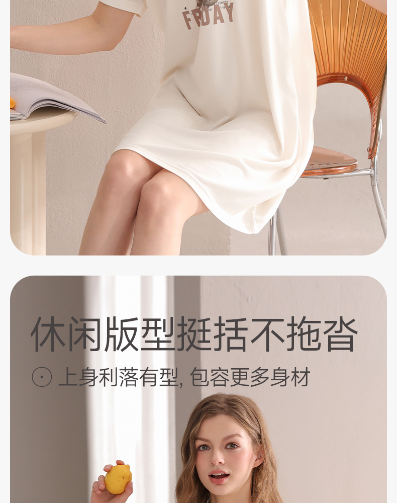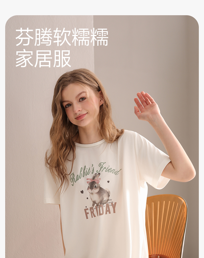 芬腾女士睡裙夏季薄款短袖睡衣中裙甜美少女可爱休闲家居服连衣裙