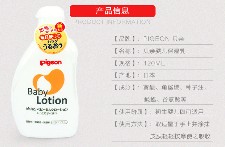 贝亲Pigeon婴儿保湿润肤霜宝宝润肤乳儿童护肤用品120ml
