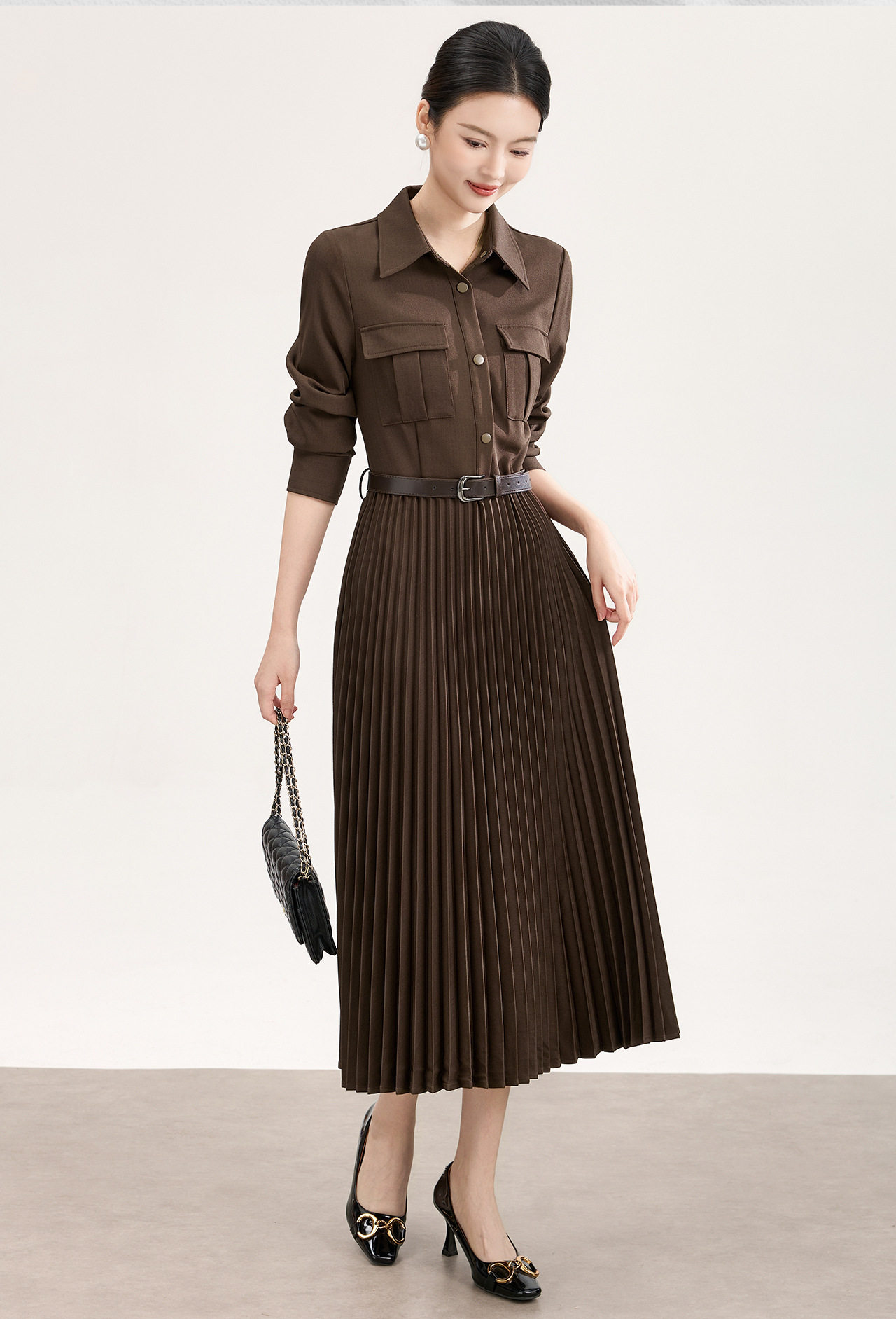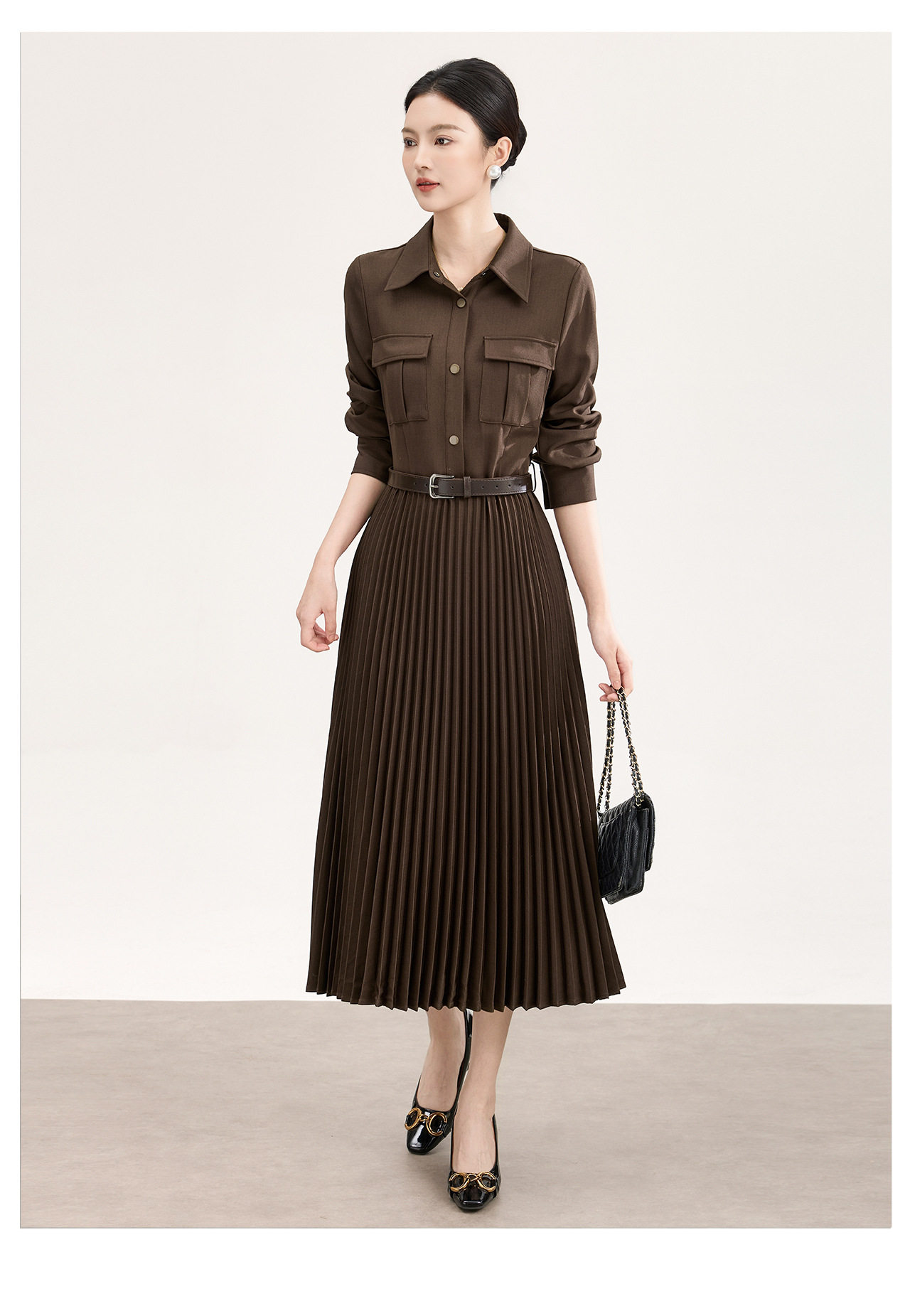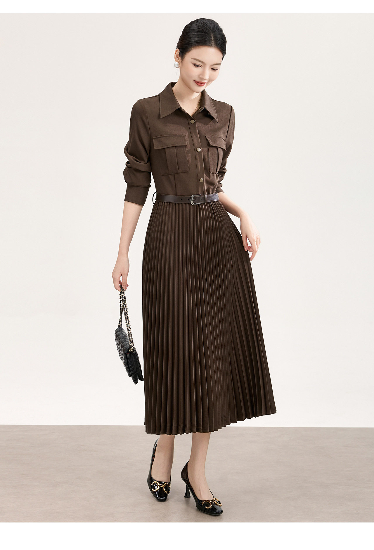 「高货wl」全新升级【铂金会员358/天猫479/差价121】(10554)洛诗琳气质衬衫连衣裙2026春季新款百搭收腰显瘦百褶裙