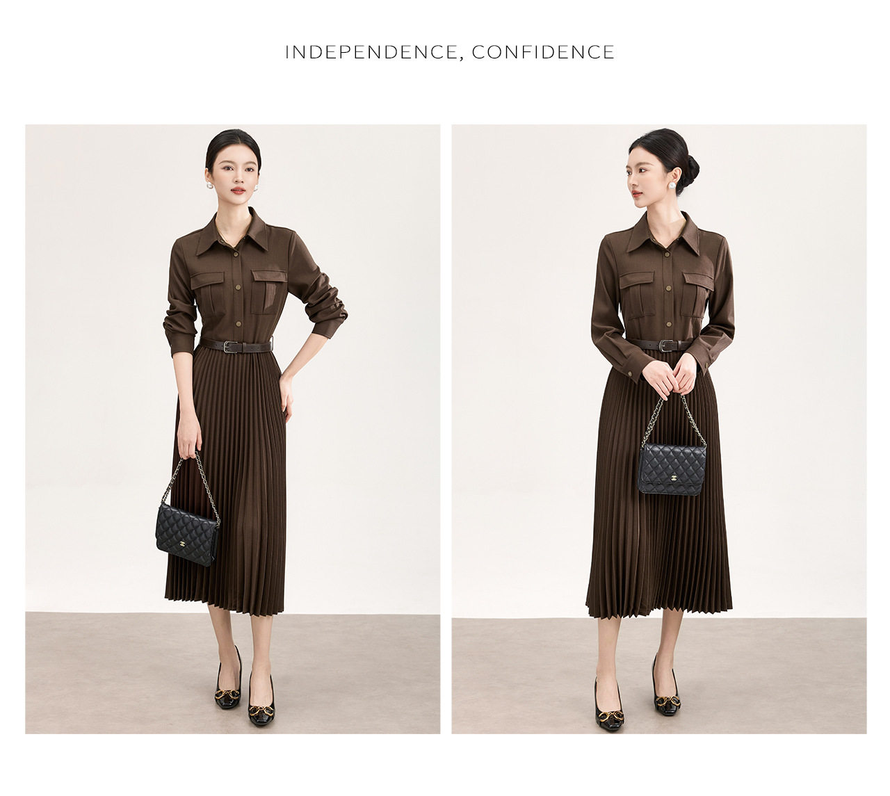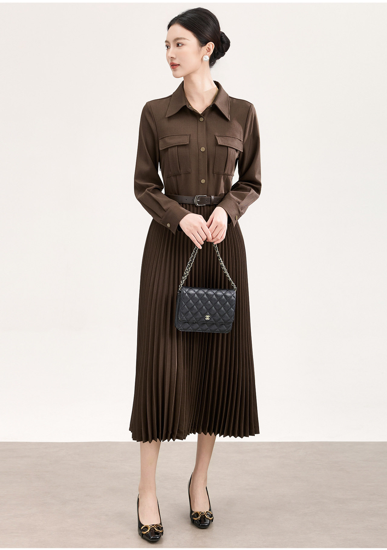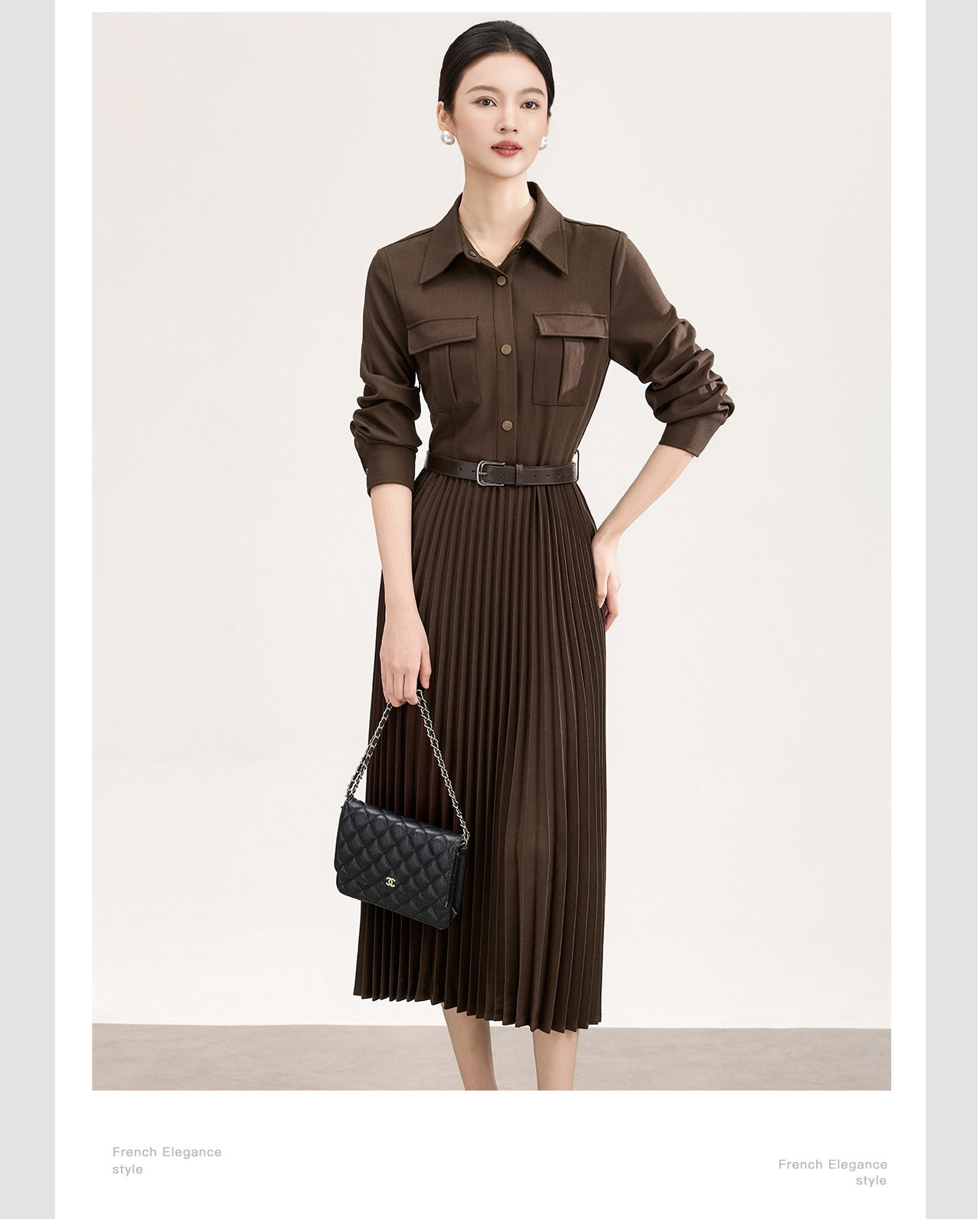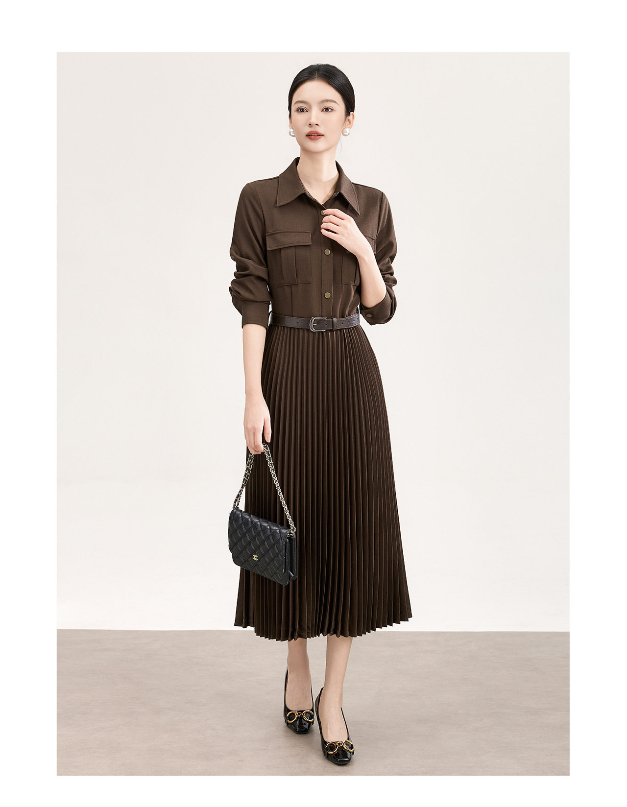「高货wl」全新升级【铂金会员358/天猫479/差价121】(10554)洛诗琳气质衬衫连衣裙2026春季新款百搭收腰显瘦百褶裙