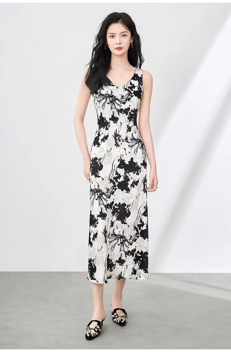 「高货wl」全新升级【铂金会员339/天猫459/差价120】(94216)洛诗琳法式印花背心裙2025夏季新款气质醋酸收腰裙子女94216