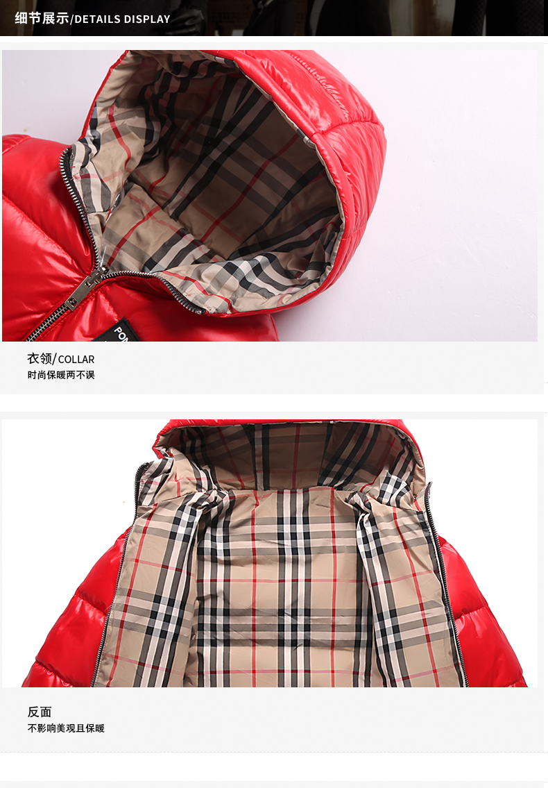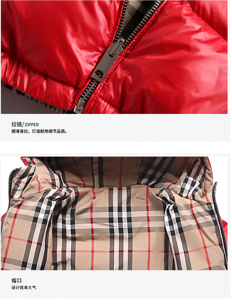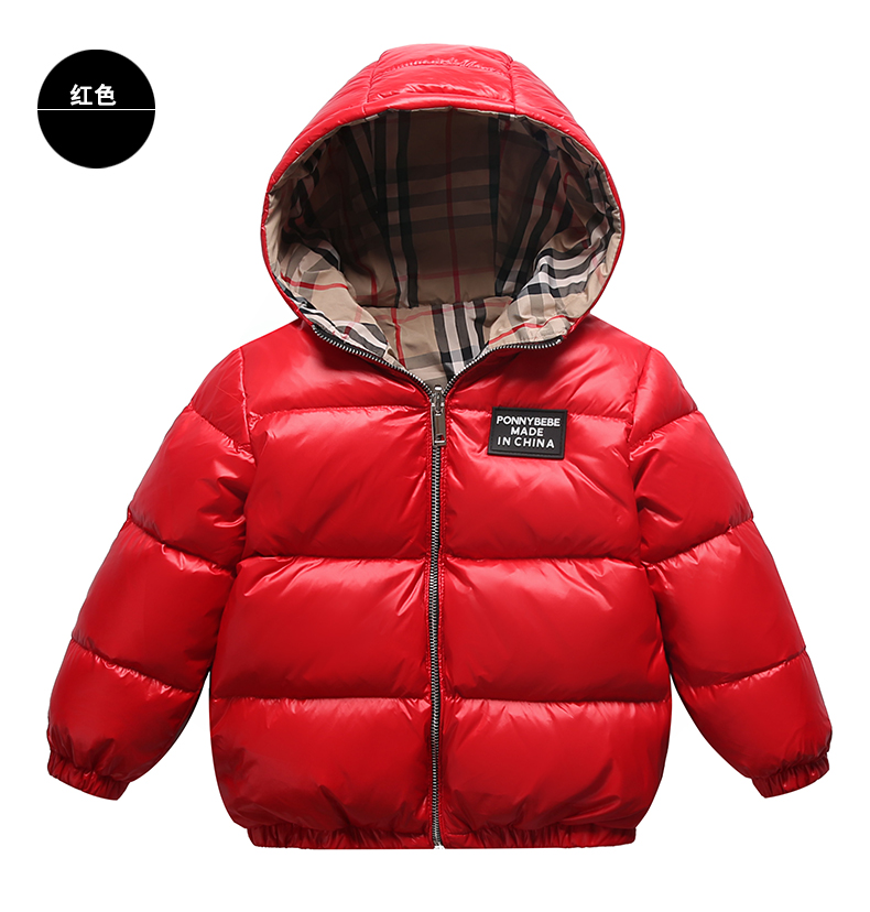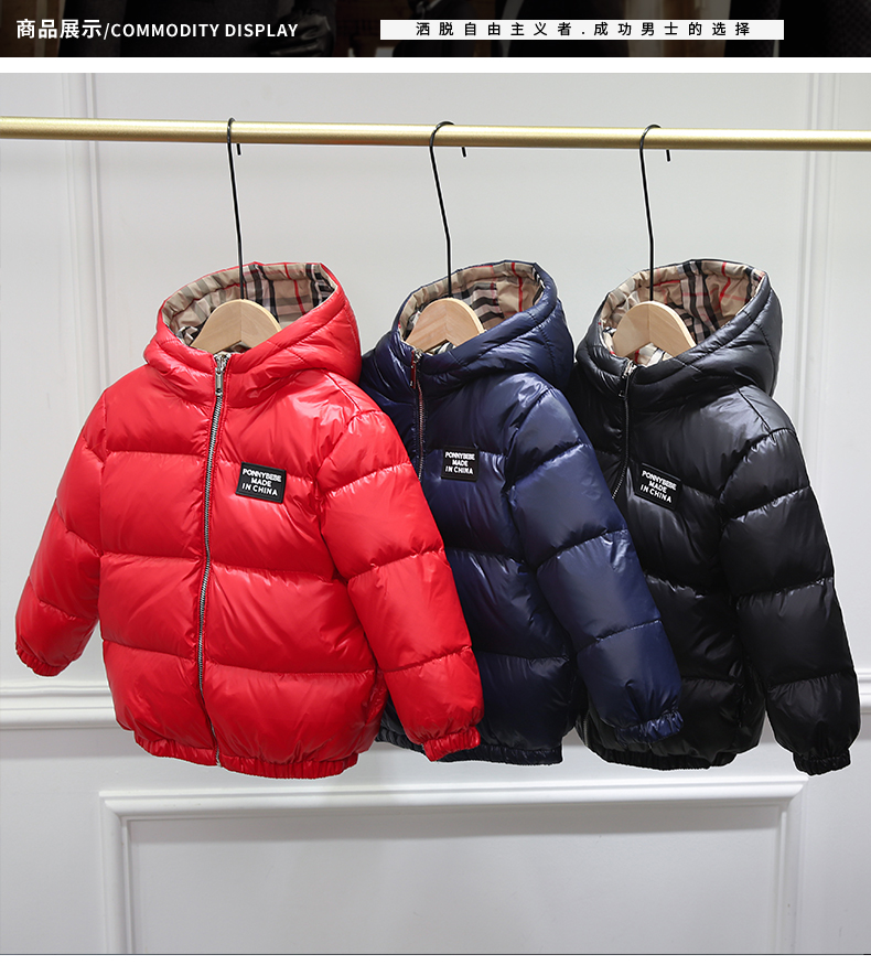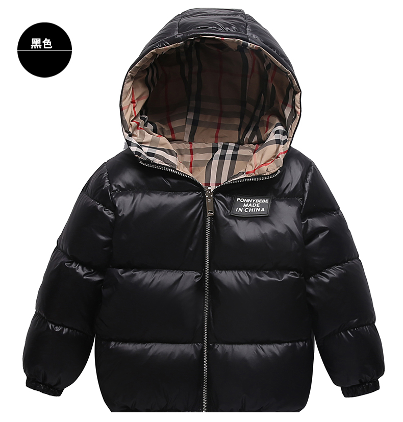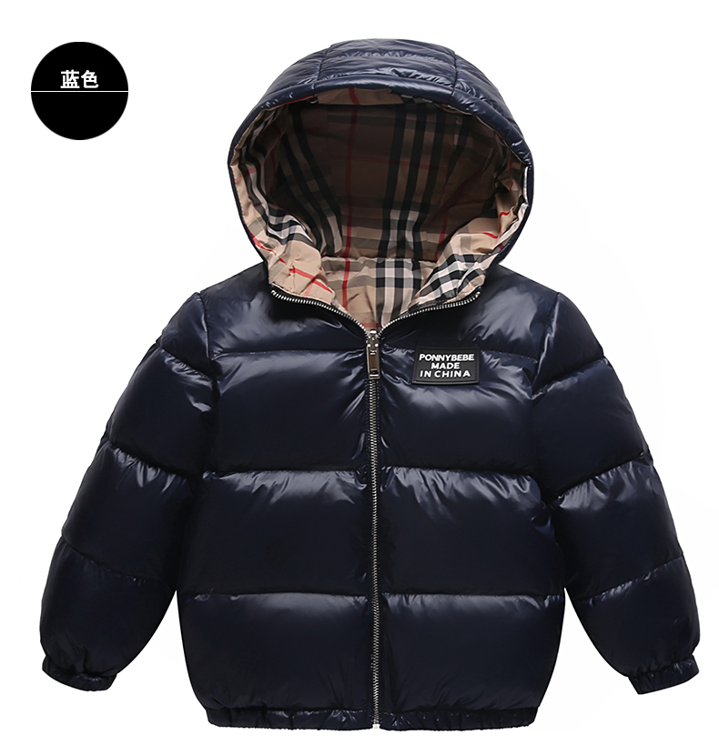 上海旗袍厂WL-【ZZZS】21/7/28(主)秋冬童装男童女童羽绒服两面穿短款宝宝格子连帽白鸭绒外套
