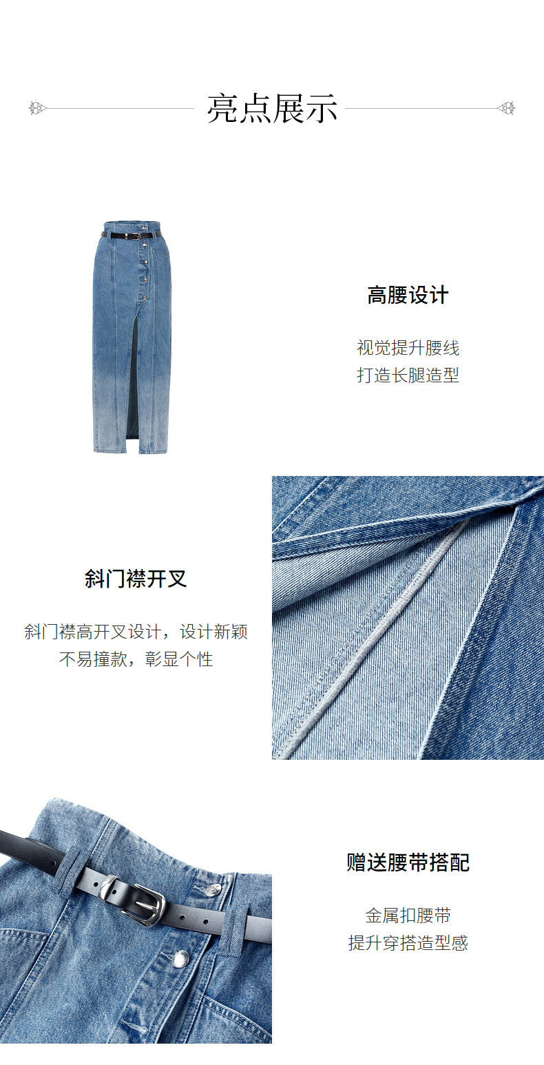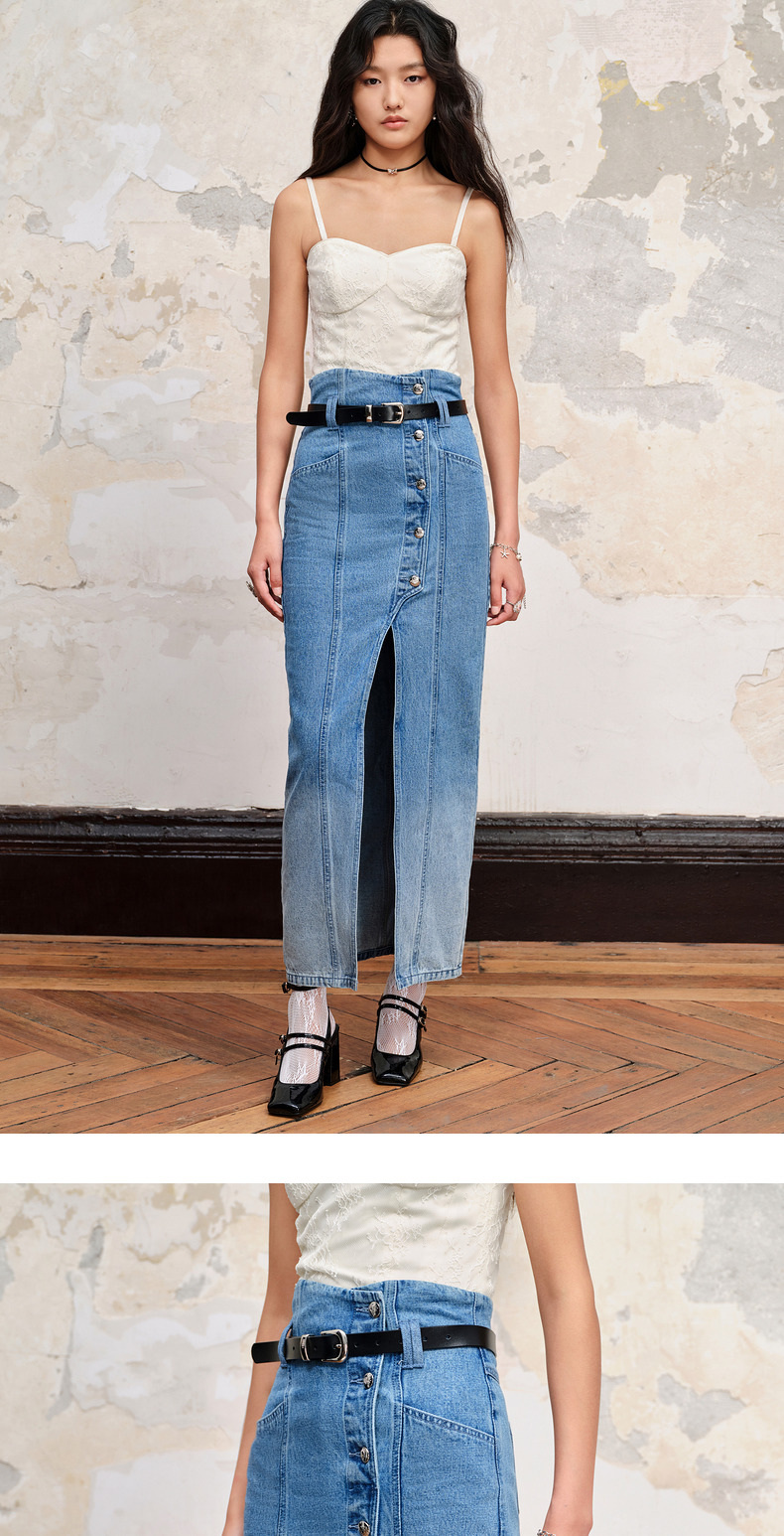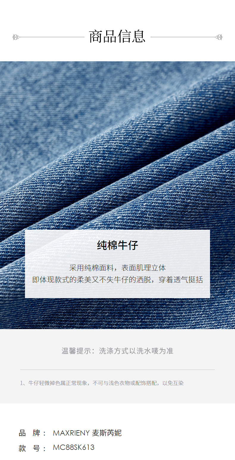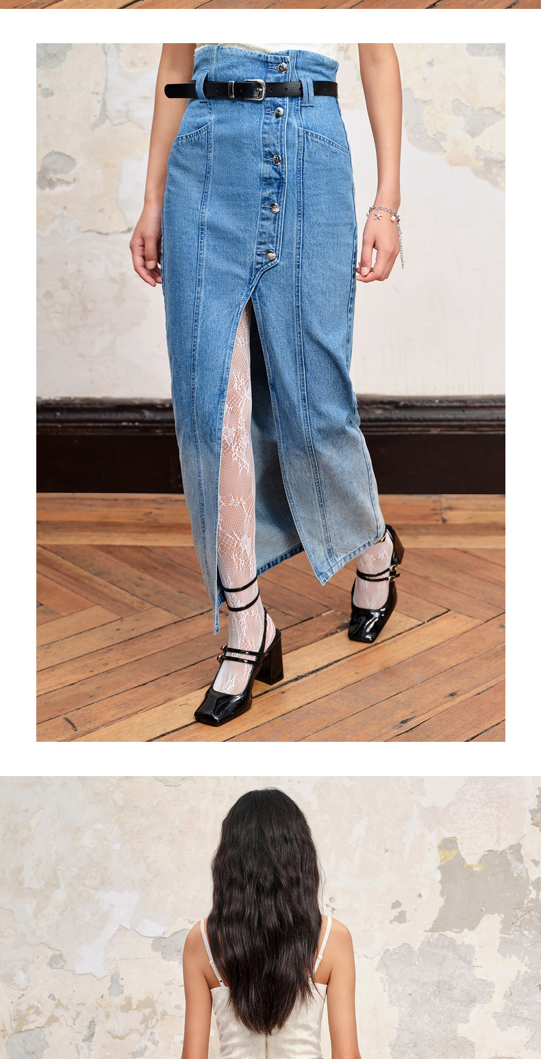 MAXRIENY高腰斜开叉牛仔长裙早秋小众设计感半裙(货号:MC88SK613)