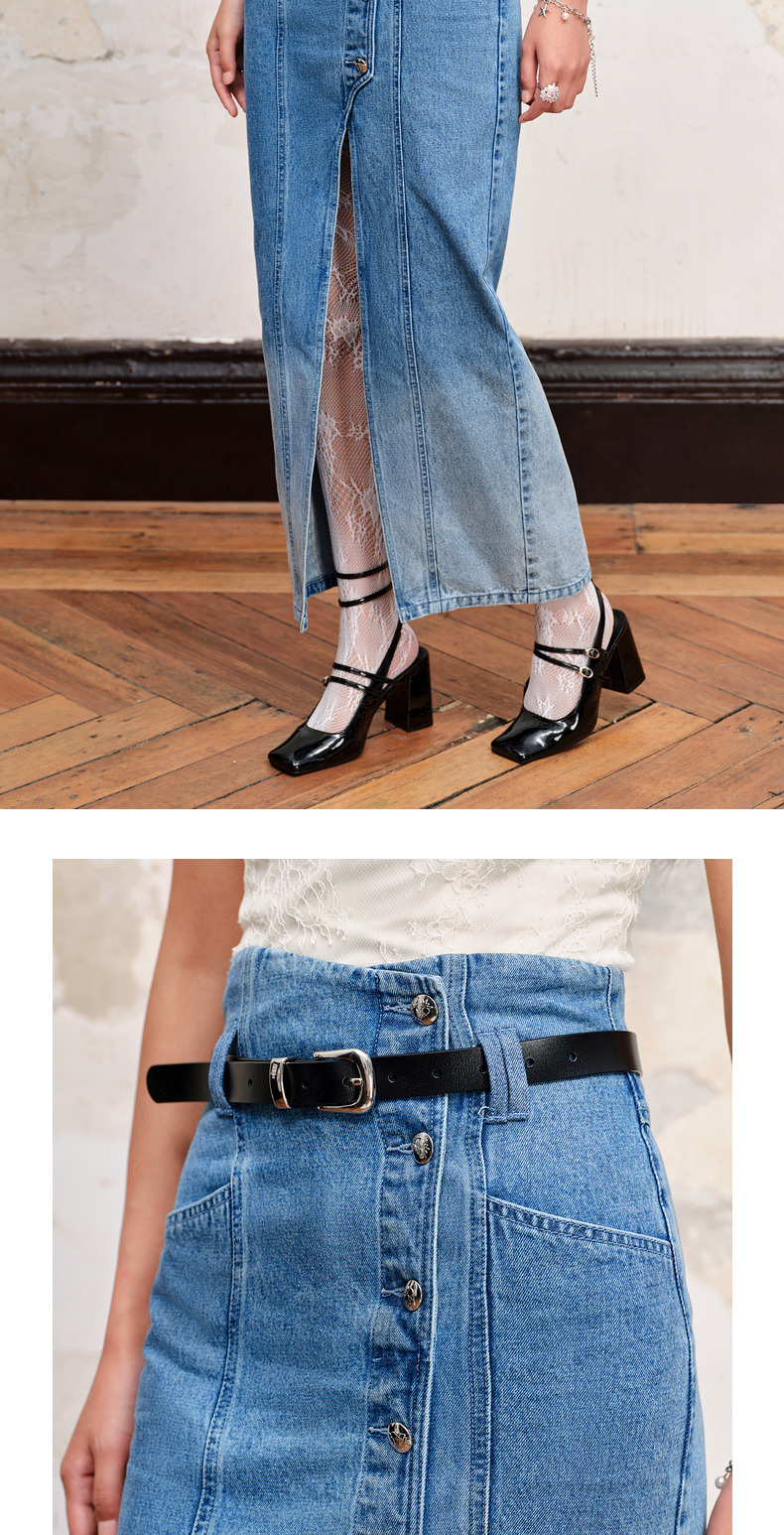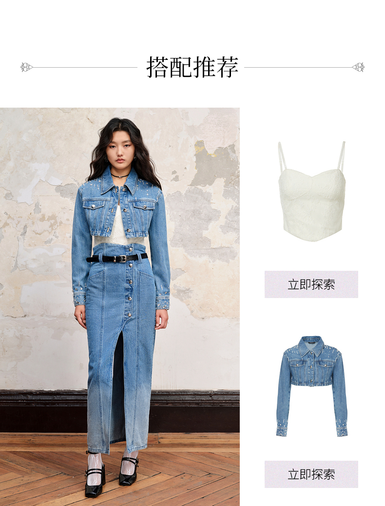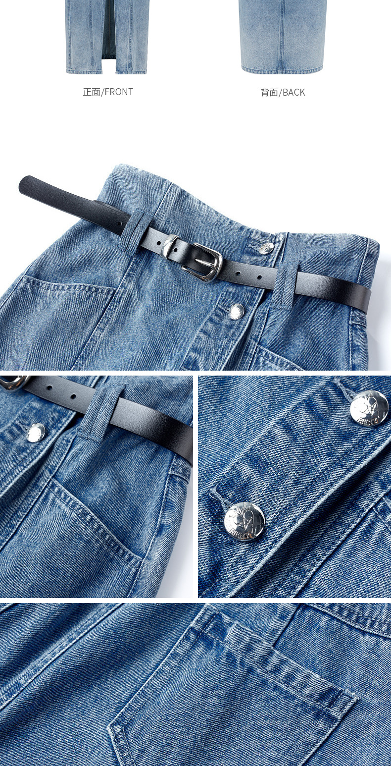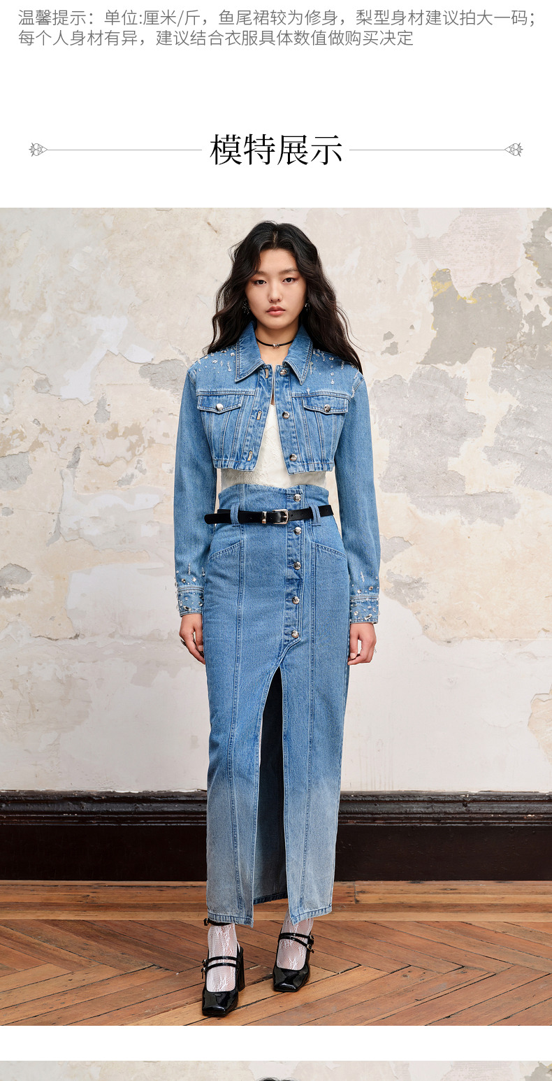 MAXRIENY高腰斜开叉牛仔长裙早秋小众设计感半裙(货号:MC88SK613)