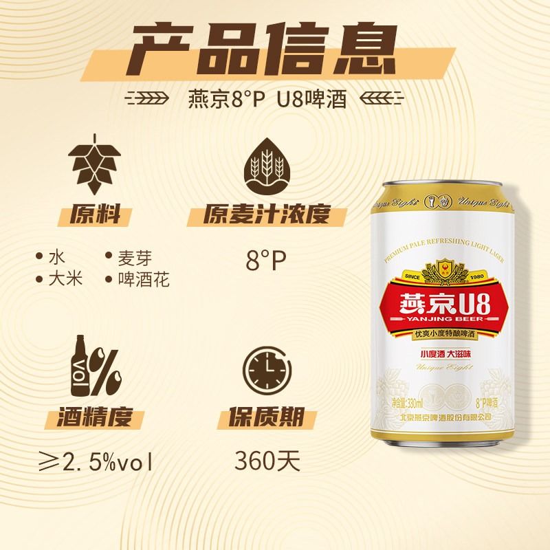 燕京U8 330ml*24啤酒六连包(箱)