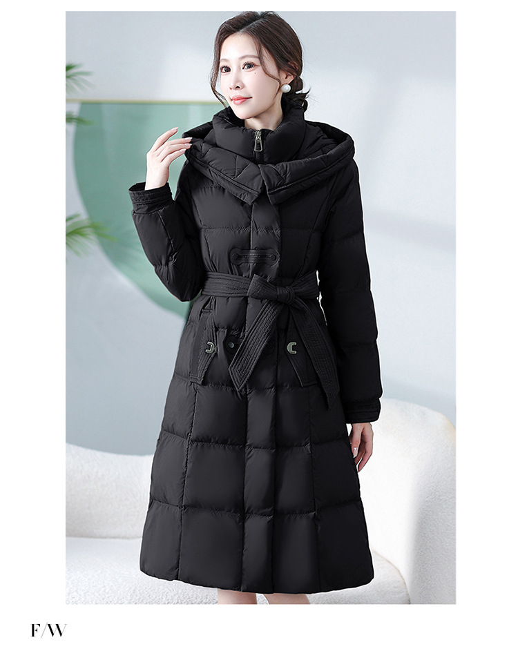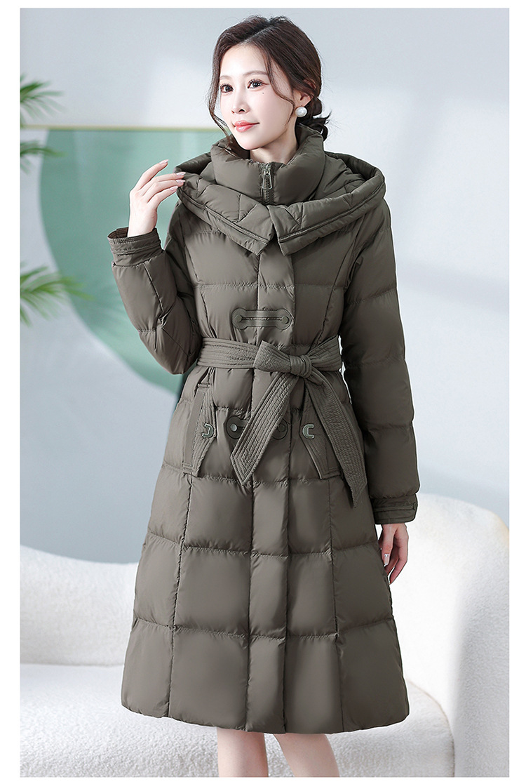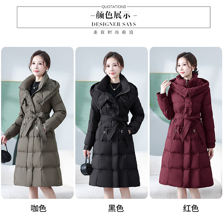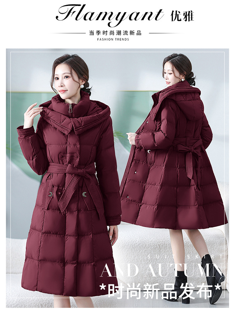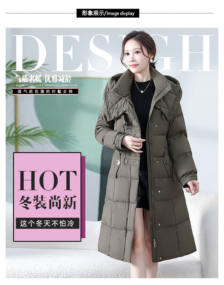 中长款腰带羽绒服,连帽宽松休闲羽绒服QYM- XY-24DY02-1-Y