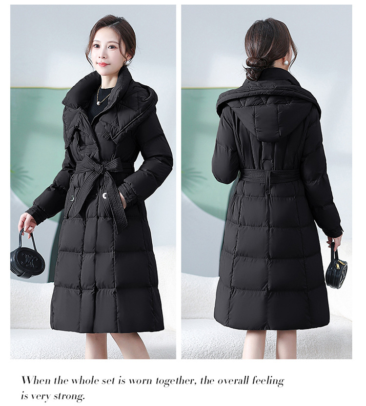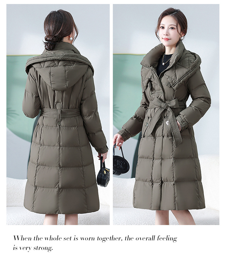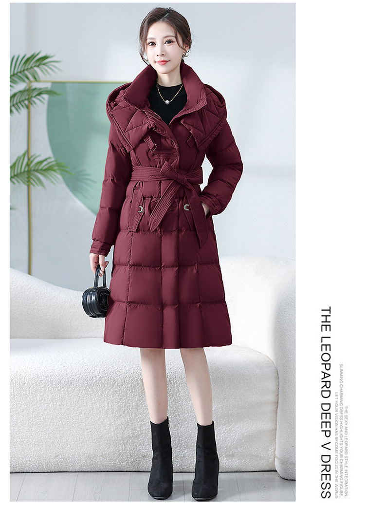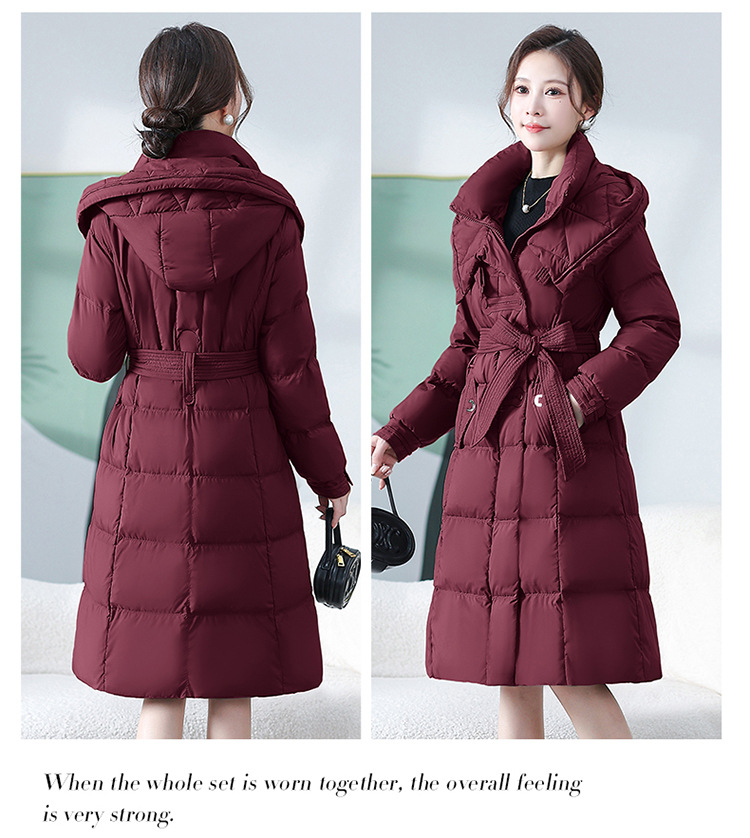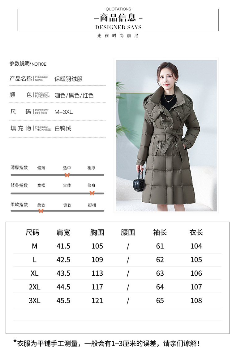 中长款腰带羽绒服,连帽宽松休闲羽绒服QYM- XY-24DY02-1-Y