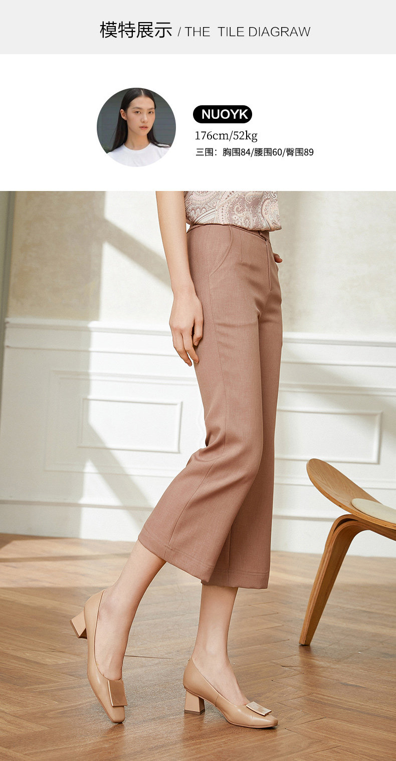 乔万尼新款休闲裤女夏薄款宽松显瘦七分纯色阔腿裤EI2F793