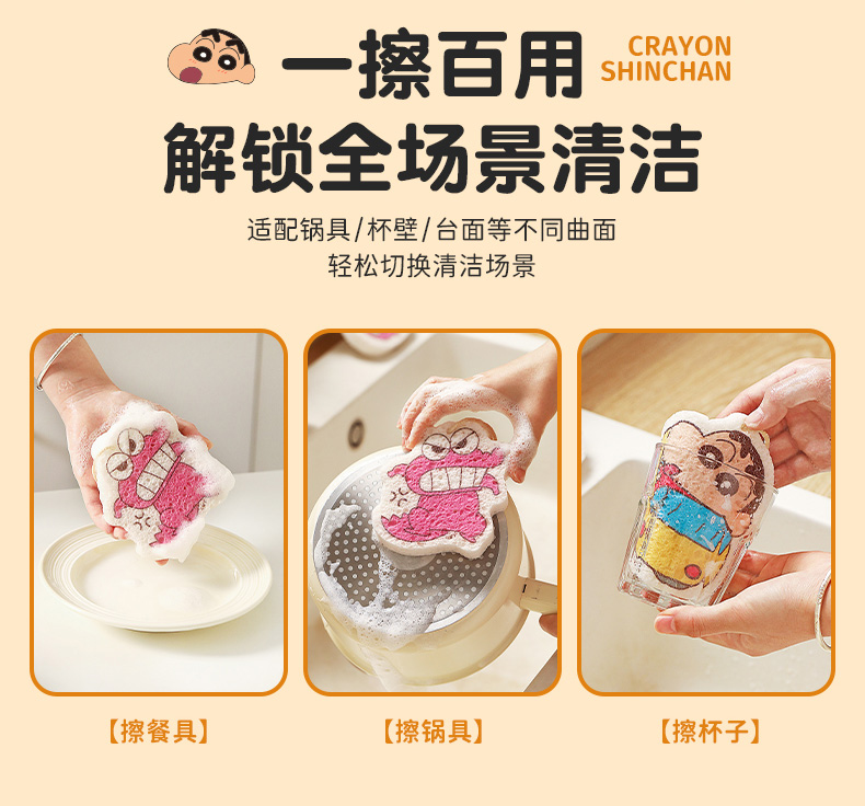 摩登主妇蜡笔小新木浆棉洗碗海绵擦刷碗神器魔力擦清洁去污百洁布