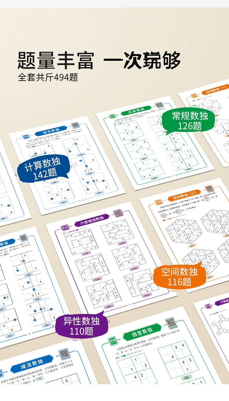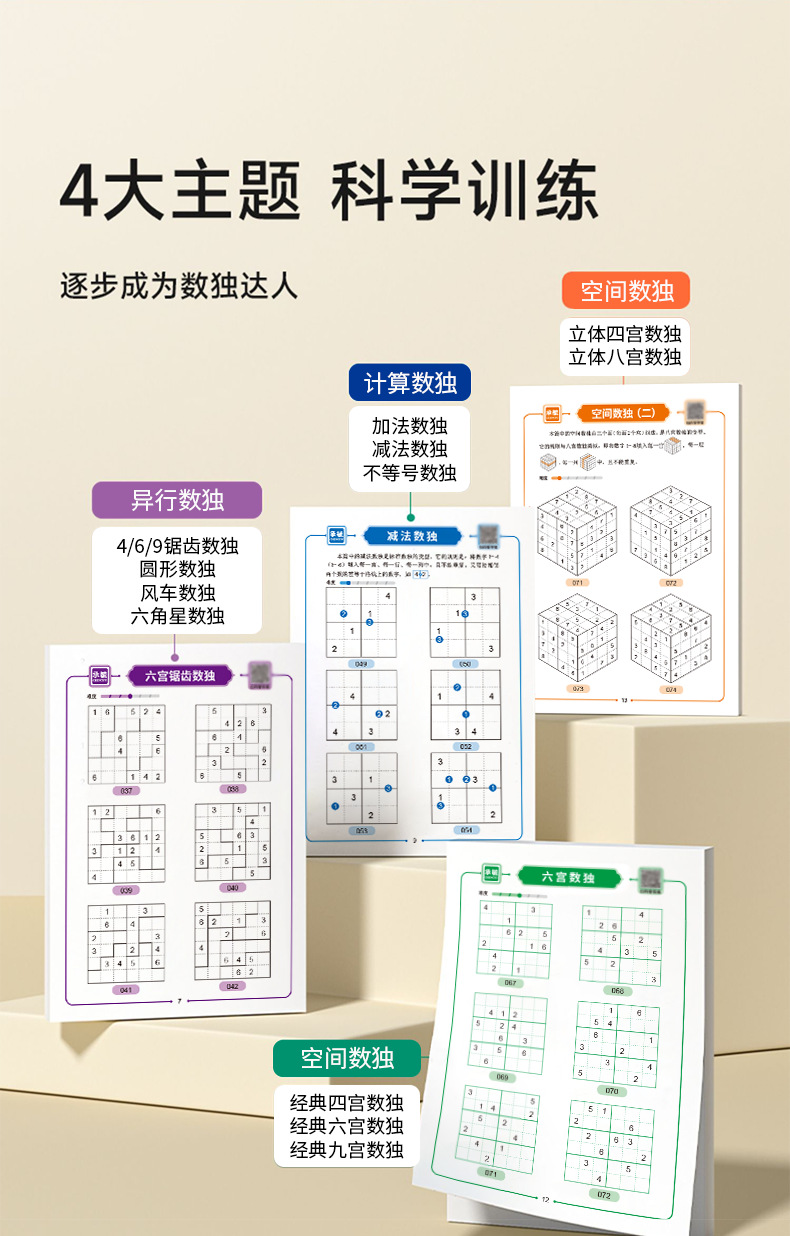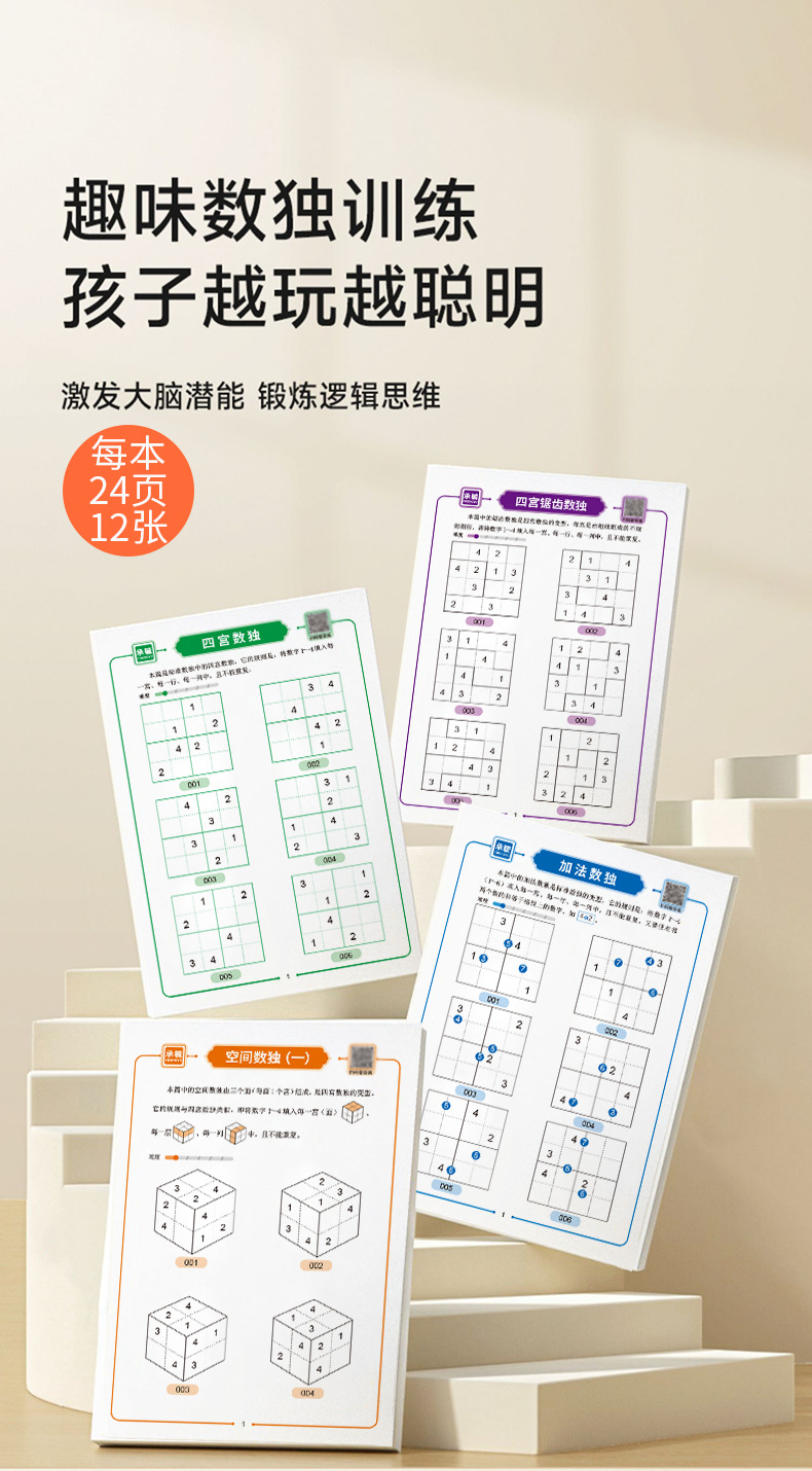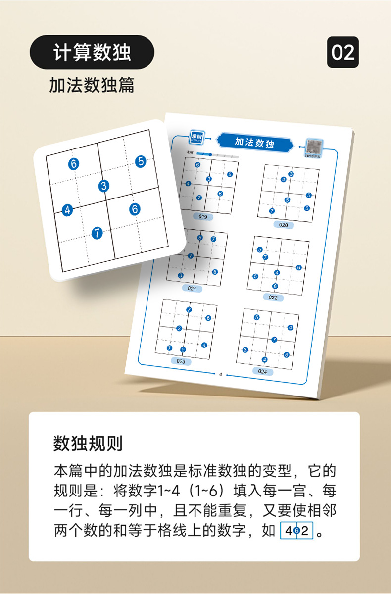 趣味数独训练册4本 |【科学训练 494道数独达人】趣味数独训练 孩子玩越聪明 自检自查 真正爱上数学 锻炼逻辑思维