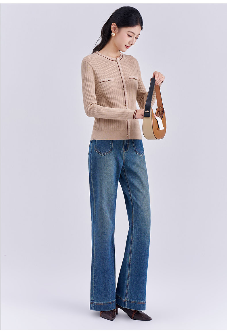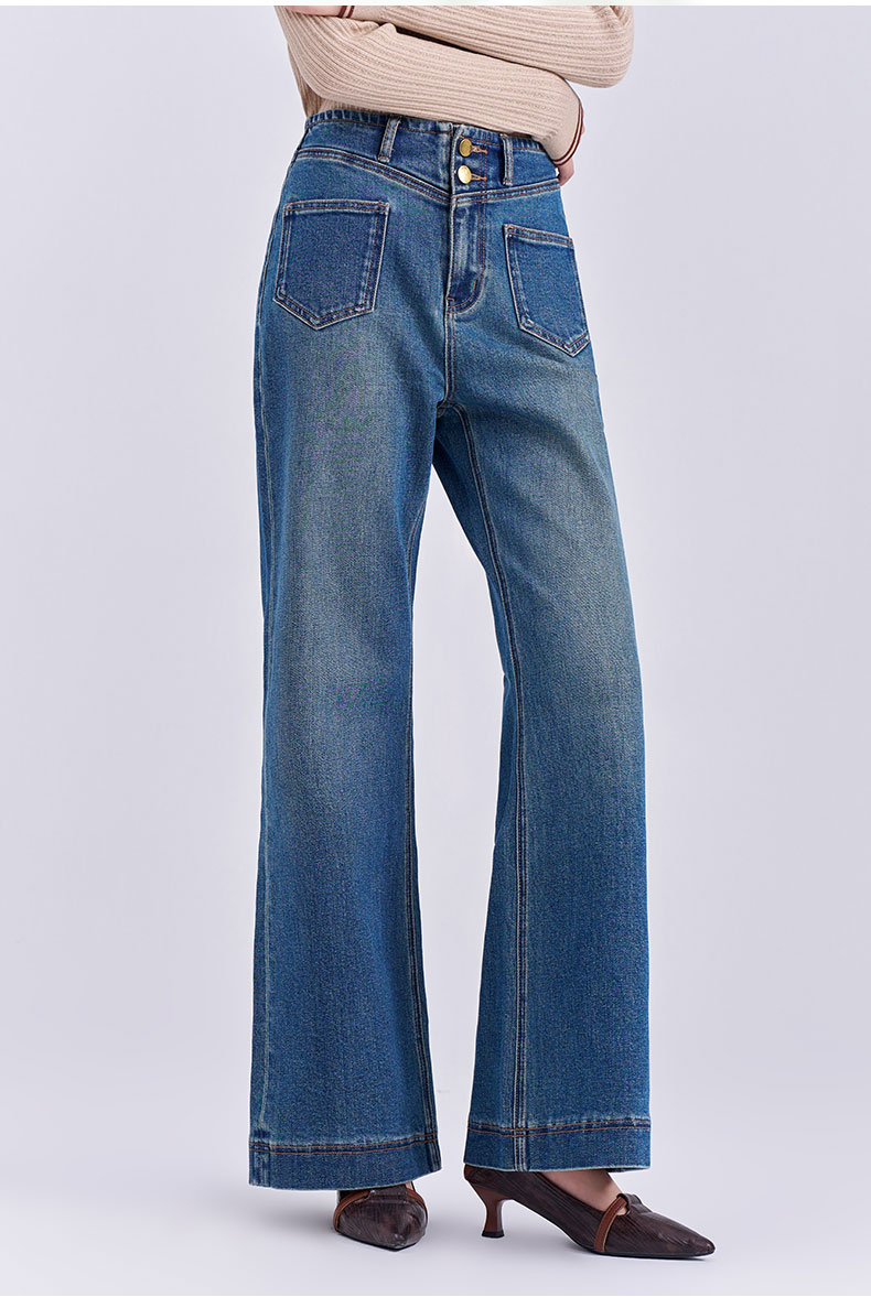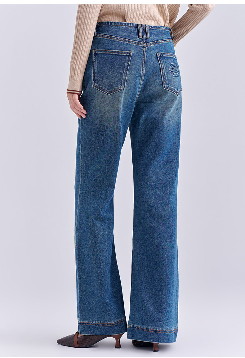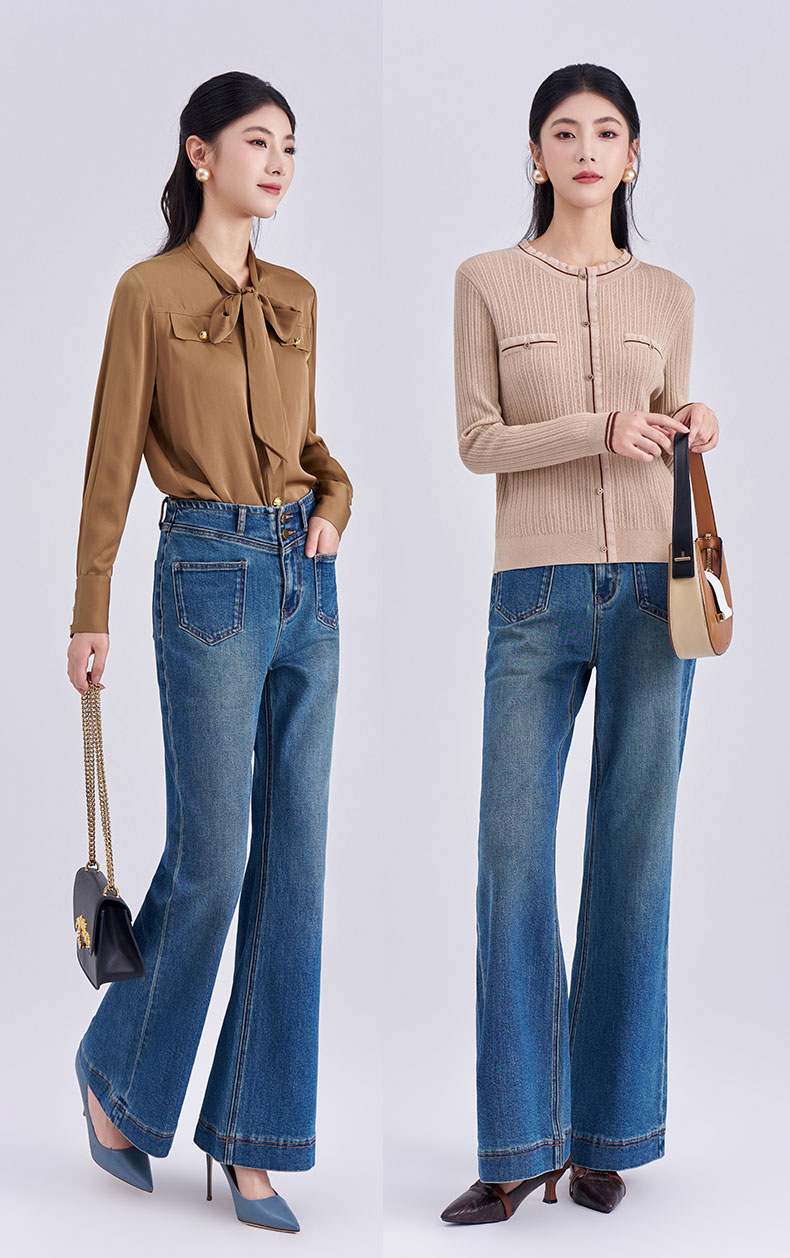 乔万尼2025冬新品设计感修身显瘦磨白水洗工艺微喇牛仔裤EZ3F178