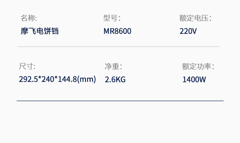 摩飞电饼铛(蓝)MR8600(次日起提配)