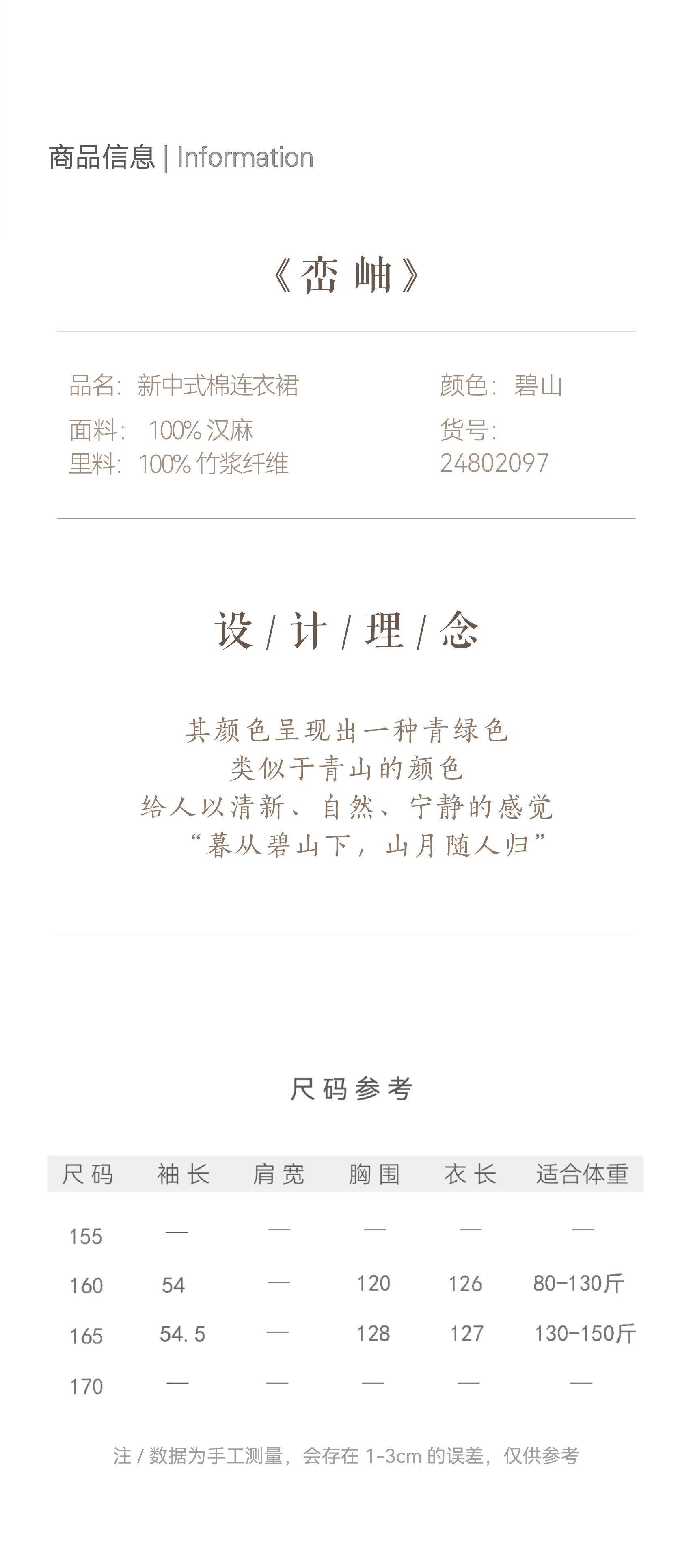 【抖音专属】新中式棉连衣裙(24802097-碧山-高定款)