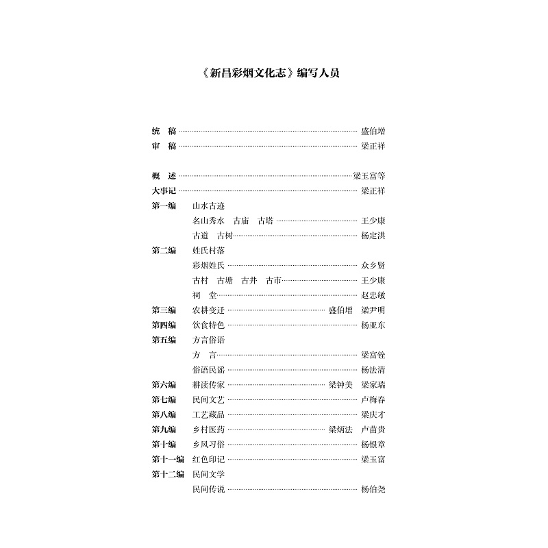 《新昌彩烟文化志》编委会,专为浙江省绍兴市新昌县彩烟地区的文化修志而成立,旨在全面记述彩烟地区历史沿革、风土习俗、文化遗承、名人名家等。