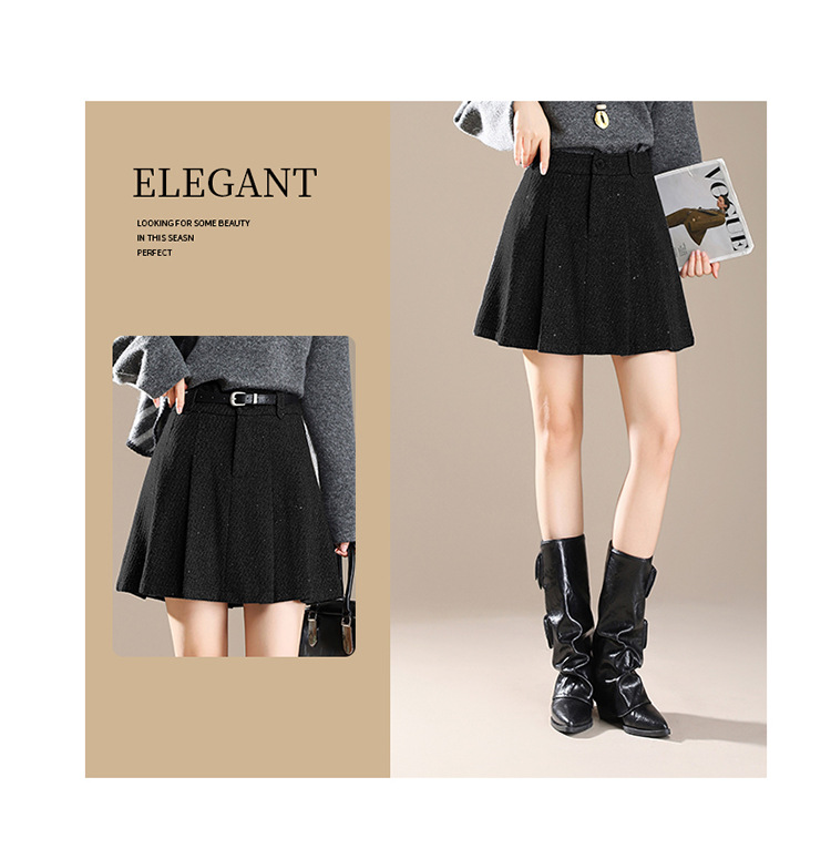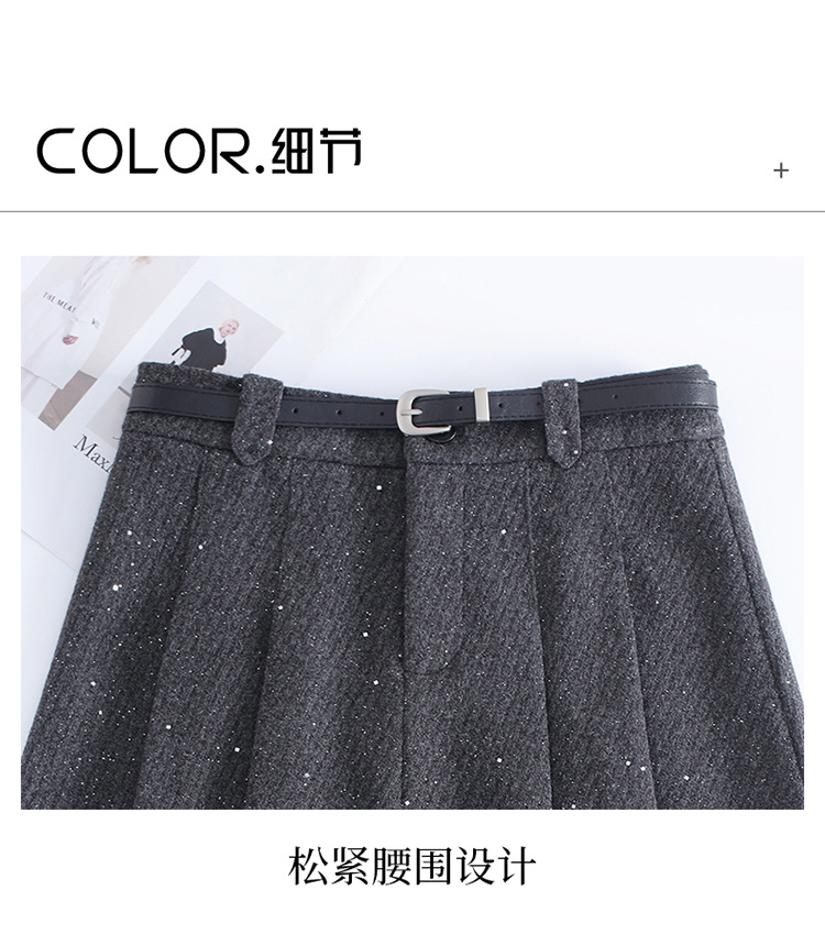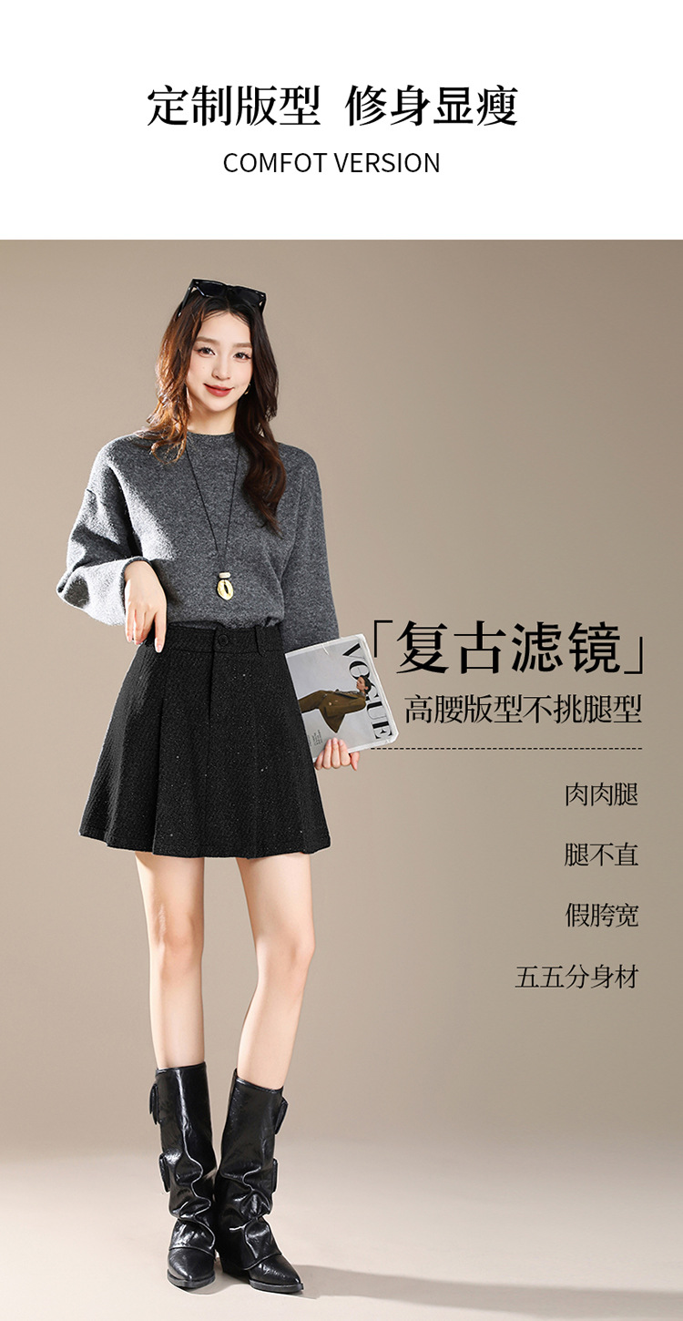 QYM M277-Y毛呢短款百褶裙高腰半身裙A字裙 商品图3