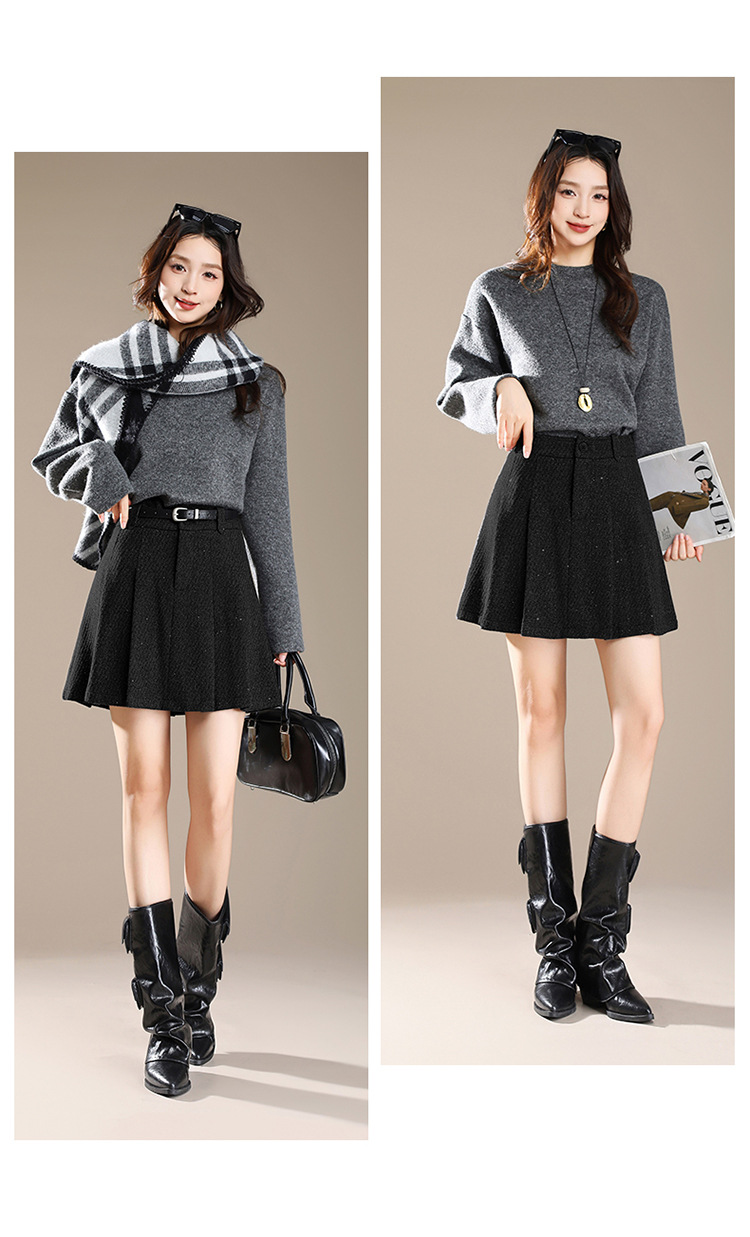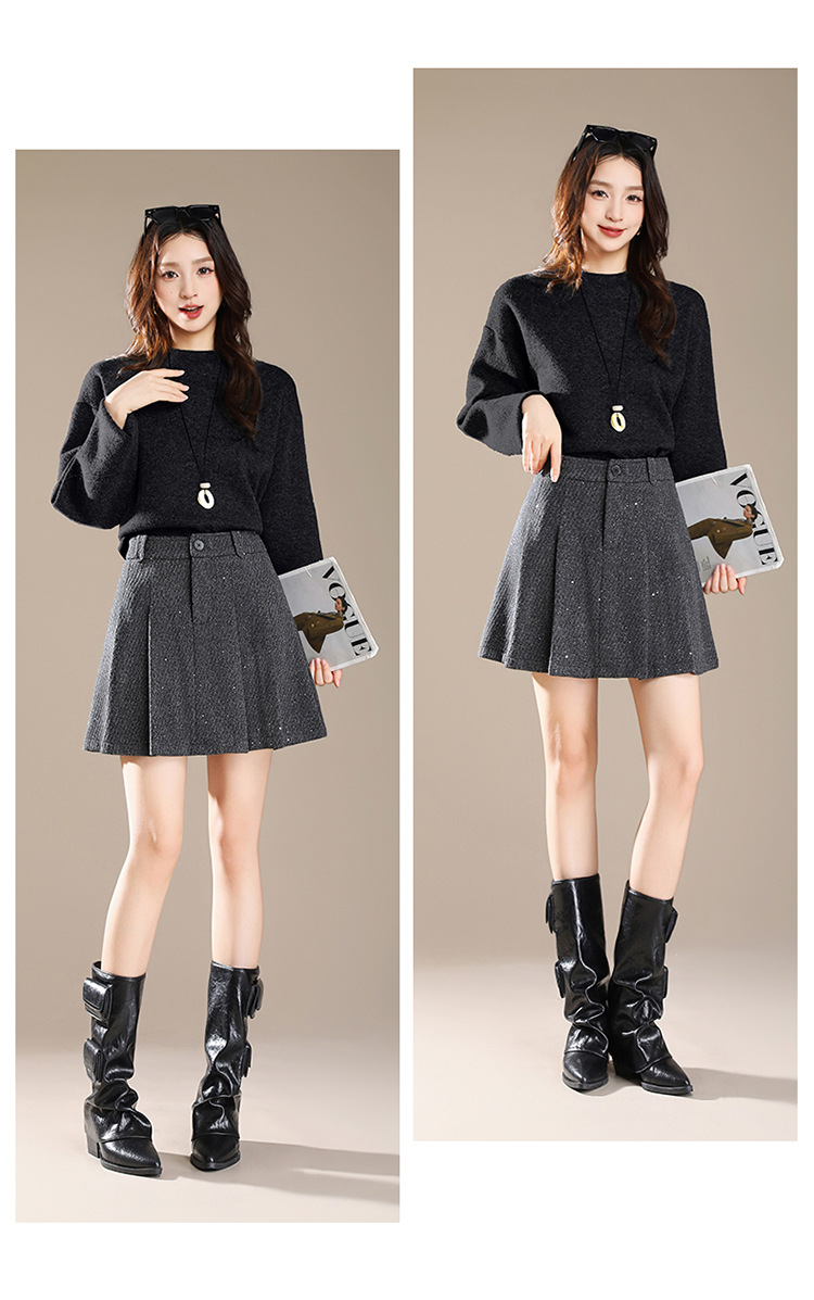 QYM M277-Y毛呢短款百褶裙高腰半身裙A字裙 商品图2
