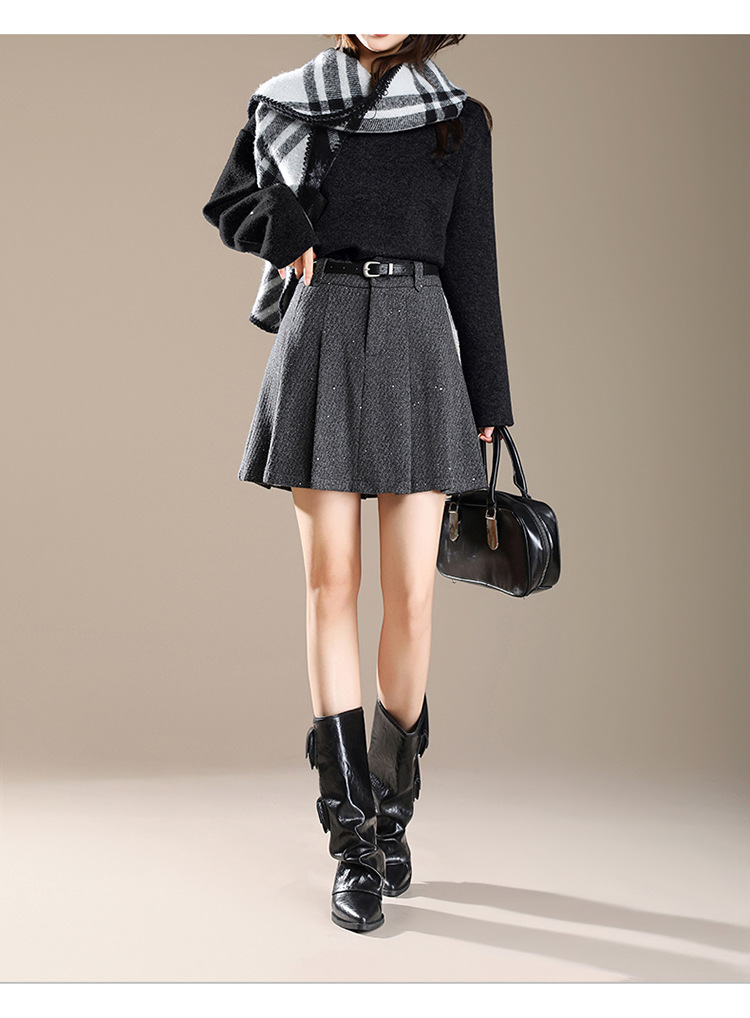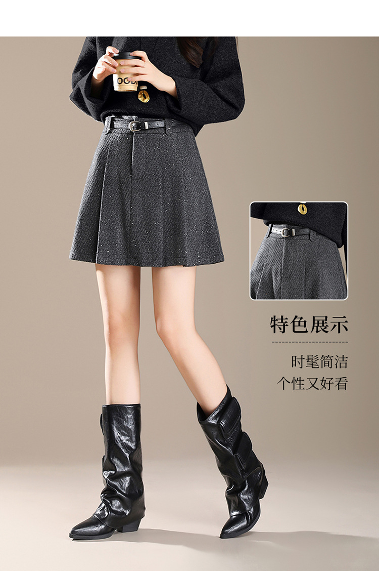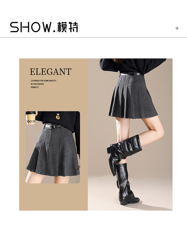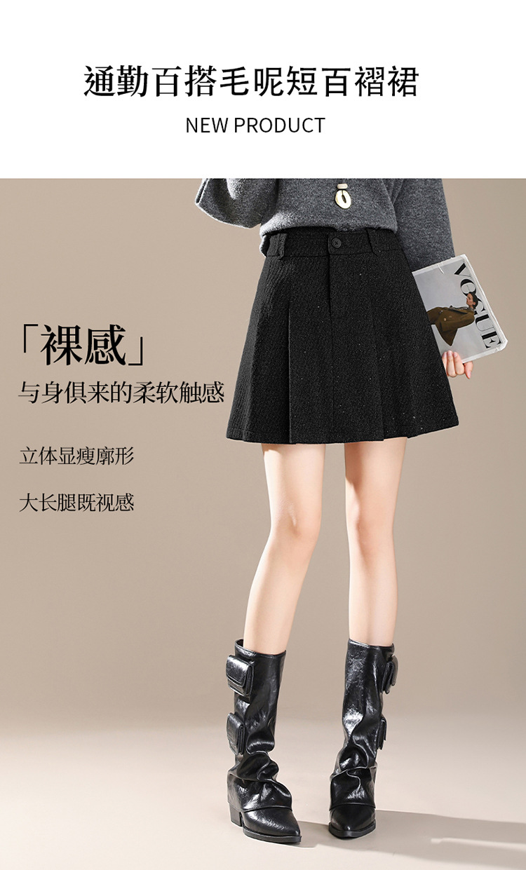 QYM M277-Y毛呢短款百褶裙高腰半身裙A字裙 商品图4