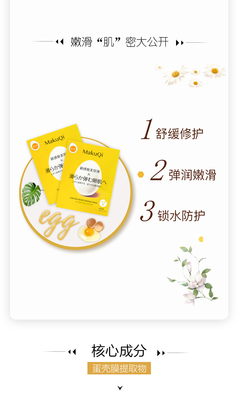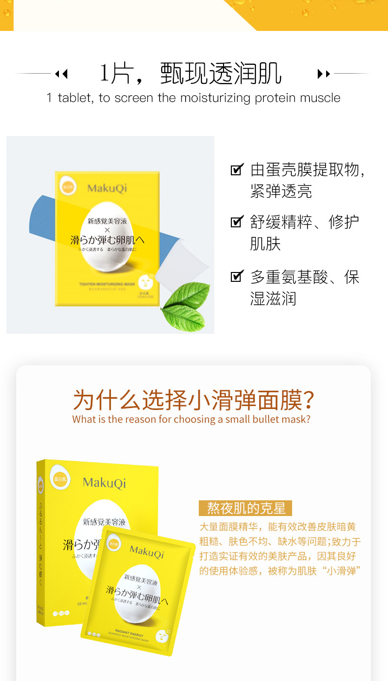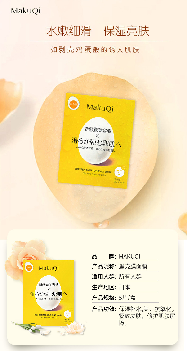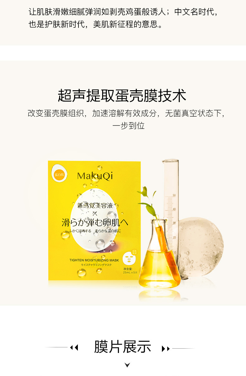 MakuQi时二蛋壳面膜蛋白肌美容液提亮肤色紧致弹嫩5片