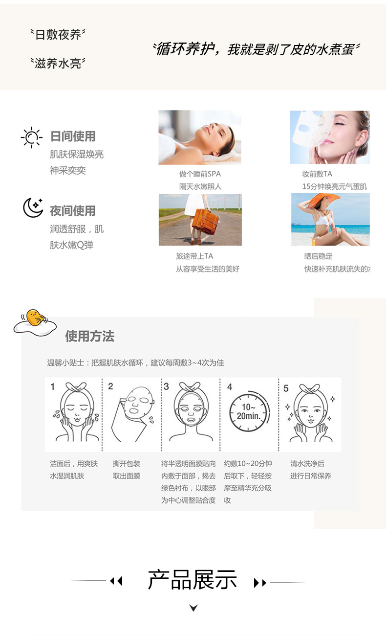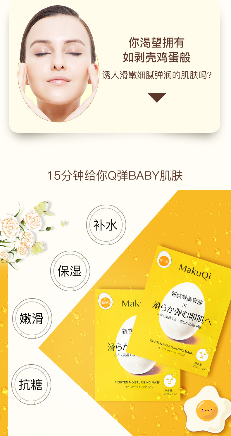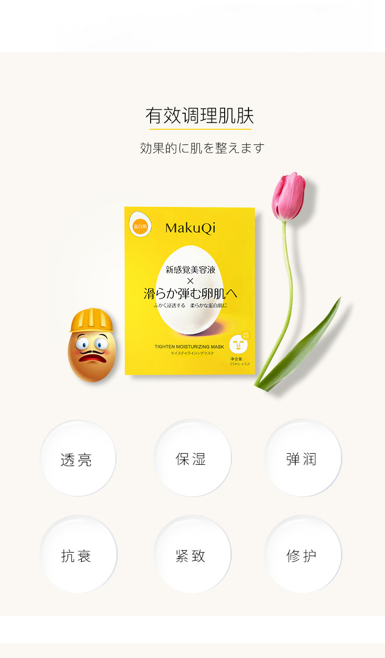 MakuQi时二蛋壳面膜蛋白肌美容液提亮肤色紧致弹嫩5片