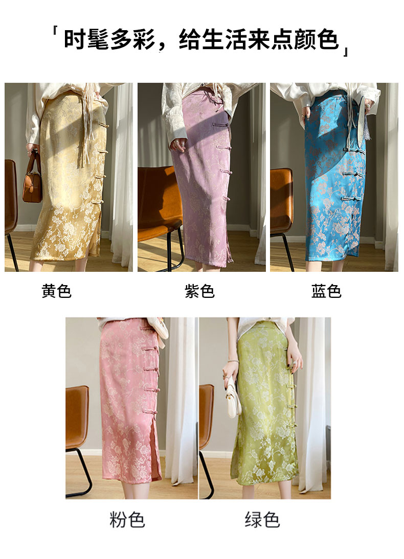 SIIJJEYY枝辑提花盘扣半身裙 (5色可选)