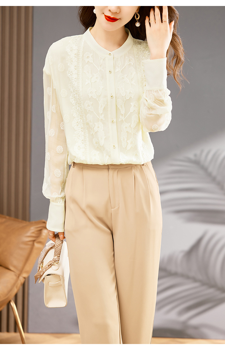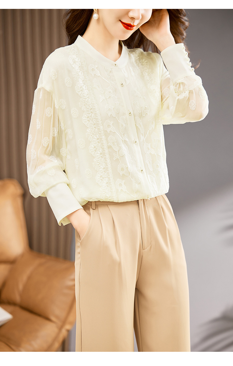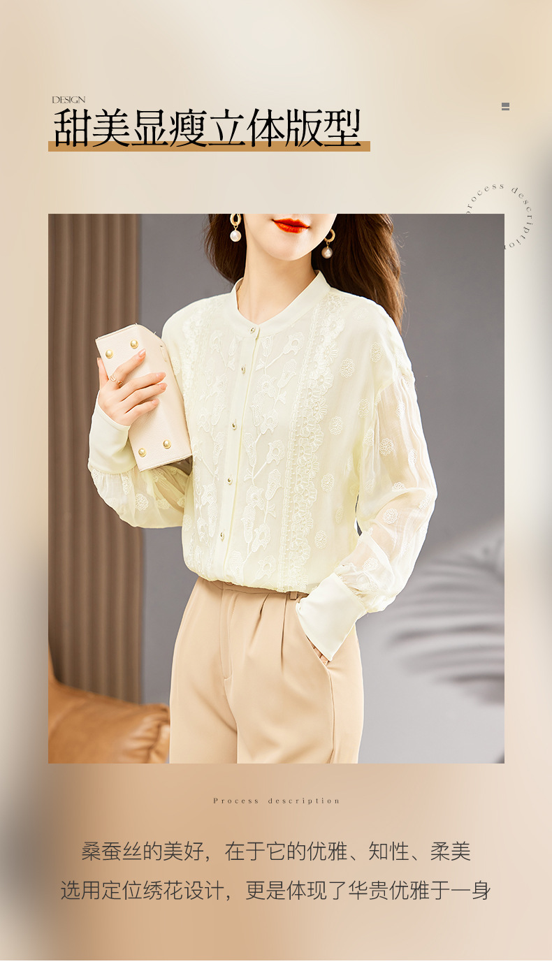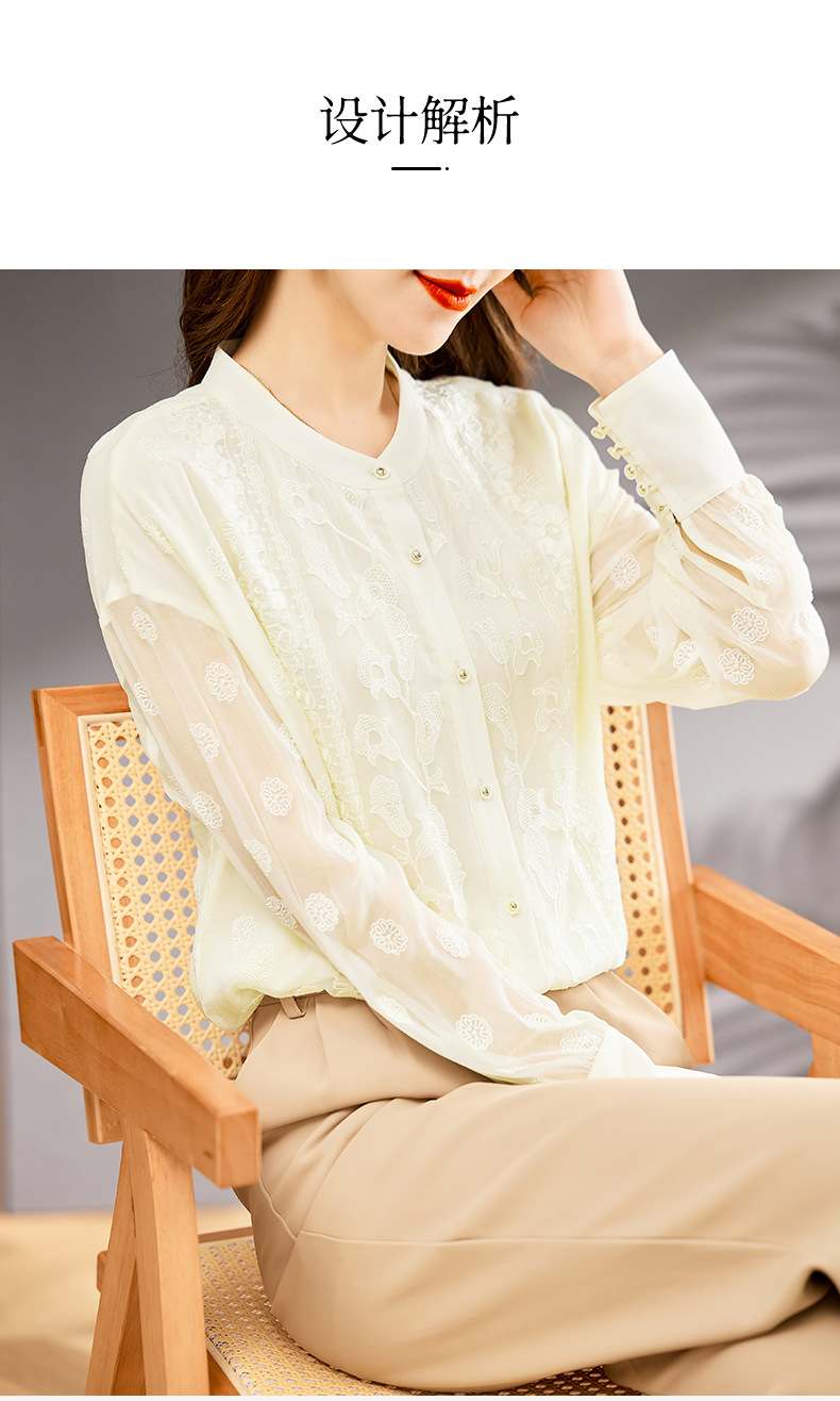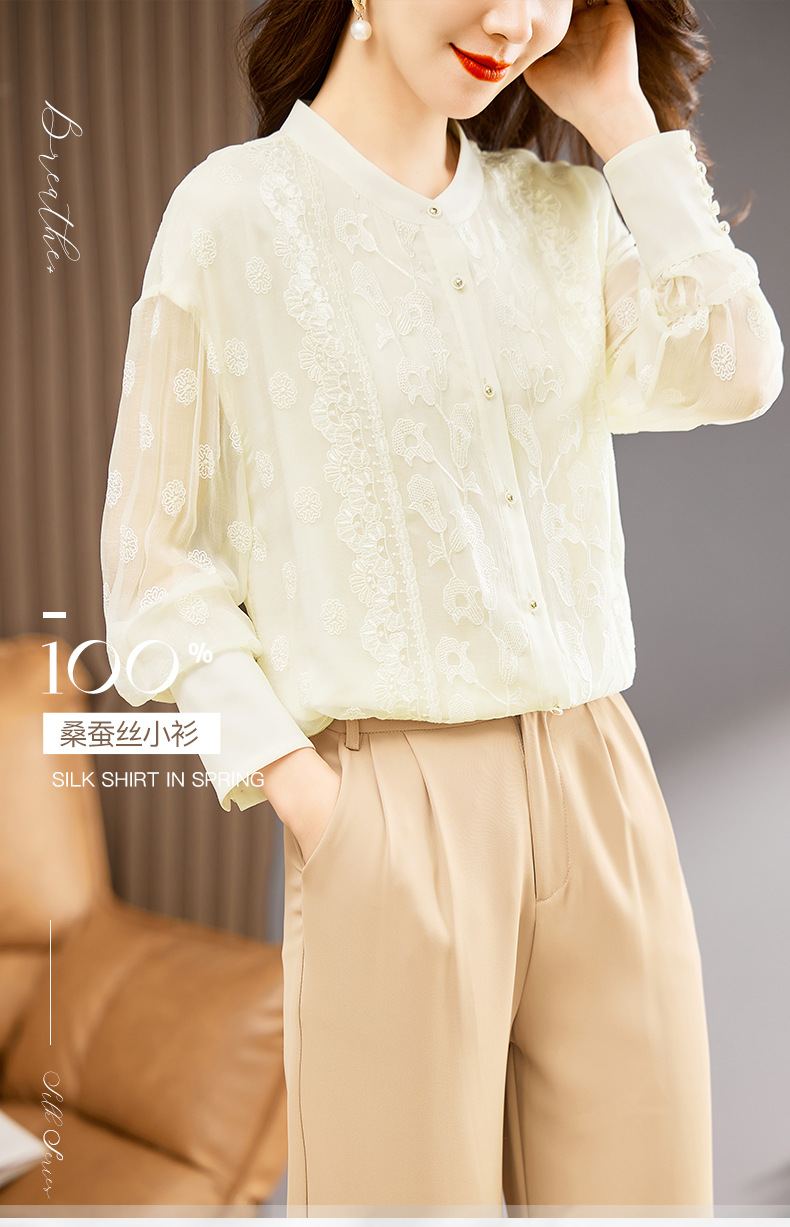 TC22399935 真丝衬衫女长袖重工刺绣上衣2023年春新款气质立领宽松桑蚕丝衬衣