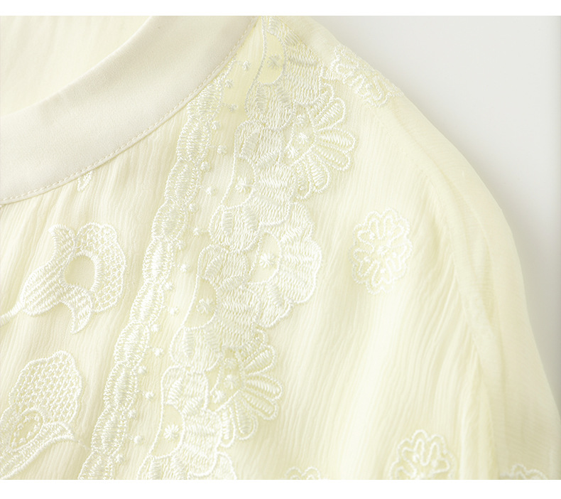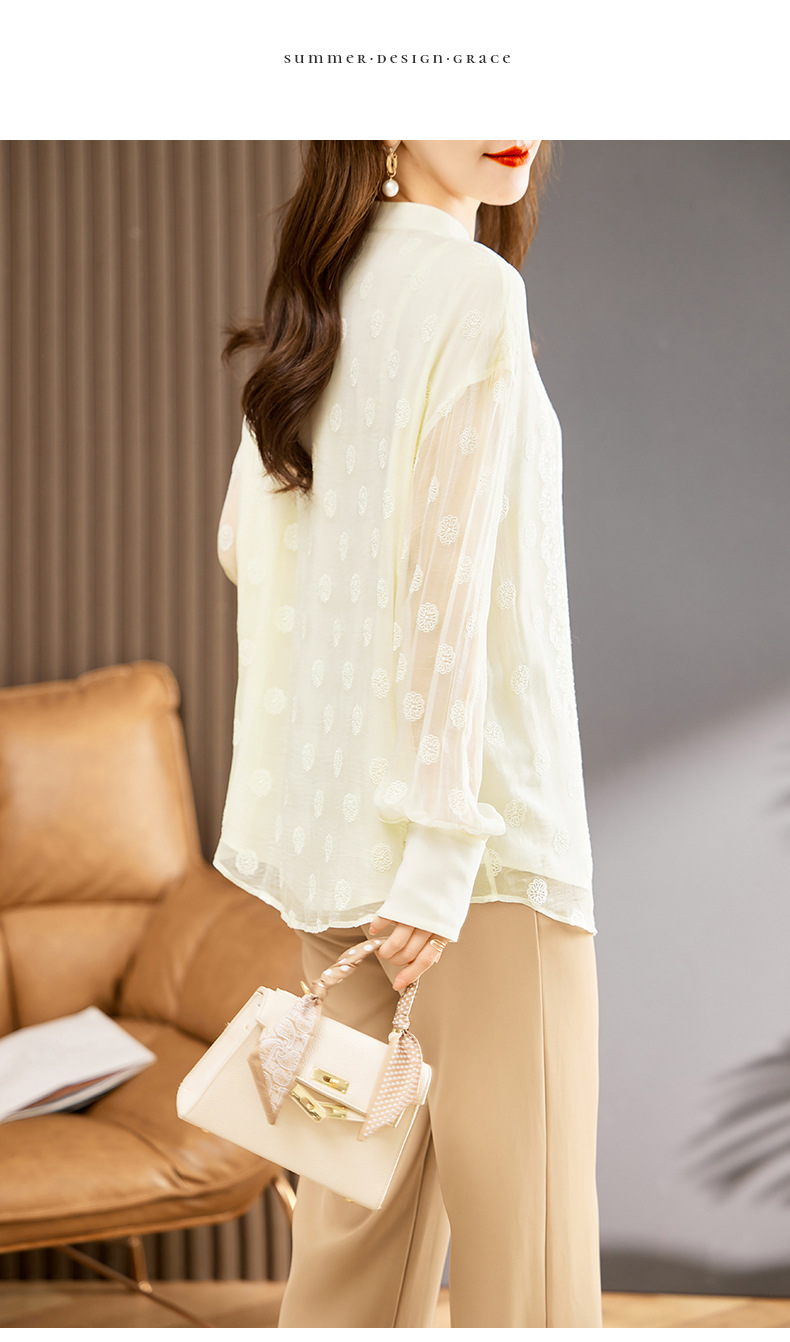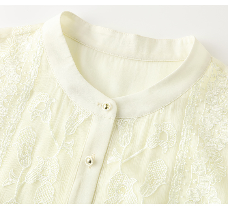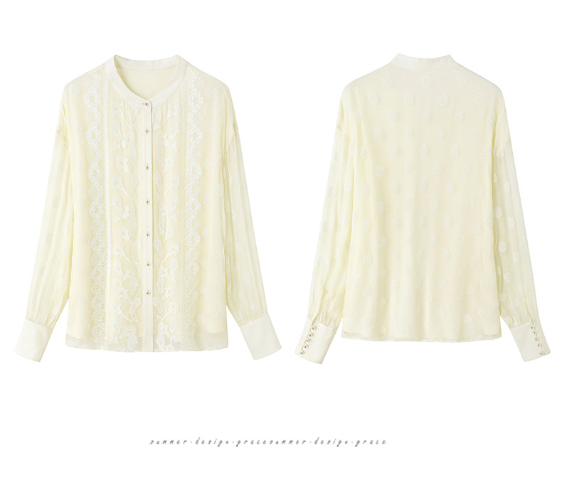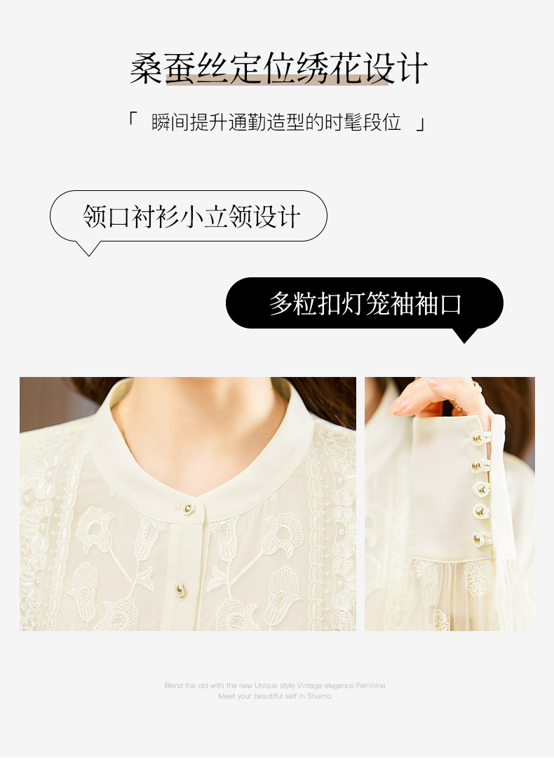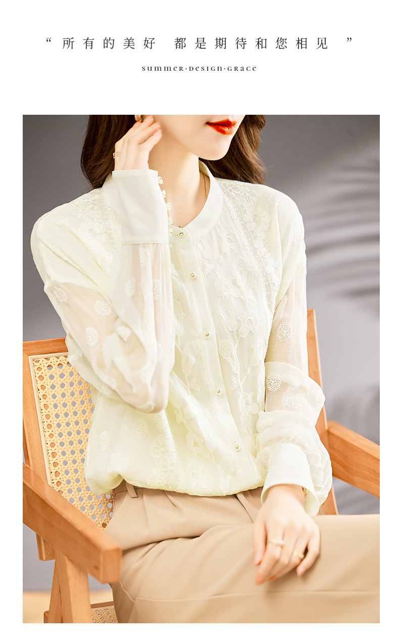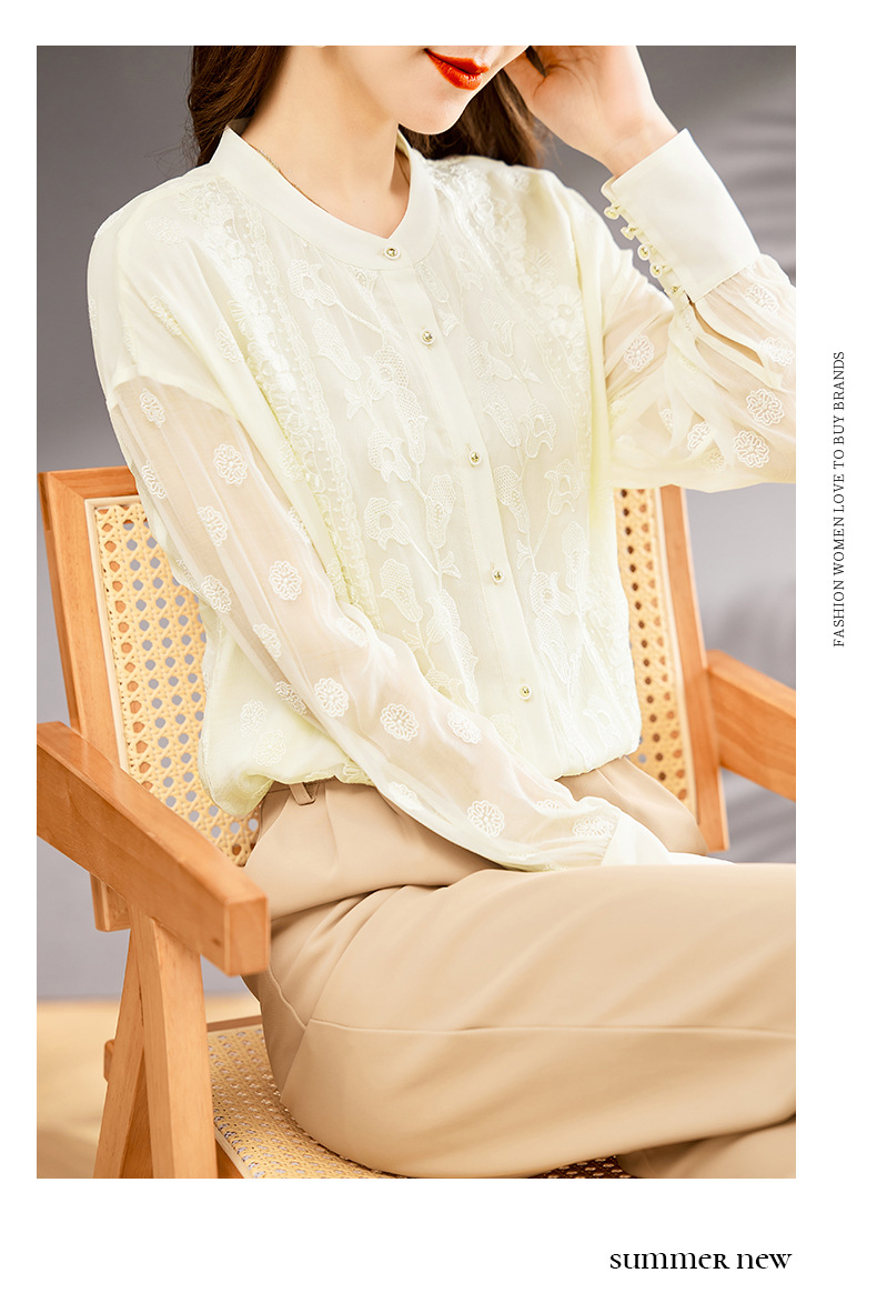 TC22399935 真丝衬衫女长袖重工刺绣上衣2023年春新款气质立领宽松桑蚕丝衬衣