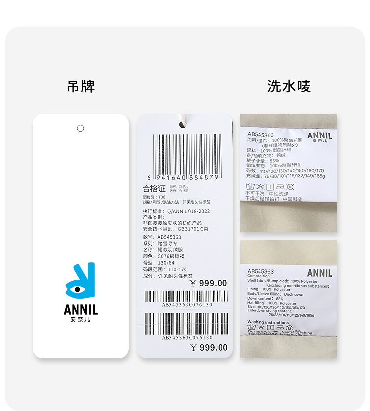 【实体店同款】男童短款羽绒服冬季新款安奈儿童装AB545363