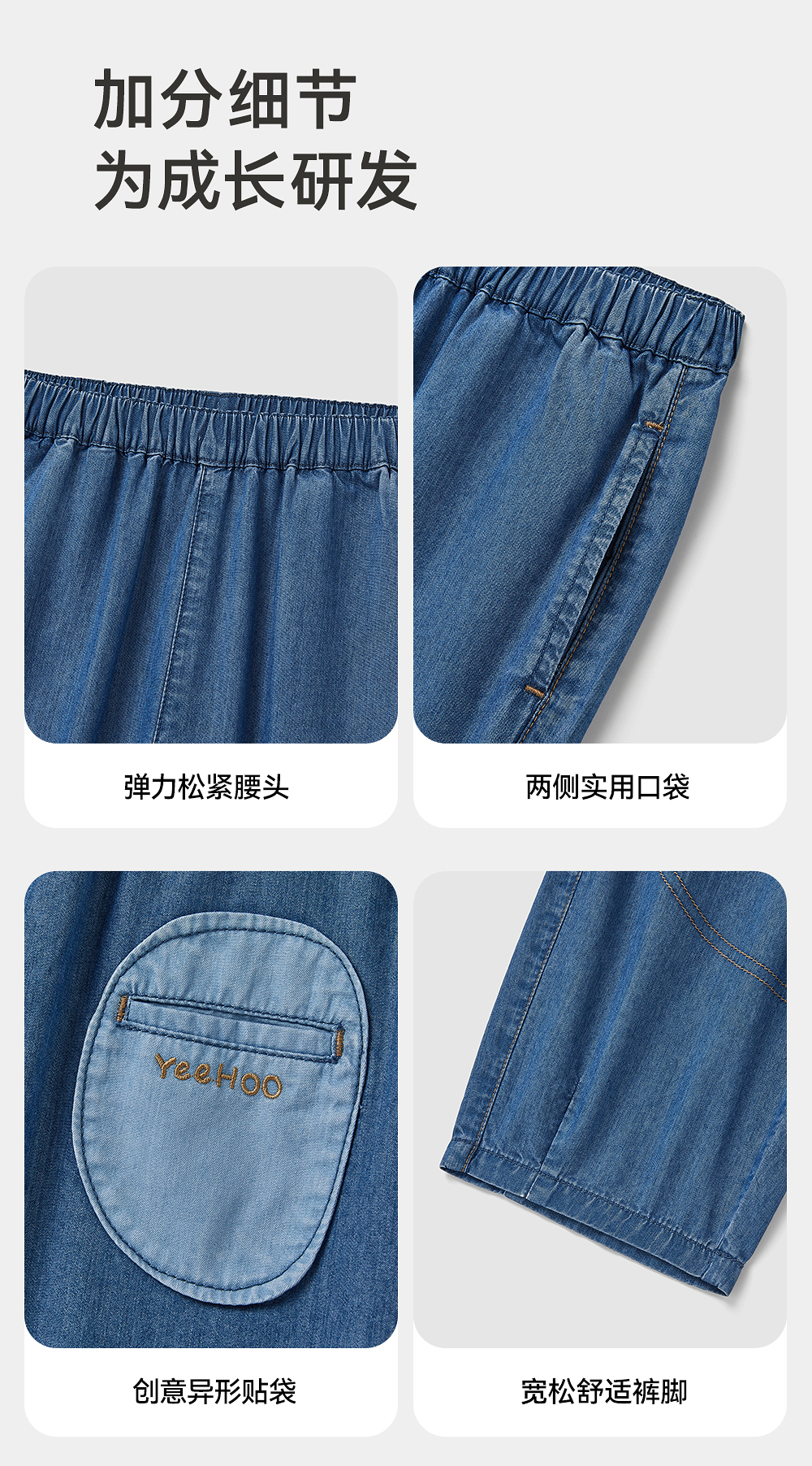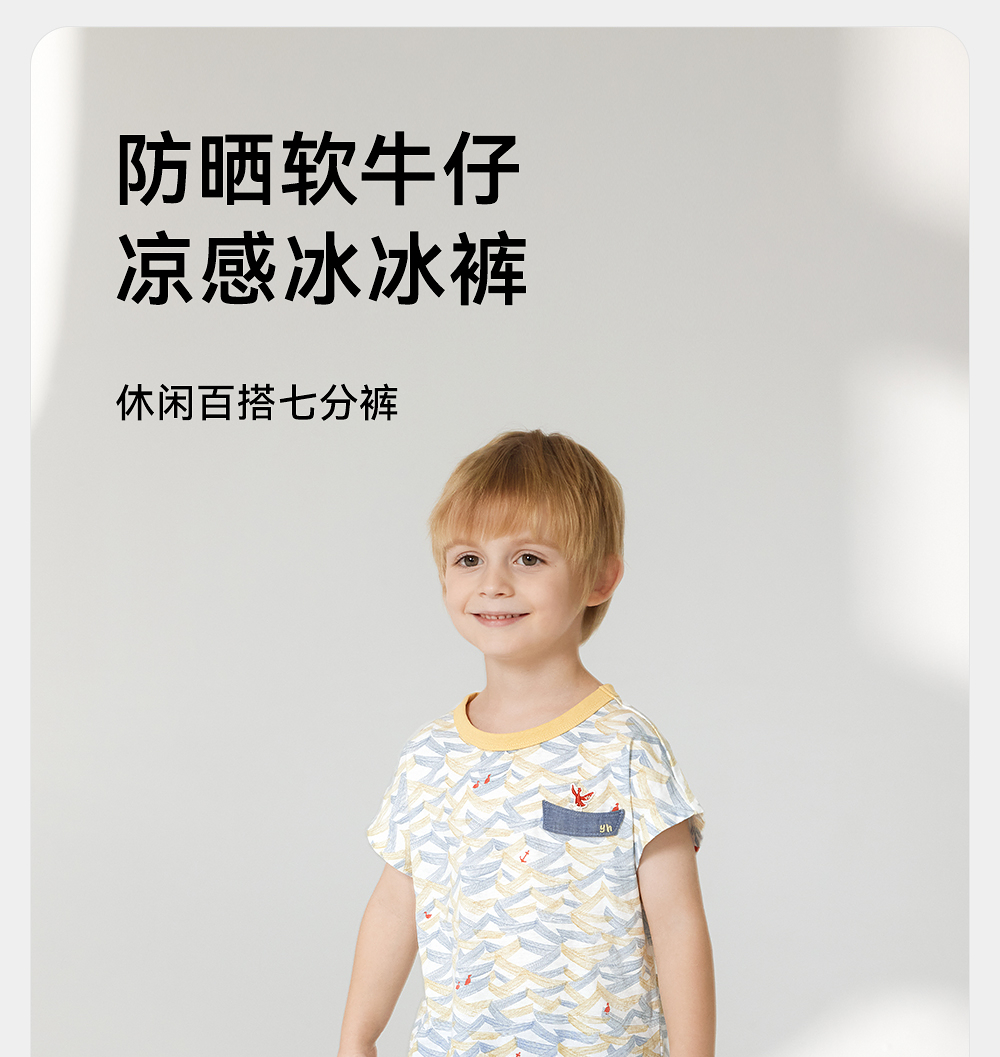 【商场同款】英氏儿童裤子夏季防晒凉感牛仔裤2025新款牛仔7分裤