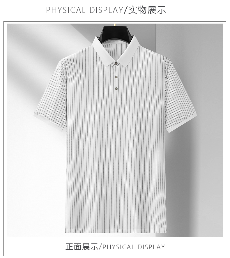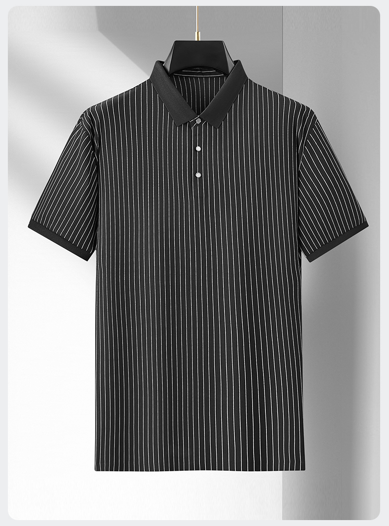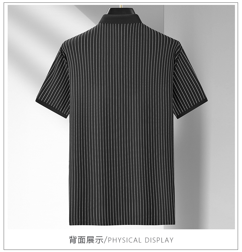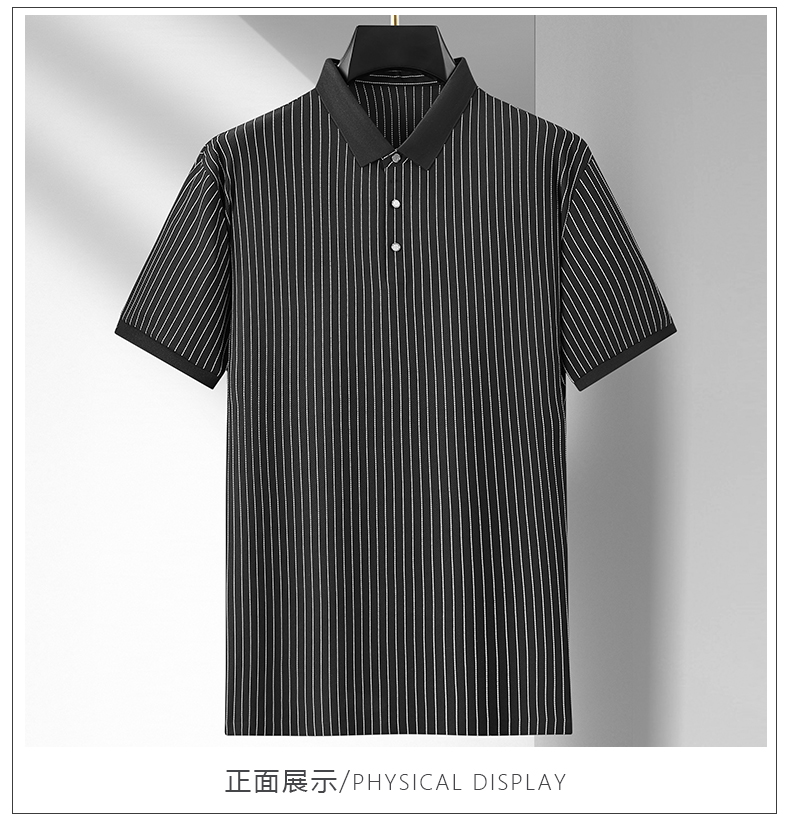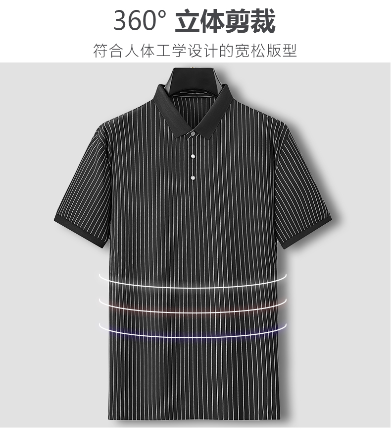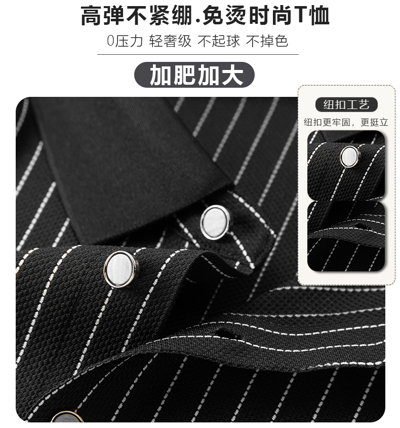 【凉感透气】【新款DDA】大依优型大码竖条纹短袖Polo衫翻领加肥加大男士大号弹力透气舒适夏季半袖透气