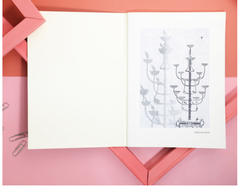 整幅封面图画以钢笔填黑和器物造型勾勒留白为主要表现手法
