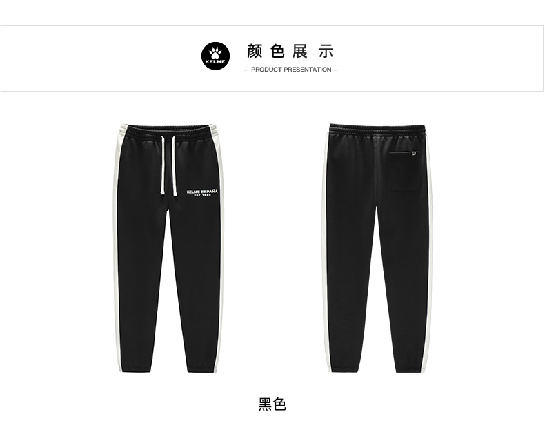 卡尔美撞色拼接运动裤男冬季新款黑色百搭潮流休闲裤子