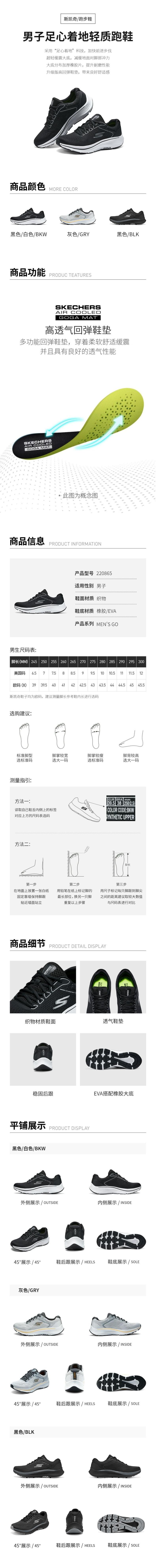 Skechers斯凯奇 男轻质基础跑步鞋 220865-BLK
