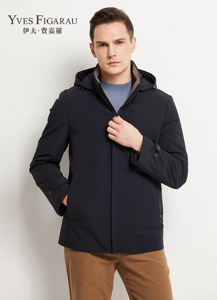 YvesFigarau伊夫·费嘉罗冬季厚款商务休闲保暖连帽羽绒服924269