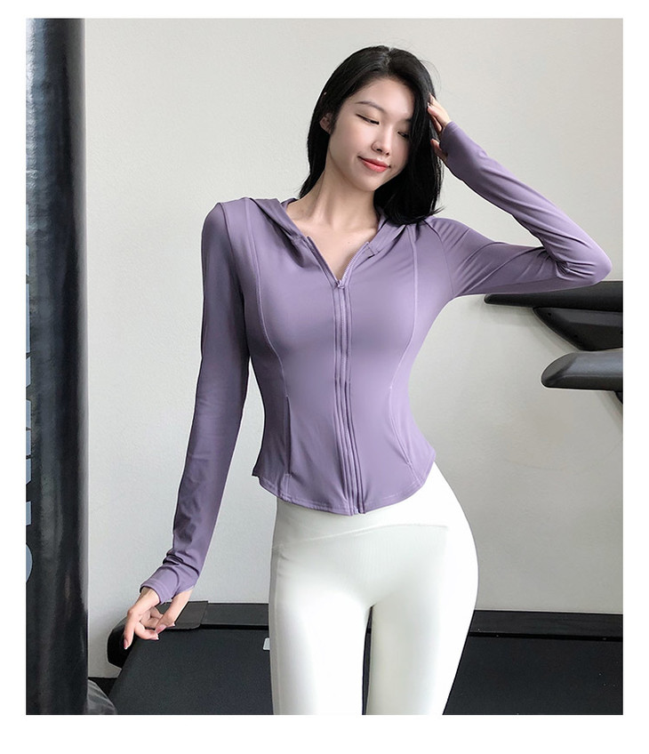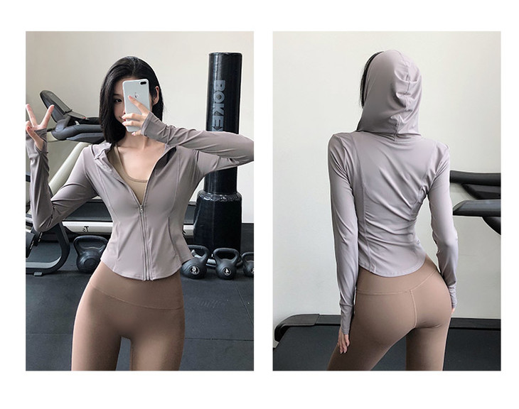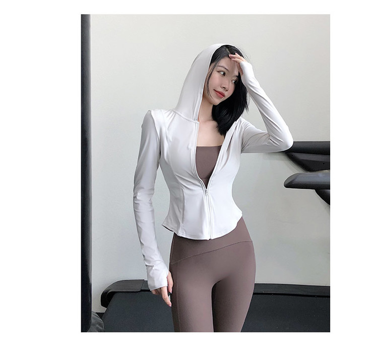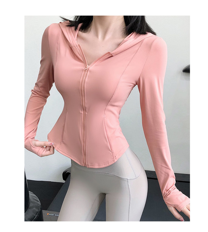 跃牌【禅语梵心系列】裸感瑜伽服女休闲外套长袖拉链连帽跑步亲肤运动健身上衣FX2022(不带胸垫)