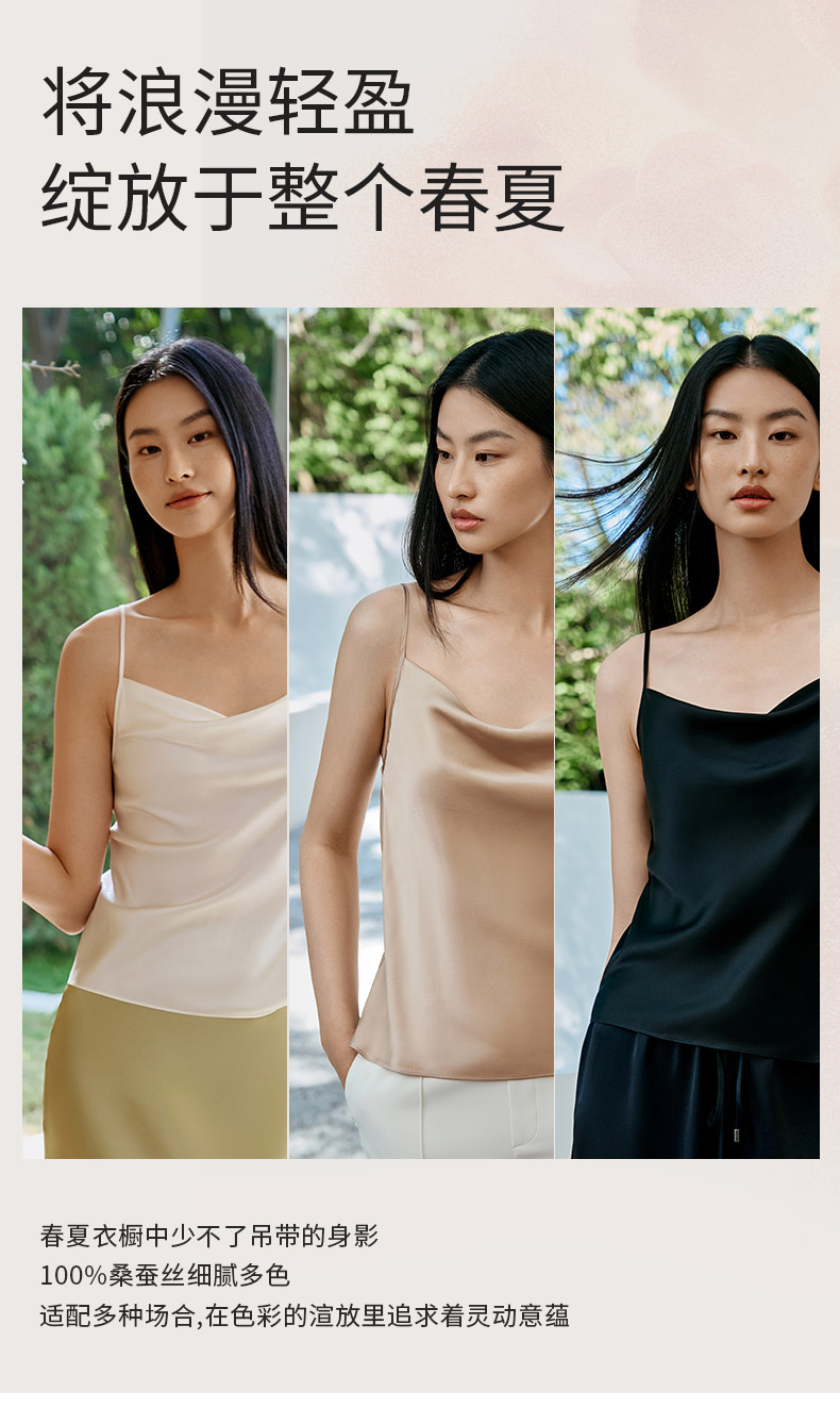 金三塔桑蚕丝女真丝荡领吊带NSFFA701